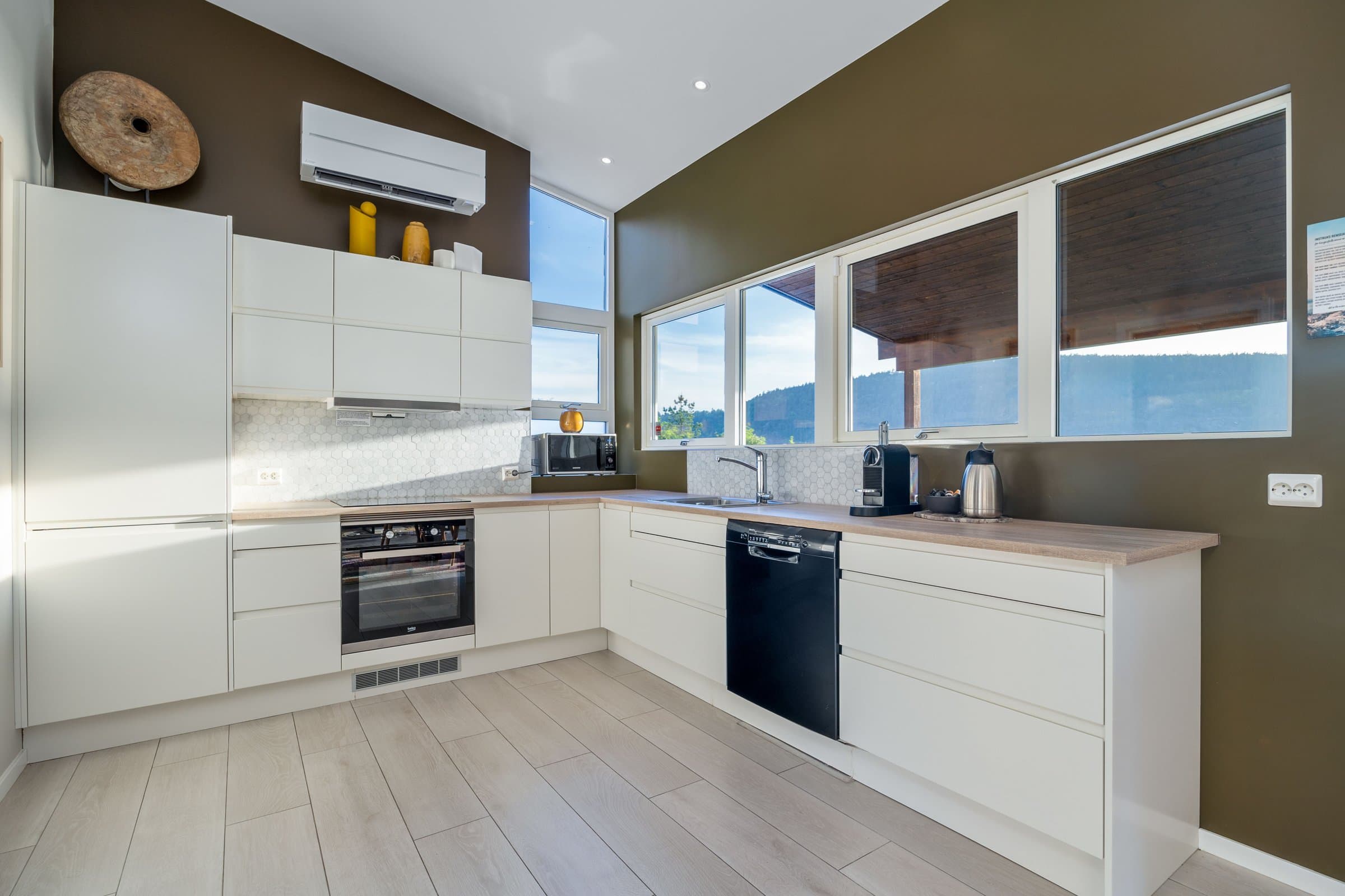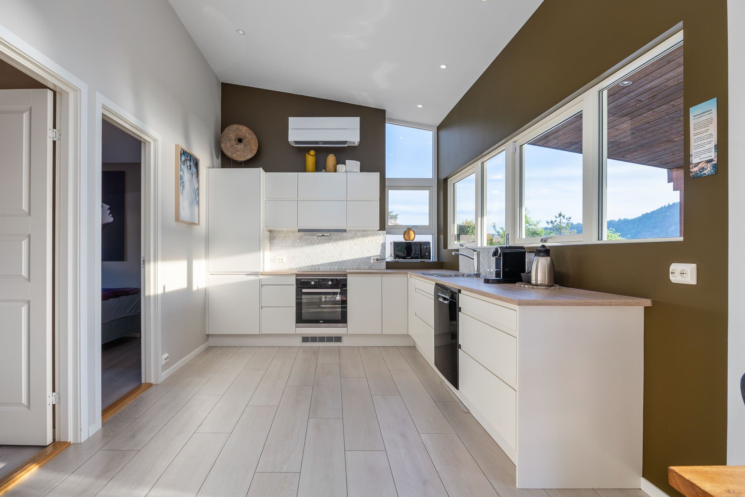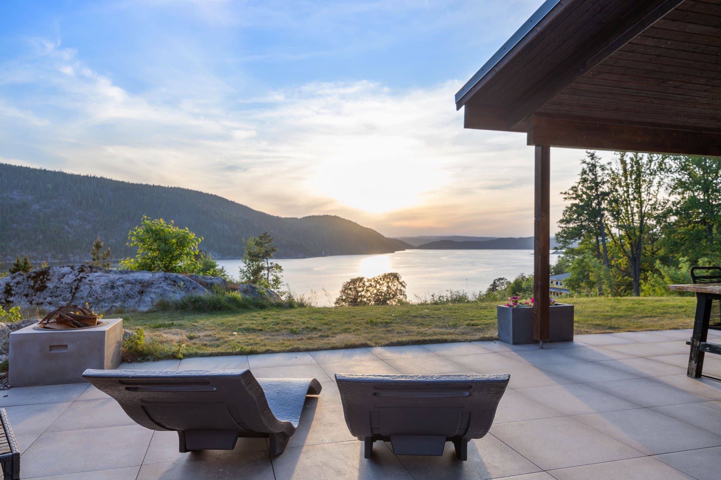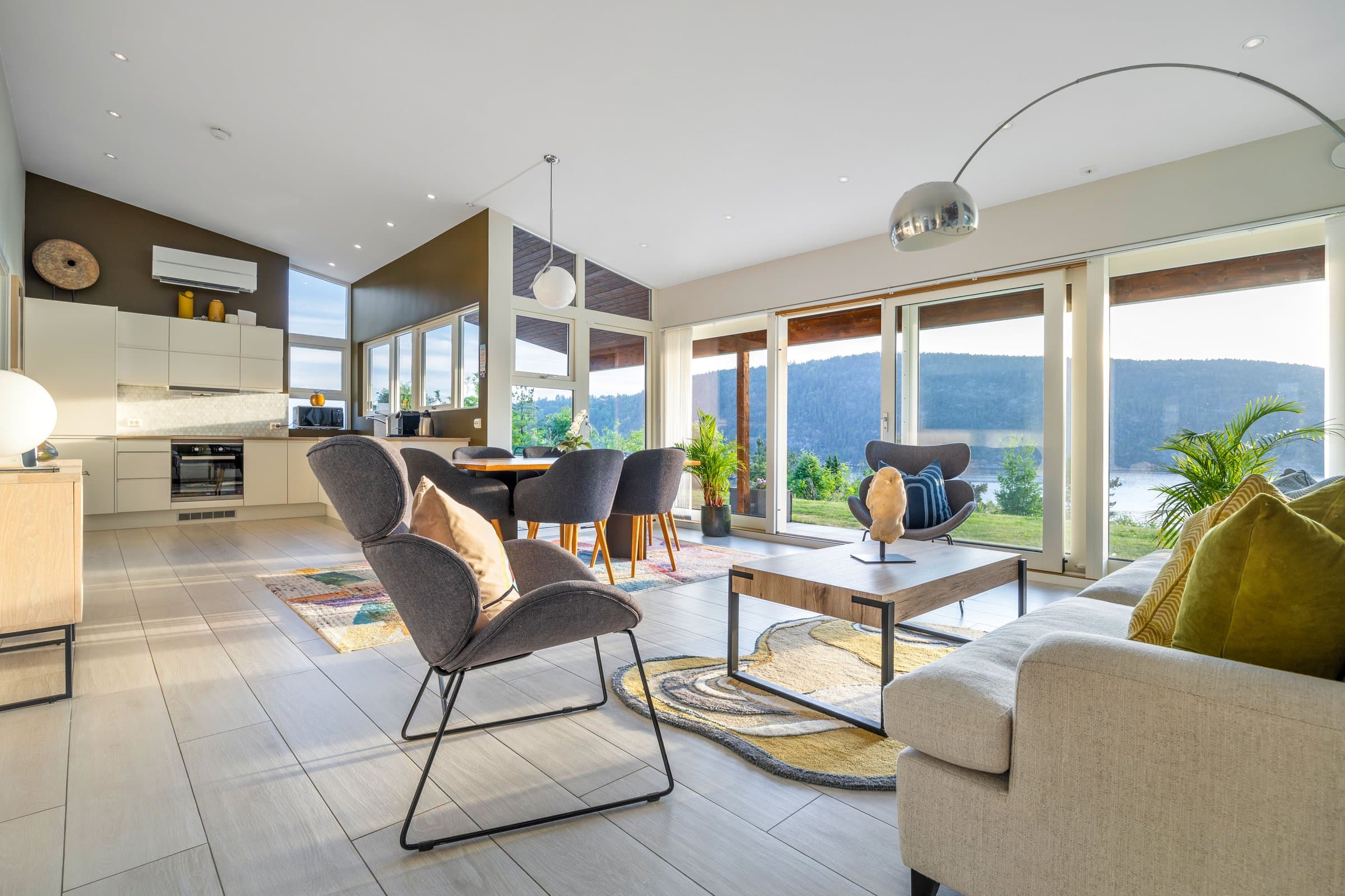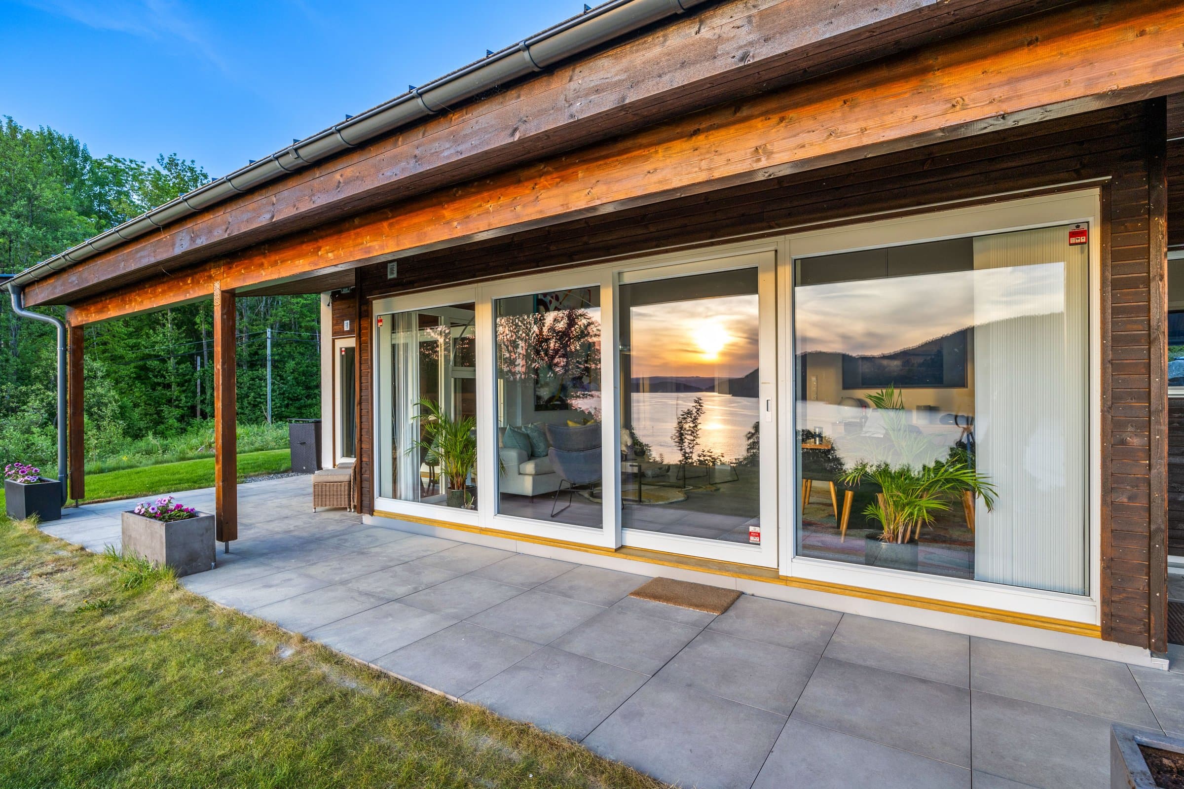 Funkishytte fra 2020 | Panoramautsikt | 14 sengeplasser | Gulvareal på ca. 120 m² | Båtplass | Inkl. møbler