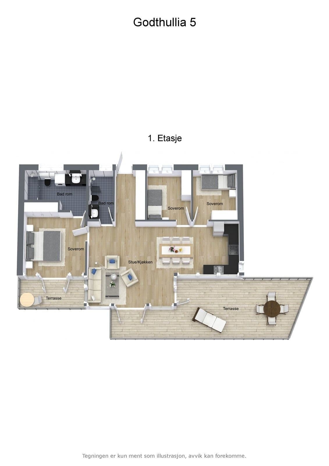 Alt av hvitevarer og inventar medfølger. Disse leveres uten noen form for garantier, ut over eventuell gjenværende leverandørgaranti.