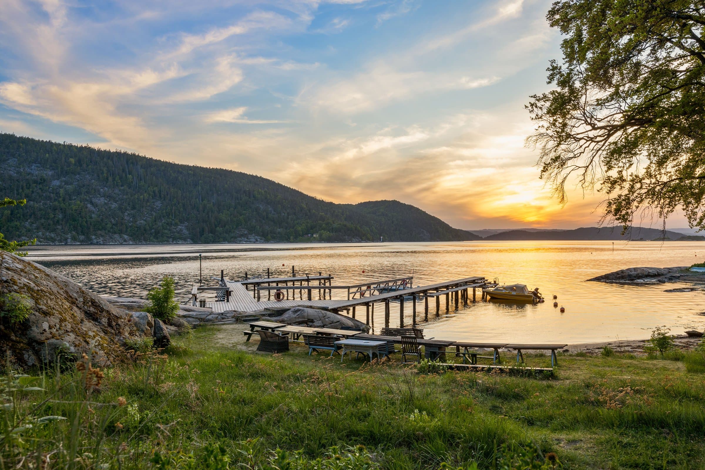 En lekker fritidsbolig med en luftig og åpen romfølelse. Fra gangen er det adkomst til stue/spisestue/kjøkken i åpen løsning, med ekstra god takhøyde og store vindusflater som gir rommet en lys og god atmosfære. Utgang fra stuen til en stor platting, som strekker seg langs hele fremsiden av fritidsboligen, og hvor deler er overbygget. Her har man et godt og solrikt uterom på varme sommerdager. I tillegg er det tre gode soverom og to lekre, flislagte bad. Det ene badet ligger tilnyttet hovedsoverommet, som er utstyrt med skyvedører samt takhøye vinduer mot vest, -som ivaretar den nære fjordutsikten fra man våkner til man legger seg - en herlig foreldresone. Fra gangen er det luke til hems, som er inndelt i tre rom - fin til oppbevaring, gjestebesøk og/eller ungdomsavdeling. Hytta ligger idyllisk plassert innerst på Langebåt. Her har du kort gangavstand til brygge med egen båtplass og flotte bademuligheter. Høydepunkter: - Romslig og luftig oppholdsrom med god takhøyde - Alt av inne- og utemøbler, samt interiør til en verdi av ca. kr 600.000 inkludert - Jacuzzi inkludert - 14 sengeplasser - Store vindusflater som gir rikelig med lys og vakker fjordutsikt - To lekre bad - 85 kvm i første etasje + hems gulvareal på ca. 35 m² - Gulvvarme i gang, stue/kjøkken og på begge bad - Båtplass - Gode parkeringsmuligheter på tomten - Koselig sommerbutikk i nærheten Se video av boligen: https://vimeo.com/954579375