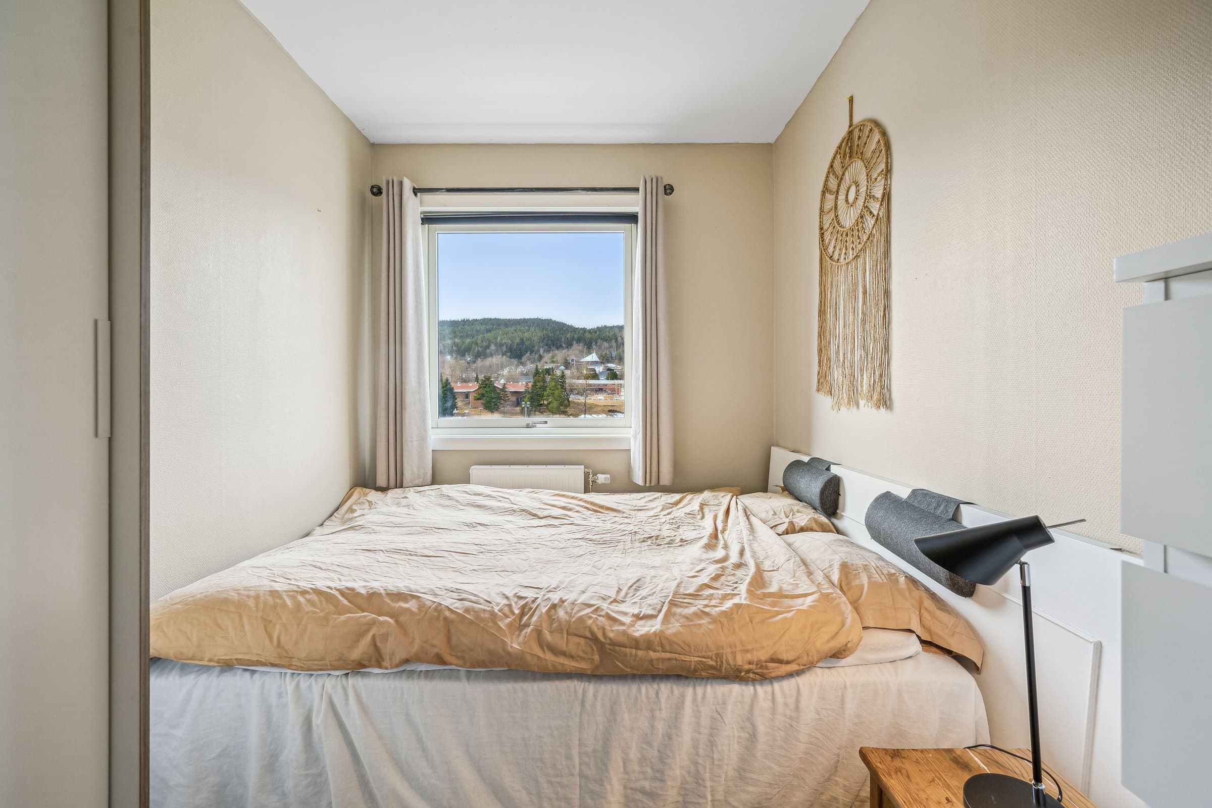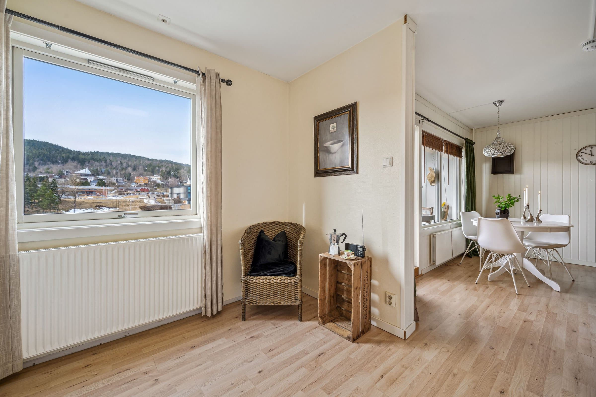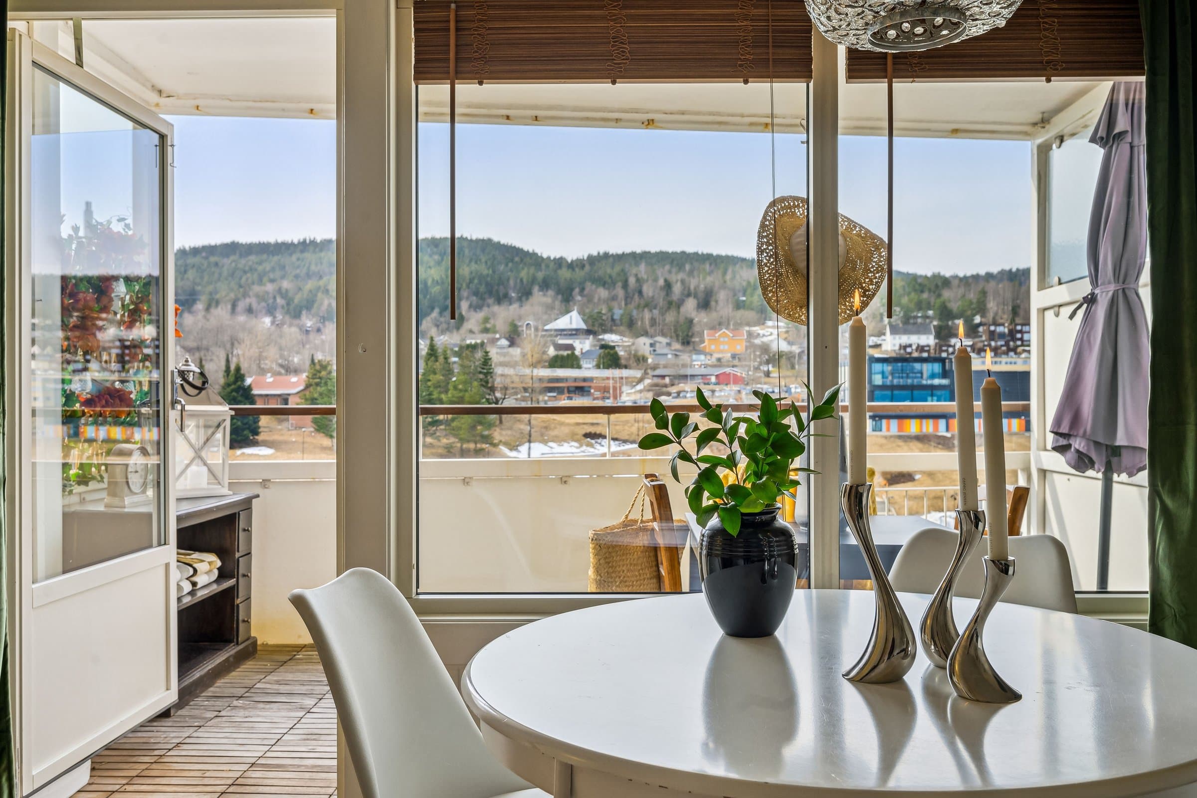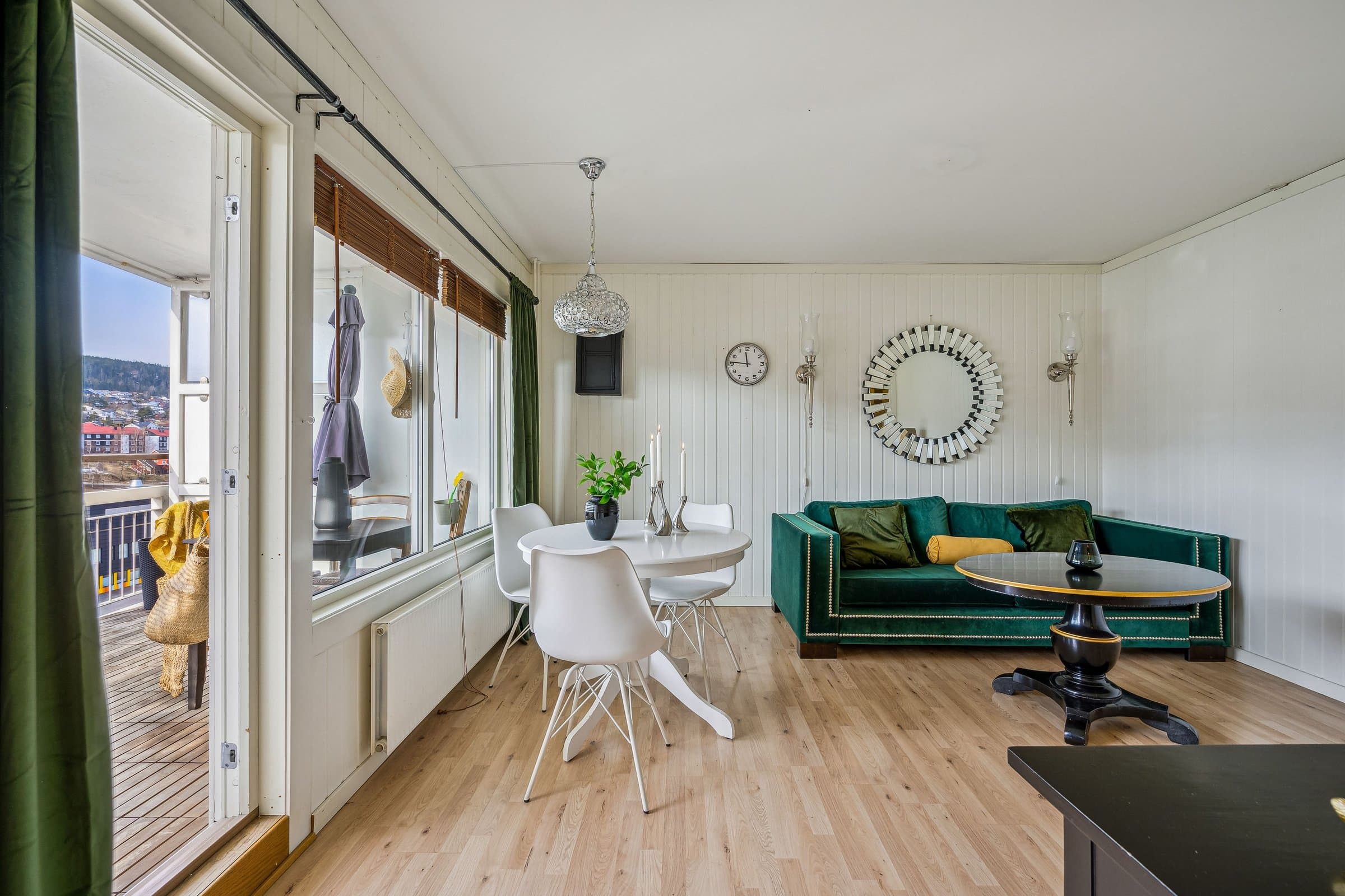 Velkommen til denne sjarmerende og praktiske leiligheten i åttende etasje, perfekt for deg som ønsker en lys og lettstelt bolig med praktiske løsninger. Her får du en romslig entre med god plass til garderobeskap og oppbevaring. Kjøkkenet er stilrent med hvite profilerte fronter, rikelig med skapplass, og benkeplate som gir perfekte arbeidsforhold for matlaging. Den åpne løsningen mot stuen skaper en luftig atmosfære, mens store vinduer slipper inn godt med naturlig lys. Fra stuen har du utgang til en solrik balkong på 9 kvm, hvor du kan nyte varme dager og utsikten over området. Leiligheten har også et lyst og funksjonelt bad fra 2014 med gulvvarme, samt et luftig soverom med plass til dobbeltseng og garderobeskap – ideelt for en god natts søvn. Fyring og varmtvann er inkludert i felleskostnadene, og bygget har nylig fått oppgradert heis, inngangsparti og nye inngangsdører.