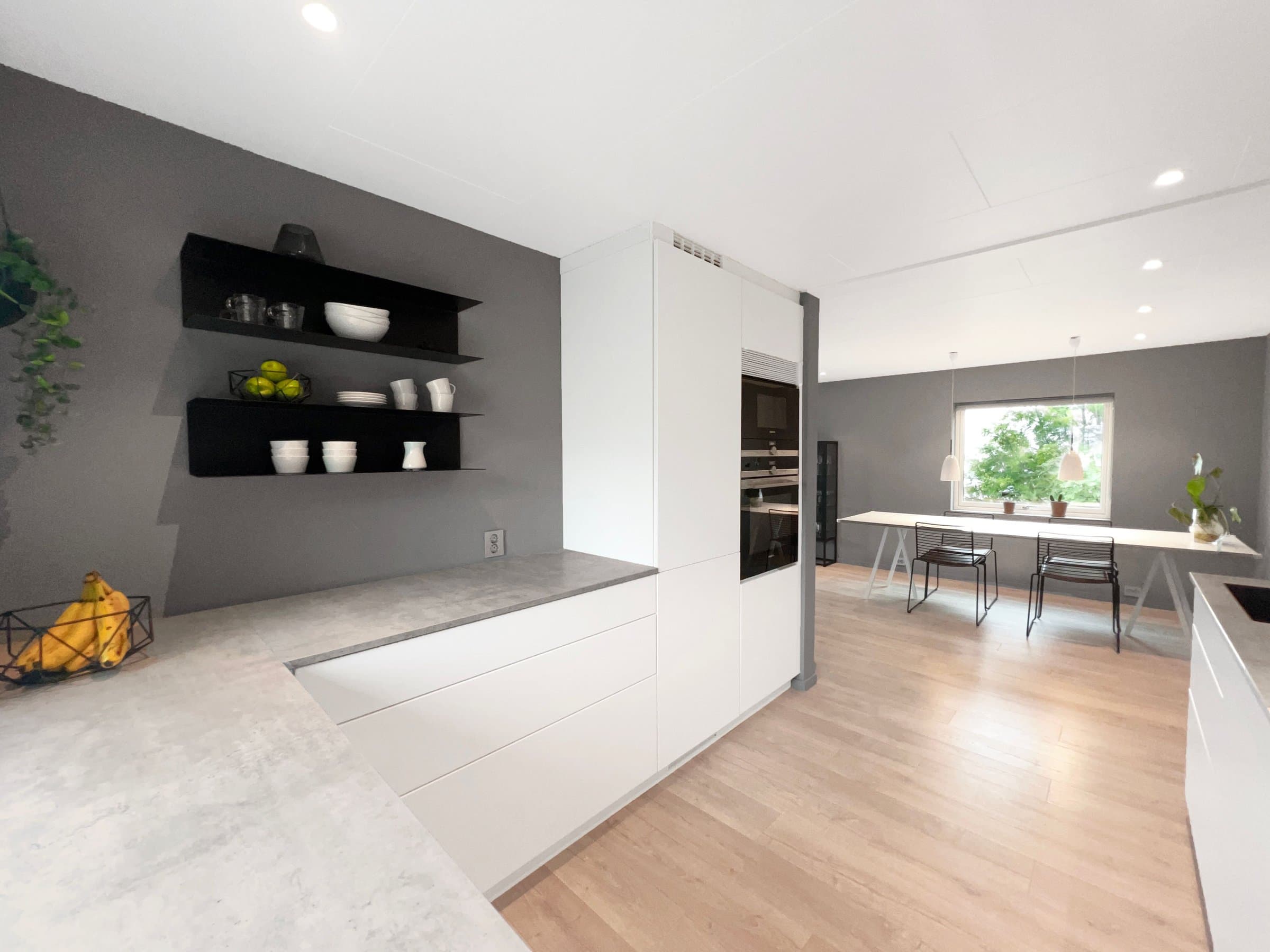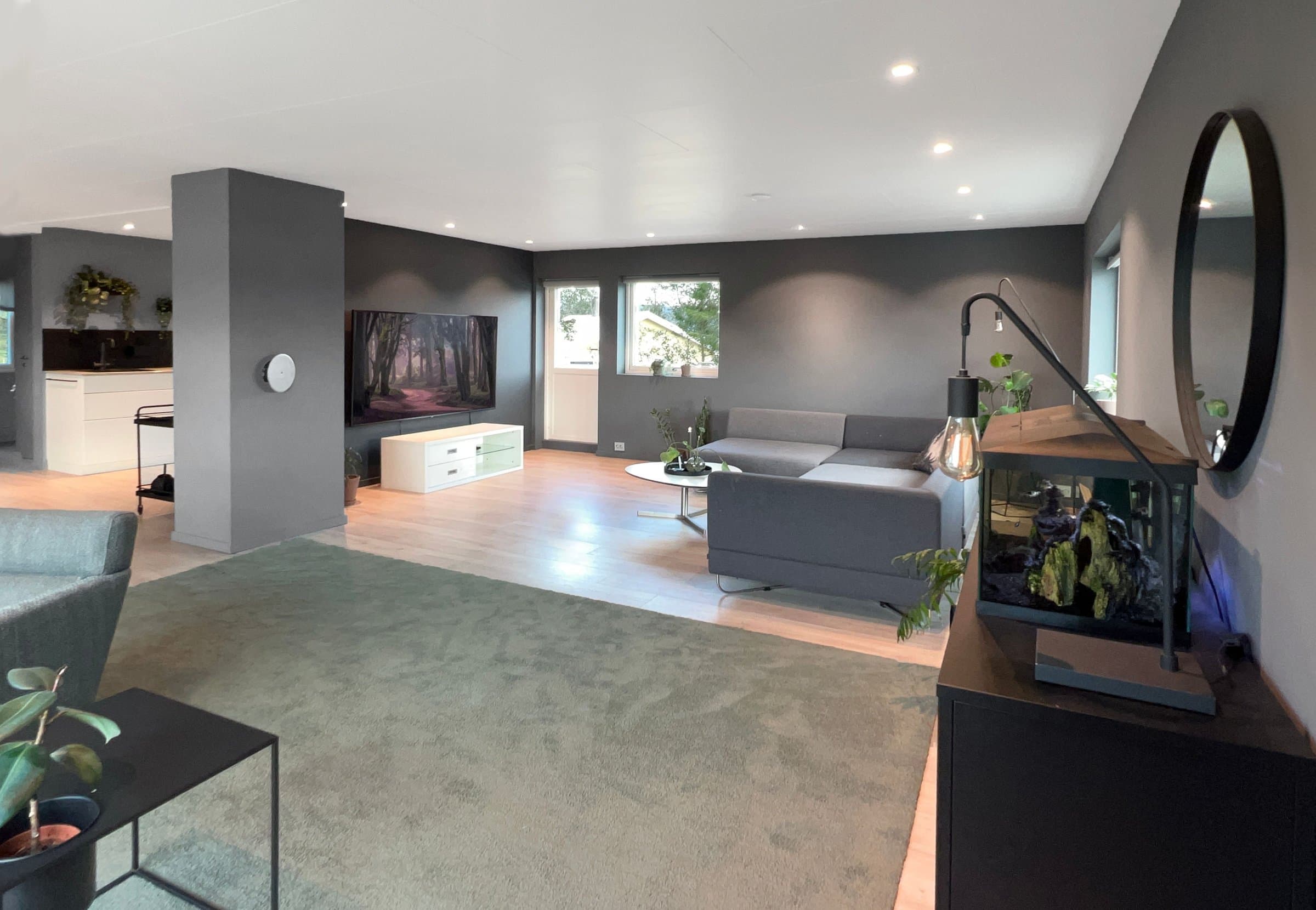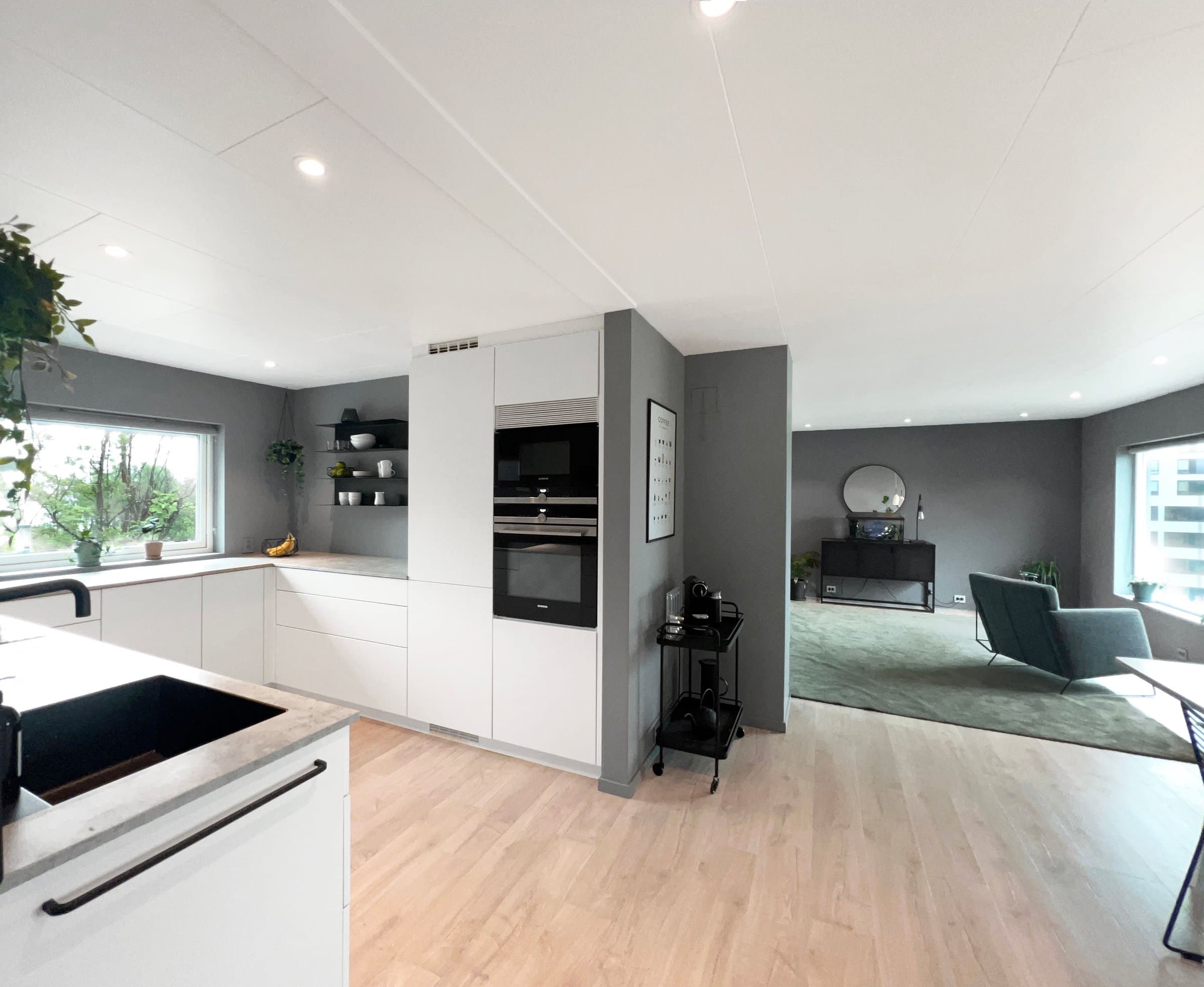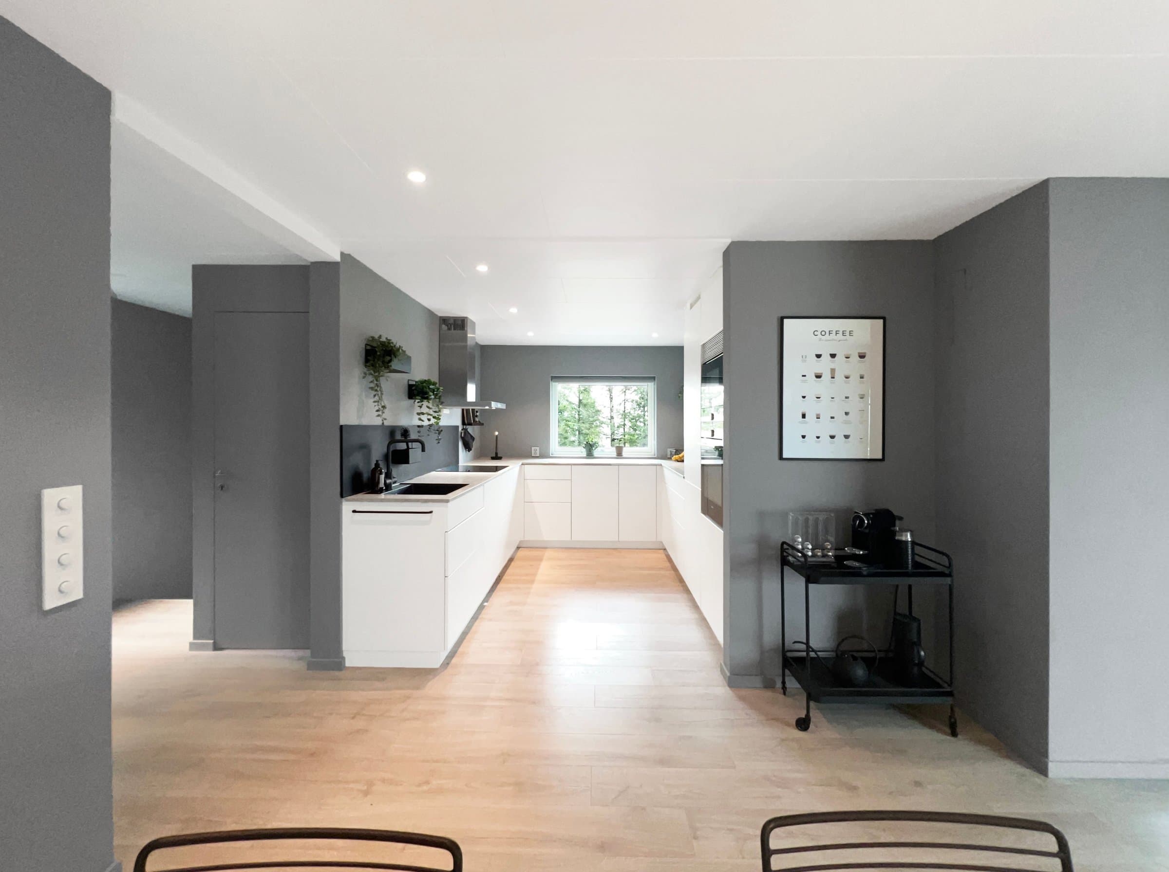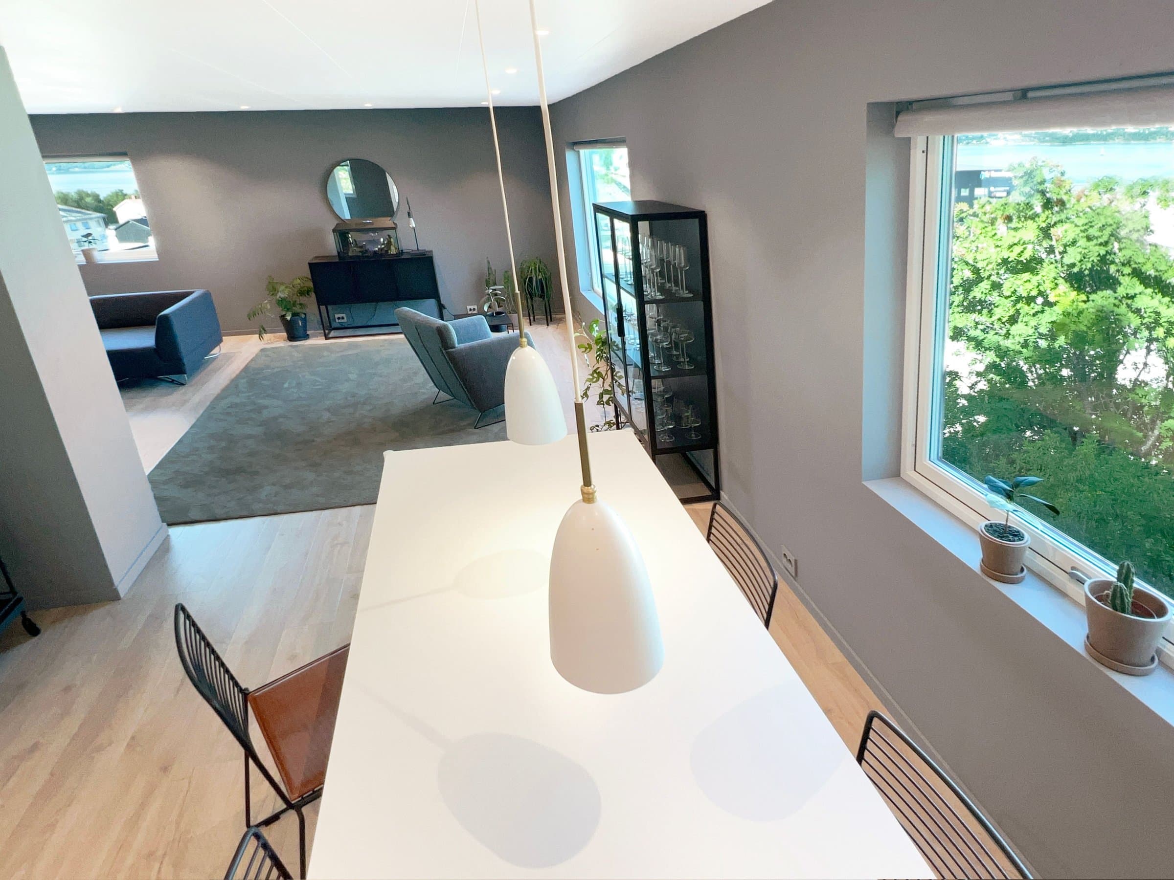 Store deler av hovedboenheten i huset er totalrenovert de siste årene. Renoveringen som er utført omfatter stue, kjøkken, kontor, hall med trapp, yttergang og 1 soverom. For enda mer detaljert beskrivelse, se dokument: https://www.dropbox.com/scl/fi/v2ab59jfroa2y81nzua79/Sammendrag-renovering.pdf?rlkey=28sg2qx6u4787idf5789ynd21&dl=0 Renoveringen består av • Nye 3-lags vinduer med selvrens og uv-filter (store vinduer mot Amfi har i tillegg lyddempende glass) • Nye dører (innedører, balkongdør og ytterdør) • Etterisolering i yttervegger og himling/loft • Nytt skjult elektrisk anlegg inkludert nytt sikringsskap, nyinnstakskabel for strøm, innfelte takspoter i led med dimming i flere soner, annen takbelysning, nye kurser og innfelte stikkontakter, gulvvarme i yttergang • Nytt kjøkken med integrerte hvitevarer i hovedleiligheten og nytt kjøkken i kjellerleiligheten/sekundærleiligheten. • Moderne finish med slette vegger og listefri utførelse rundt både vinduer og dører. • Det er lagt nytt gulv som er likt i alle renoverte rom. Pergo vannbestandig laminat. Det nye gulvet er lagt sømløst mellom stue, spisestue, kjøkken og kontor i 2. etasje. • Varmepumpe • Renovert utvendig avløpsledning – som gir full forsikringsdekning på lik linje som nye avløp. • Det er gravd ned ny Elvestad vannledning på 40 meter frem til nytt vanntilkoblingspunkt på naboeiendommen (44/128). Dette er gjort for at det skal være mulig å koble seg på dersom nytt leilighetsbygg realiseres på naboeiendommen i framtiden. • Malt huset utvendig.