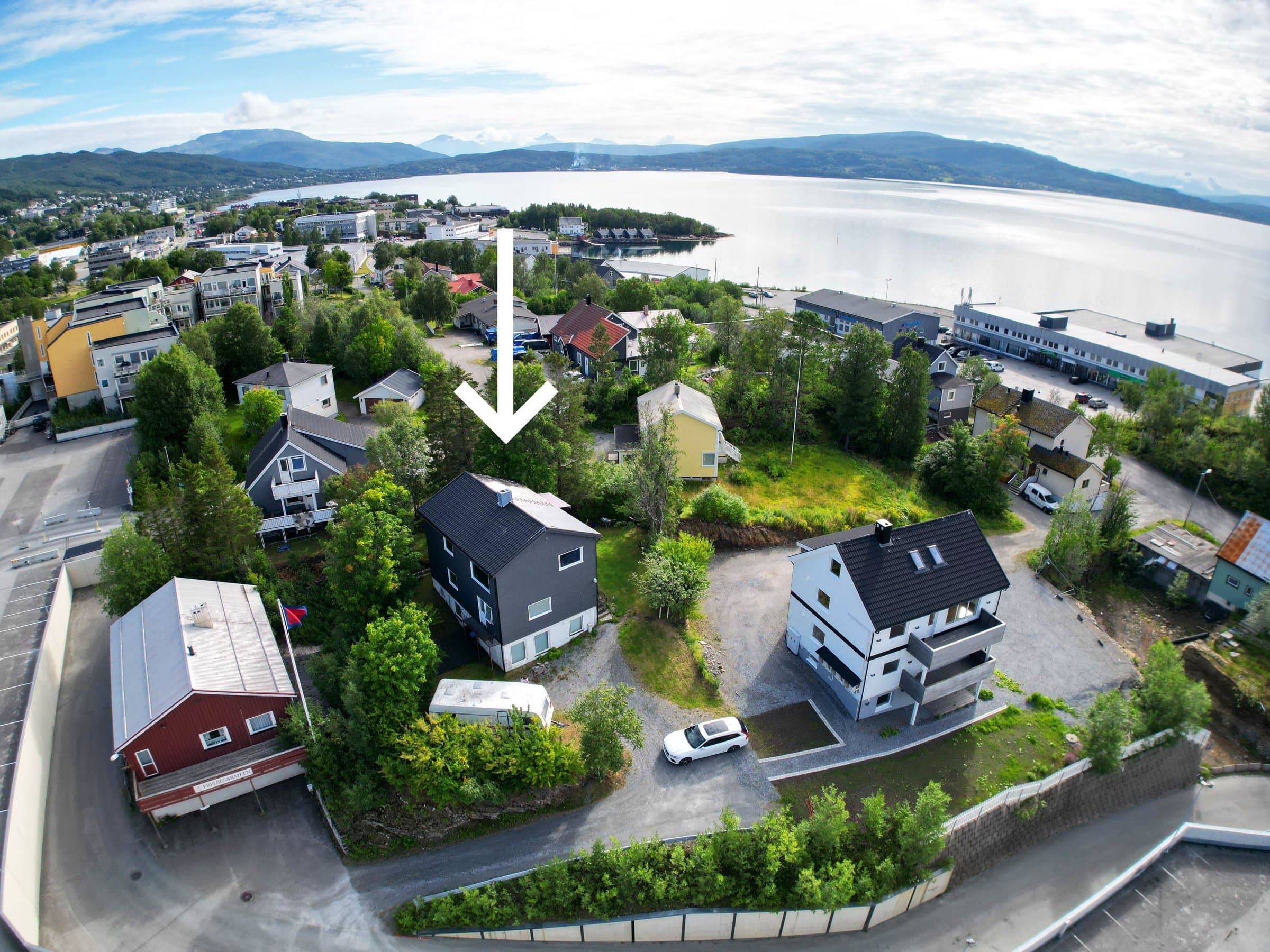 Eiendommen er en av de mest sentrale i Finnsnes sentrum og ligger på hjørnet av Finnsneshaugen – med havutsikt i flere retninger og gode solforhold. Her kan du leve et lettvindt liv med bare 2 minutters gange til dagligvarebutikk, kjøpesenter, apotek, vinmonopol m.m. Like i nærheten ligger også en flott liten bystrand, Henrikstøa. Nært til barnehager og skoler, studiesenter, bibliotek og byens øvrige fasiliteter som lekepark, kafeer, restauranter, uteliv, bensinstasjoner, bowling, fotballbane og andre fritidstilbud. Dette er en svært økonomisk bolig som har en kompakt kjellerleilighet som gir stabile leieinntekter med sin sentrale beliggenhet (har vært utleid 100% av tiden). P.d.d. bringer den inn 8400 kr/mnd. Leiligheten ble oppført i 2010 av forrige eier og er ikke søkt godkjent som utleieleilighet. Leiligheten har store vinduer og god utsikt til tross for at den ligger på bakkeplan. Store deler av hovedboeneheten i huset er totalrenovert de siste årene. (Se mer detaljert beskrivelse under "Vesentlige opplysninger" lenger ned i Finn-annonsen. ) Dette er et perfekt hus for de som ser etter en innflyttingsklar bolig med bare begrenset mengde oppussing igjen. Renoveringen som er utført omfatter stue, kjøkken, kontor, hall med trapp, yttergang og 1 soverom. Det som gjenstår da er 2 soverom og bad/vaskerom i 1. etasje + lite toalettrom og eventuelt vedovn/peis i 2. etasje. Kjellerleiligheten har nyere opprinnelse (2010) – så den er ikke gammel, men holdere en lavere standard enn hovedboenheten. Men har fått nytt kjøkken i senere tid.
