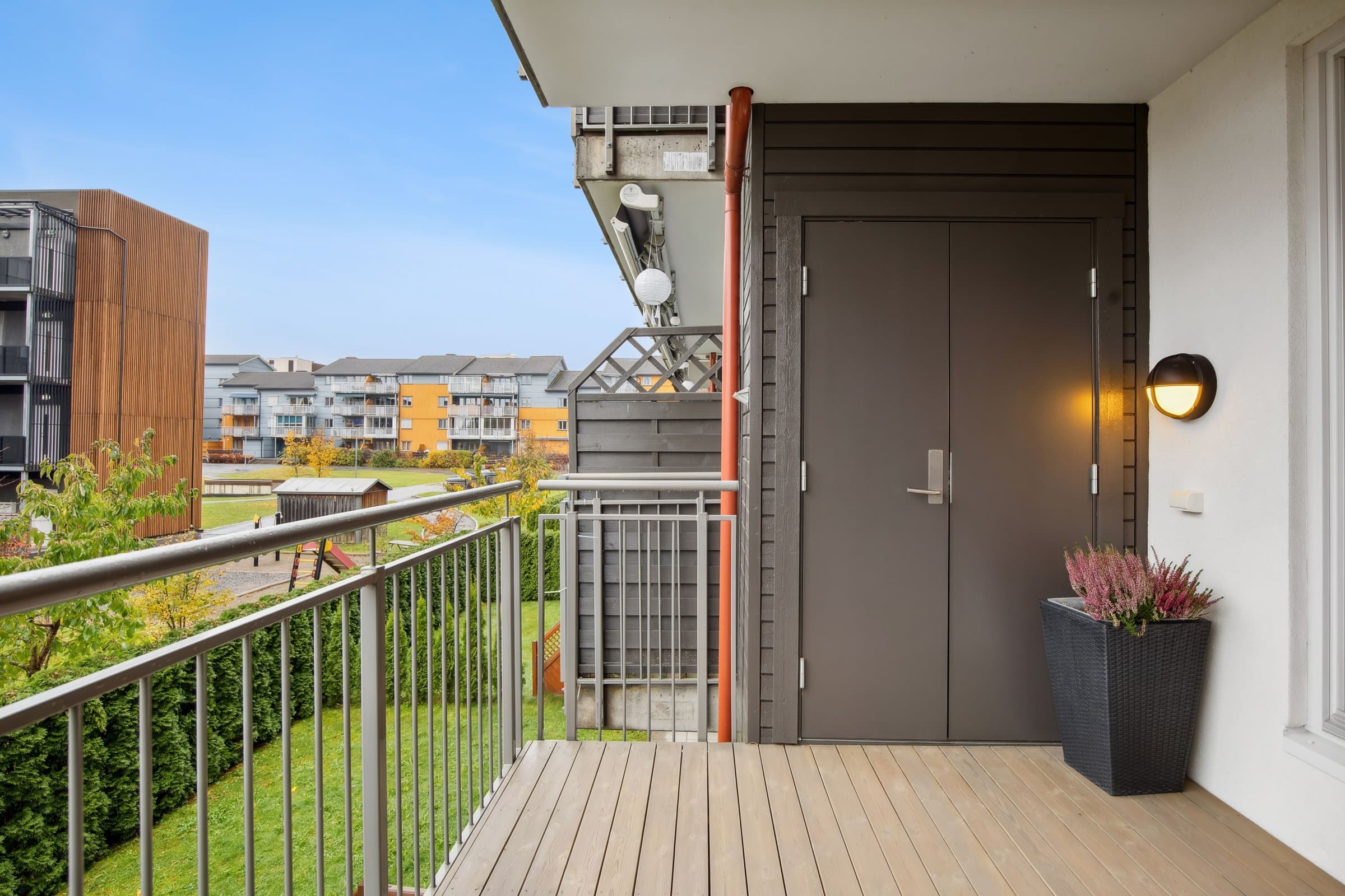 Leiligheten ligger i rolig område med lekeplass og stort parkområde rett utenfor døren. Gangavstand til Jessheim sentrum, med kino, utesteder, Jessheim Storsenter med ca. 150 butikker og spisesteder. Gode buss og tog forbindelser. I umiddelbar nærhet finner du Coop Obs, Coop Obs Bygg, Joker og Kiwi. Du finner også hundepark, Nordbytjernet, Jessheimbadet og andre tilbud ikke langt unna. Gode parkeringsmuligheter for gjester rett utenfor.