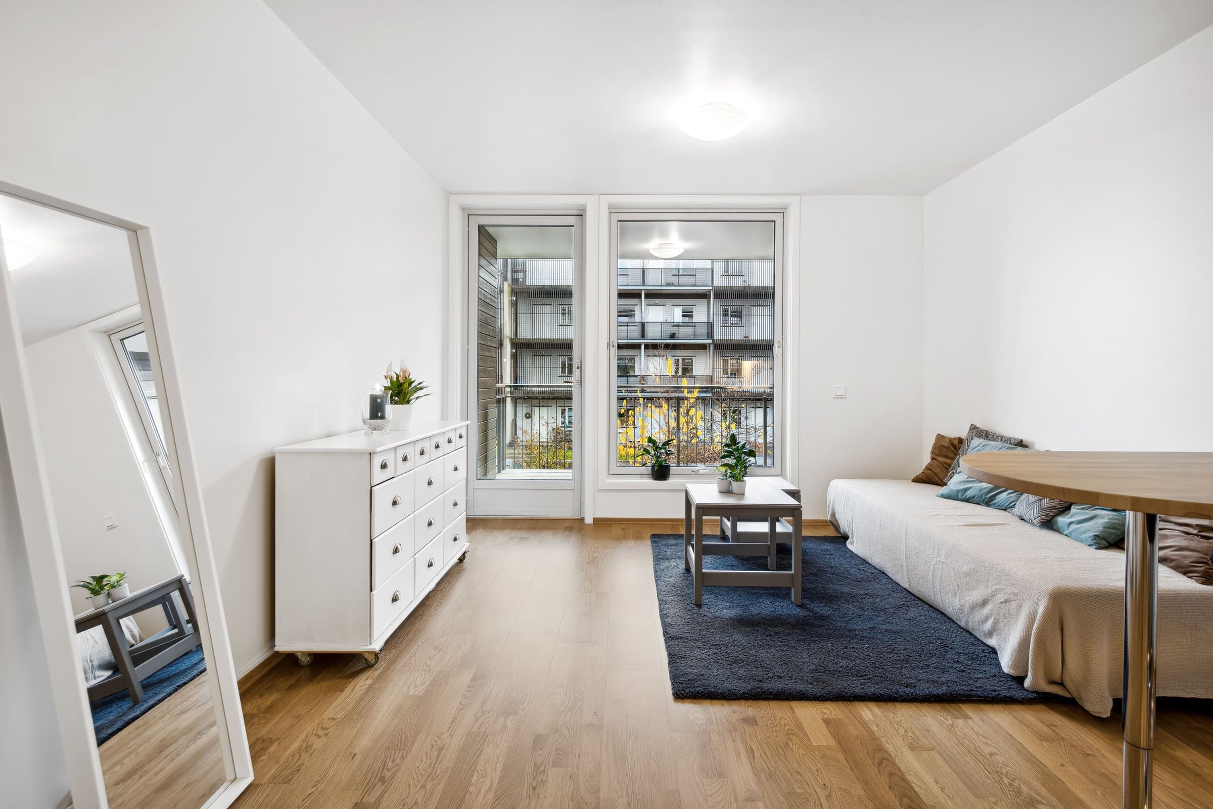 Svært attraktiv og pen 1-roms selveierleilighet i 2. etg, oppført i 2013. I 2024 er parkettgulvet byttet til 3-stavs eikeparkett og alle vegger og tak er nymalt. Leiligheten disponerer en garasjeplass. Det er to boder på til sammen 6 kvm, en i tilknytning til vestvendt balkong og en på svalgang rett utenfor inngangsdøren. Lys og gjennomgående leilighet med arealeffektiv planløsning. Sentral beliggenhet med gangavstand til Jessheim sentrum.