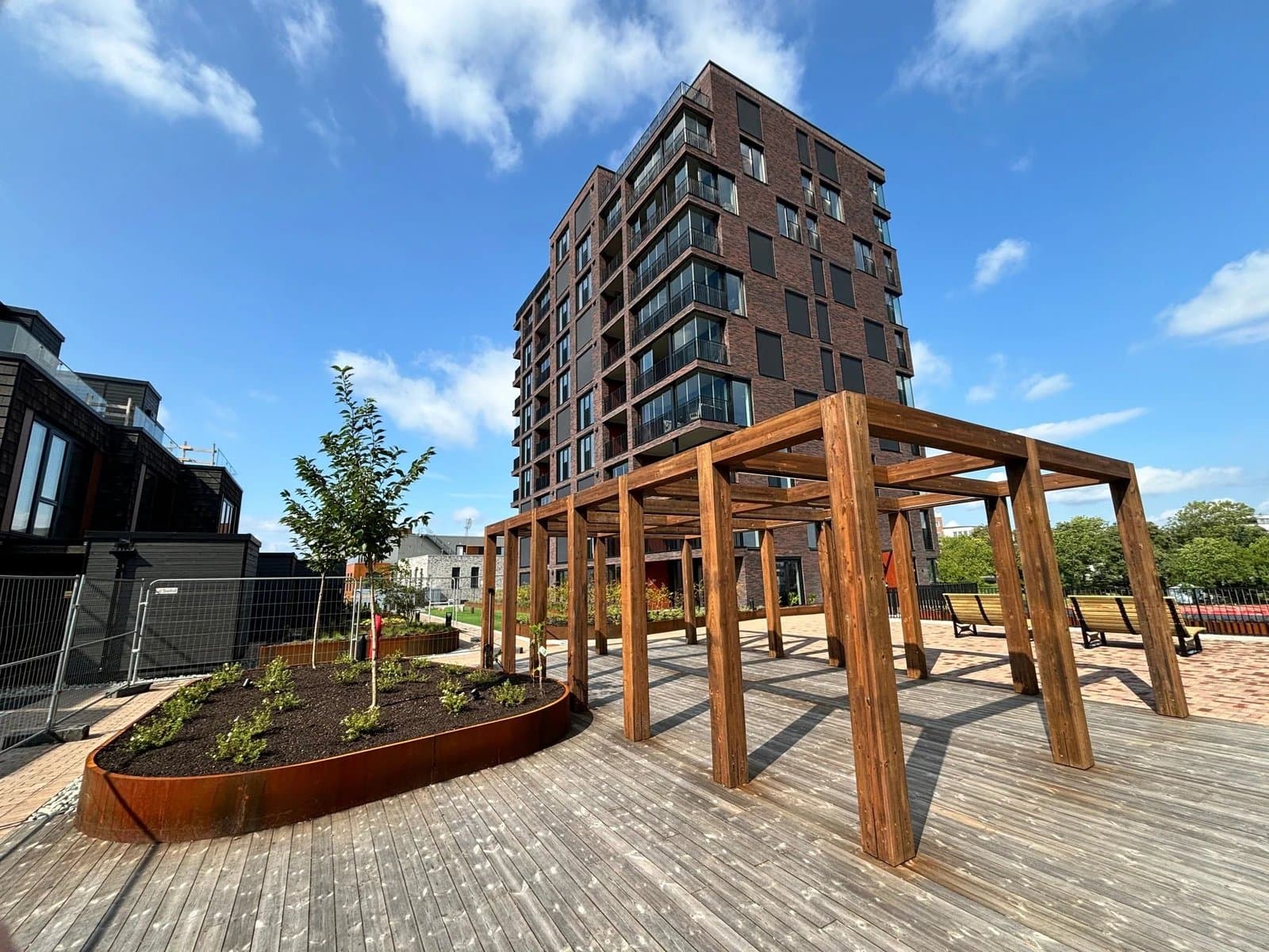 Bo urbant og sentralt i Fredrikstads nye bydel, Værste – et område i rivende utvikling som kombinerer moderne arkitektur med historisk sjarm. Byhaven tilbyr en perfekt balanse mellom det urbane liv og tilbaketrukket komfort, med alt du trenger innen gangavstand. Byhaven Vertikal ligger midt i hjertet av Værste, omgitt av et variert og bynært boligområde med hyggelige grøntarealer og fellesområder. Her bor du tett på Fredrikstad sentrum, med umiddelbar nærhet til Høgskolen i Østfold, Fredrikstad Stadion og Helsehuset, samt gangbroa over til den populære bryggepromenaden. Offentlig transport er lett tilgjengelig, inkludert Byfergene som gratis tar deg til andre deler av byen som Gressvik, Cicignon og Gamlebyen. Værste har en rik historie som tidligere skipsverft og industriområde, hvor Fredrikstad Mekaniske Verksted i sin tid var Skandinavias største skipsverft. Området er nå under transformasjon til en levende bydel, og Byhaven står som en sentral del av denne utviklingen. Dette er et av Norges største byutviklingsprosjekter, der industrihistorie møter moderne byliv. En av Byhavens unike kvaliteter er den store felles takhagen – en grønn oase for beboerne med variert vegetasjon, hyggelige sittesoner og aktivitetsområder. Takhagen gir muligheter for både avkobling, aktivitet og sosialt samvær, alt i et miljø som minner om en liten landsby midt i byen. Under boligene finner du Værstetorvet, Norges mest moderne handlesenter, med 70 butikker og serveringssteder. Her finner du også Matværste, et kulinarisk senter med smaker fra hele verden, perfekt for en rask lunsj eller en hyggelig middag. Det er rikelig med både innen- og utendørs sykkelparkering i området. Fem elsykler vil kunne brukes fritt av beboerne, samt at det etableres en bildelingsordning. Det er gode parkeringsmuligheter med kort- og langtidsleie av P-plasser i nærheten, og en stor garasje med over 350 plasser i kjelleretasjen. Byhaven gir deg alt du trenger for å leve et komfortabelt og urbant liv i Fredrikstads mest spennende nye nabolag. ------