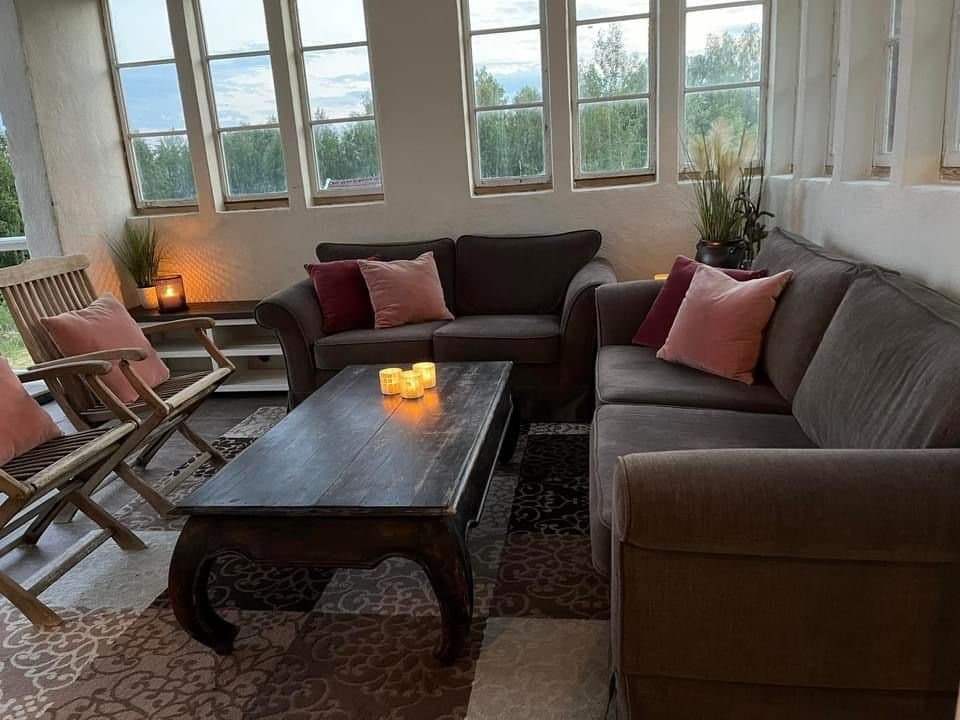 Ønsker du deg et lite slott med tårn og med et stort særpreg så er kanskje nettopp denne boligen ment for deg! Med sin praktfulle beliggenhet oppe i lia så skuer man vakkert utover Storsjøen og i bakkant er huset forbundet med skog og flott natur. Her går solen tidlig opp over tretoppene i øst og man kan nyte kveldssolen ut i de sene sommerkvelder, mens du sitter på terrassen som vender mot vest. Og skulle man ønske å søke ly så kan du sette deg godt til rette under den takoverbygde hagestuen og fortsatt nyte den nydelige utsikten over sjøen.