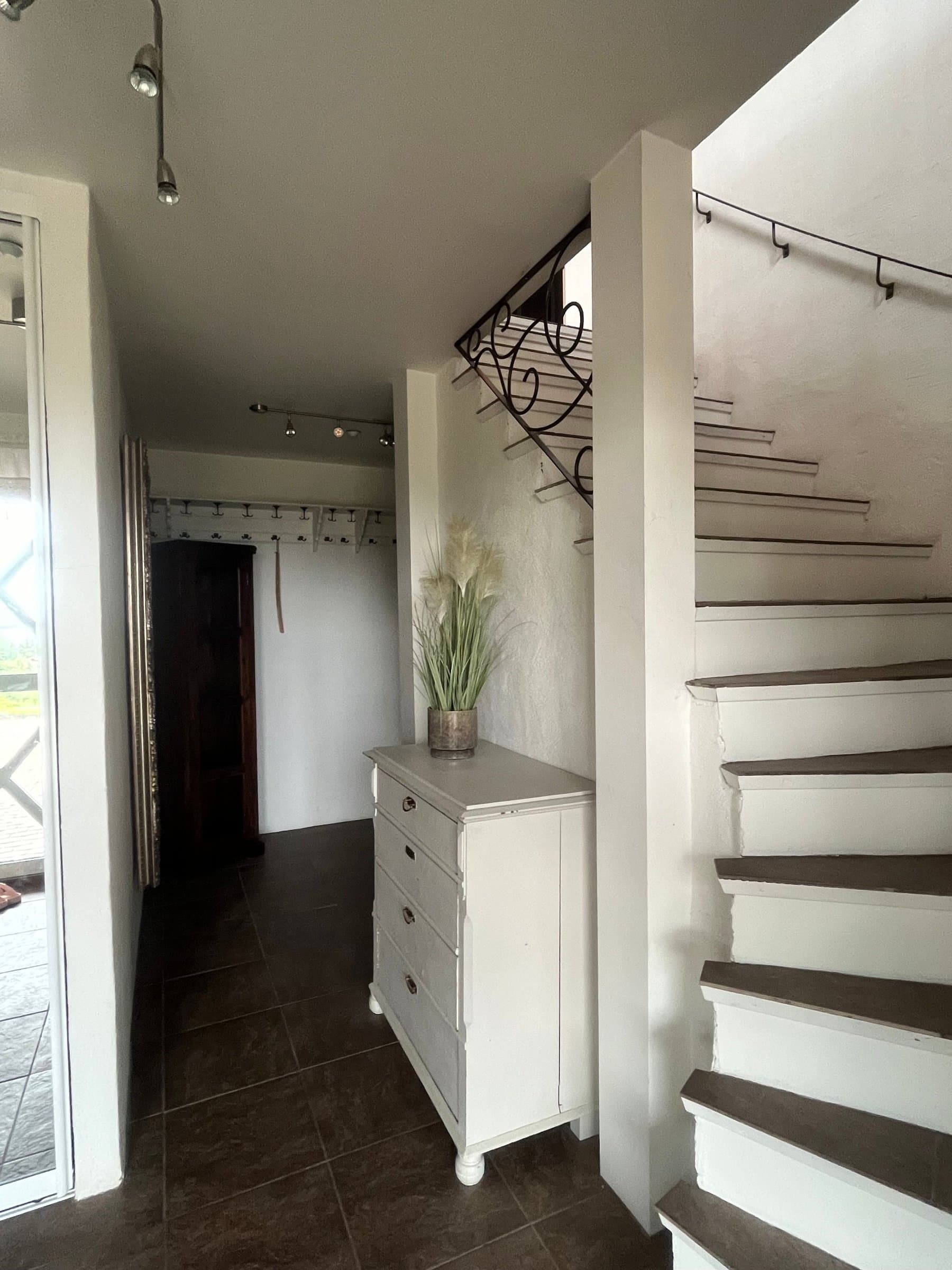 Videre ned igjen gjennom etasjene går man godt i plassmurte trapper som har flislagte inntrinn, og flotte rekkverk og håndløpere i solid smijern. Trivselsfaktoren er høy i hele dette huset med alle dets gode og gjennomtenkte løsninger. Ikke minst så bidrar de to utleie-enhetene til å sikre en god og stabil månedlig innkomst og økonomi.