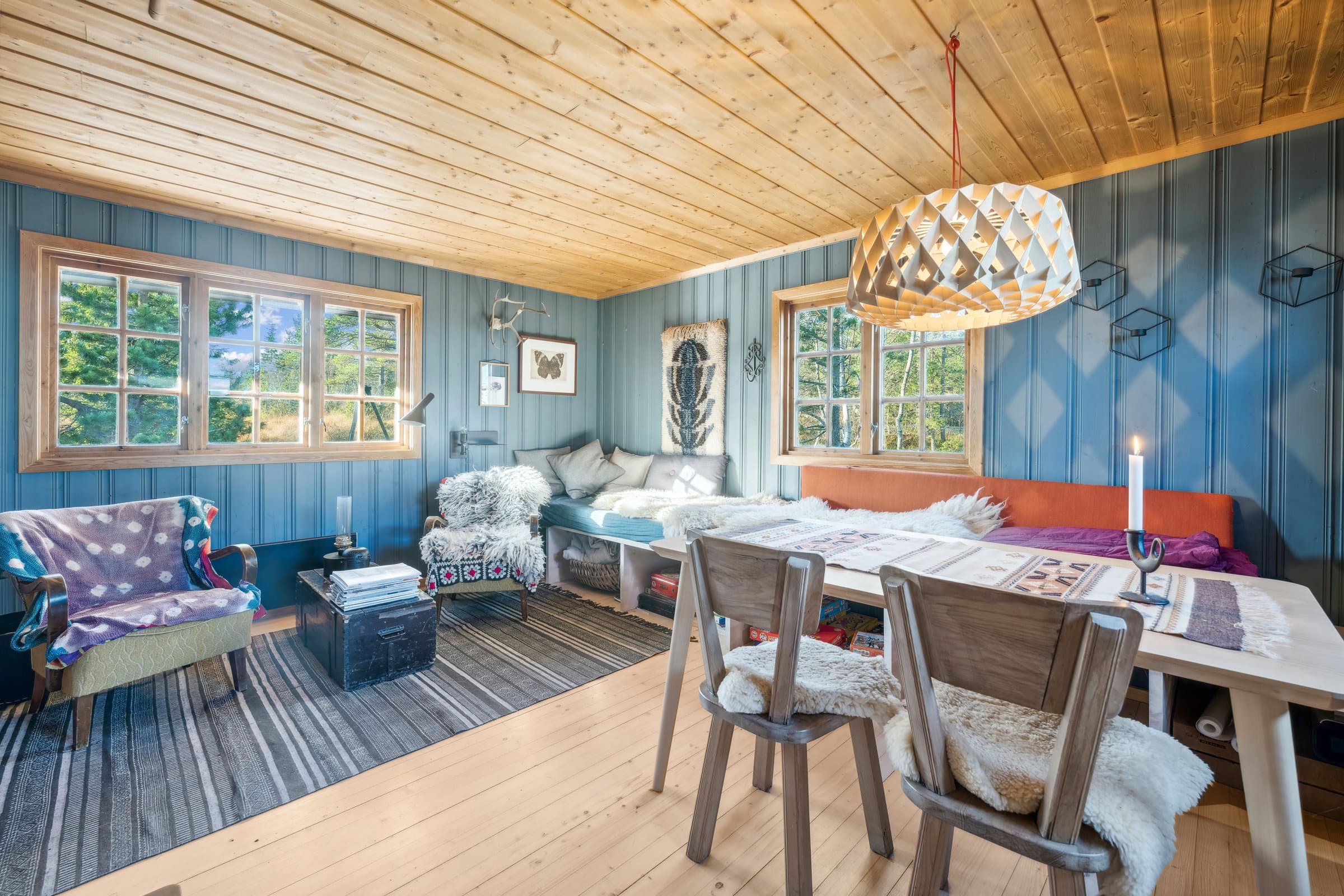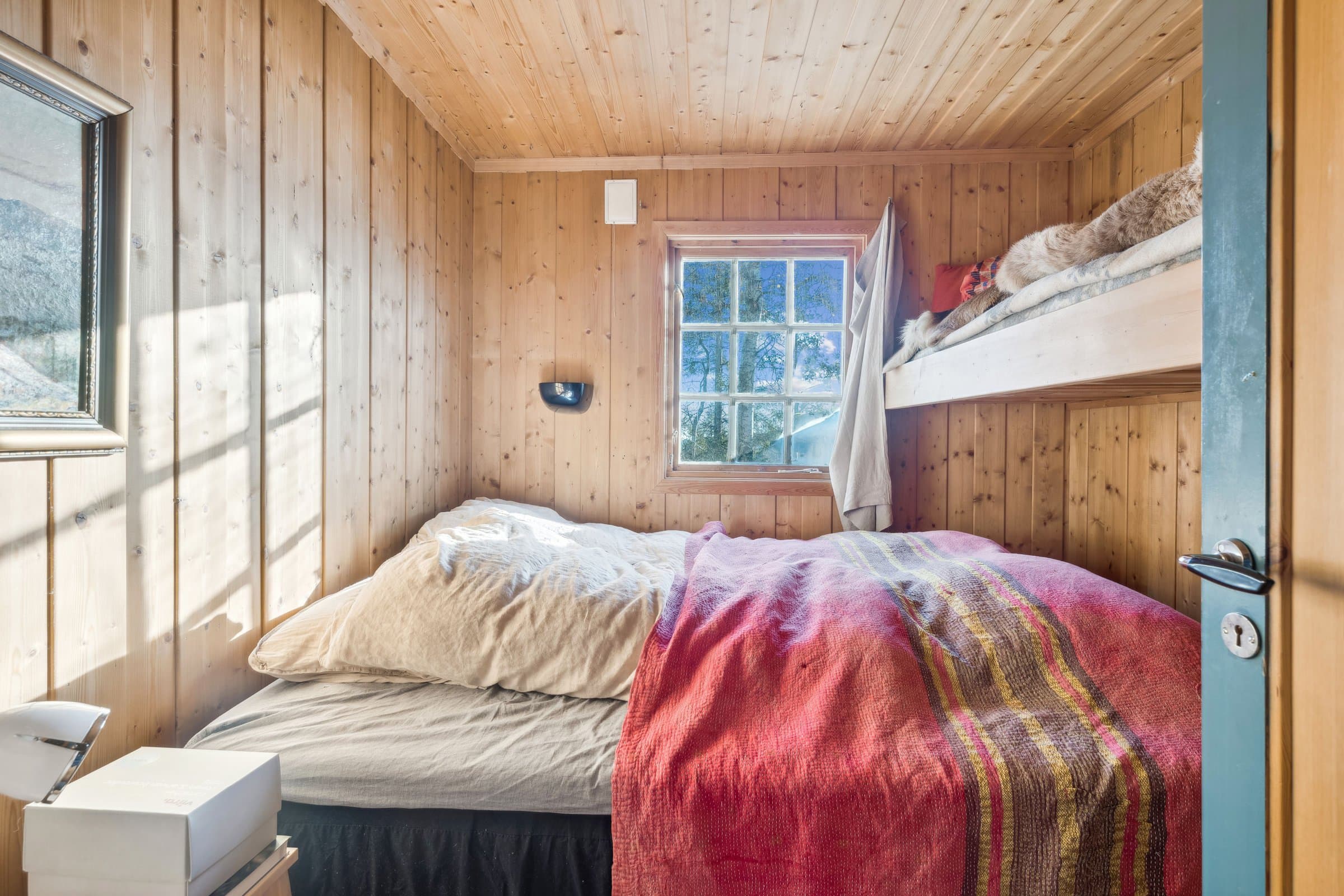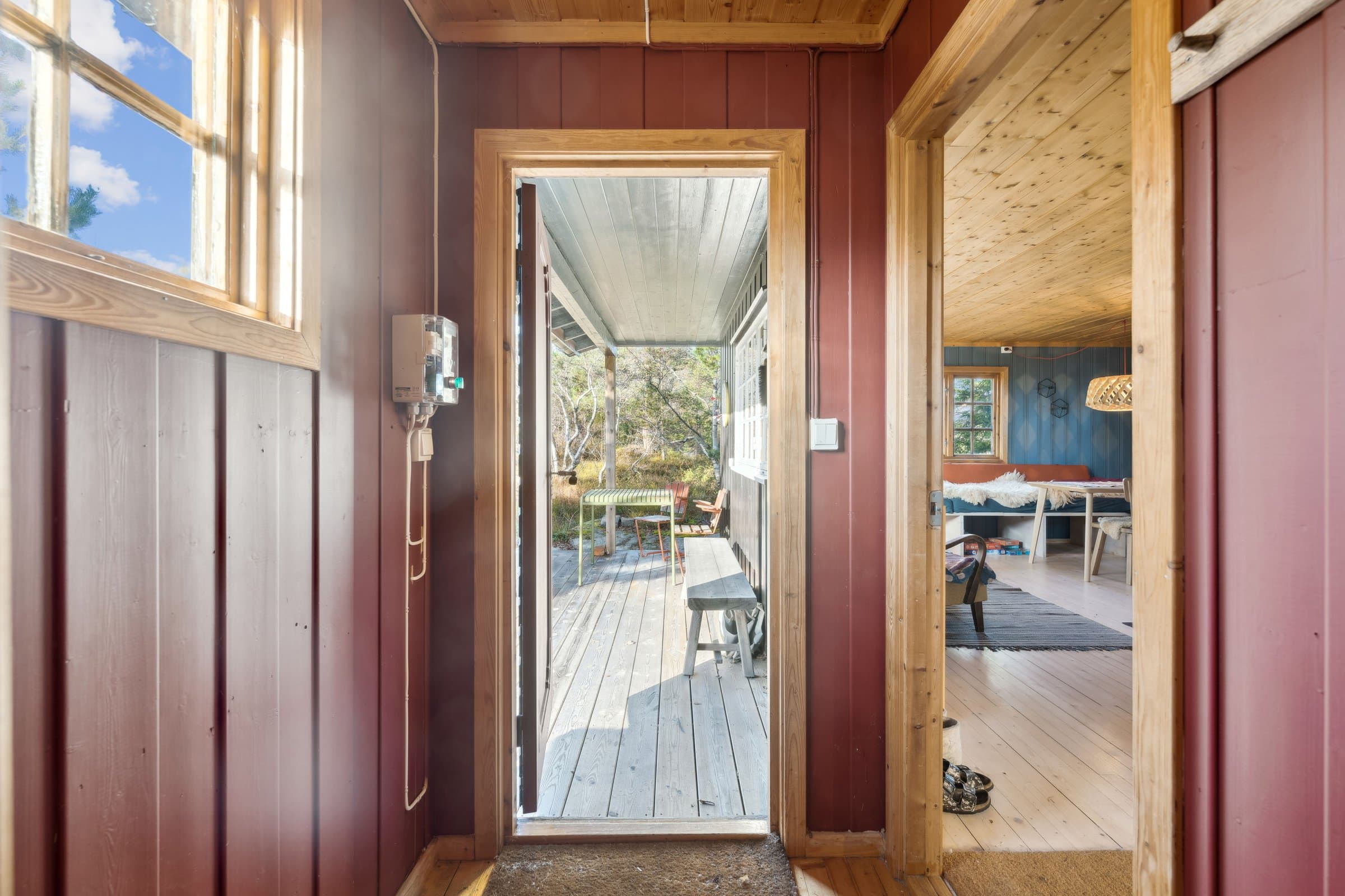 Enkel, men sjarmerende hytte selges med tungt hjerte. Det er gjort en god del innvending som blant annet bygd nytt, plassbygd kjøkken i bjørkefiner med heltre benkeplate, integrert kjøleskap, komfyr og induksjonstopp. Gulvene i stue/kjøkken er slipt og behandlet med hardvoks olje. Vegger i stue/kjøkken, gang og toalettrom er malt i behagelige farger. Det er bygget plassbygd benk/sofa for å utnytte plassen på en god måte. Det ene soverommet er bygget om for å gjøre plass til dobbeltseng. Det ble lagt inn strøm i 2015. På samme tid ble det installert Cinderella forbrenningstoalett. Det er ny platting og trapp ute. I hytta er det kombinert stue og kjøkken, en liten gang, et toalettrom med vaskemuligheter og to soverom. Det er totalt 6 sengeplasser på soverommene. Det er to utvendige boder med plass til ved og annet.
