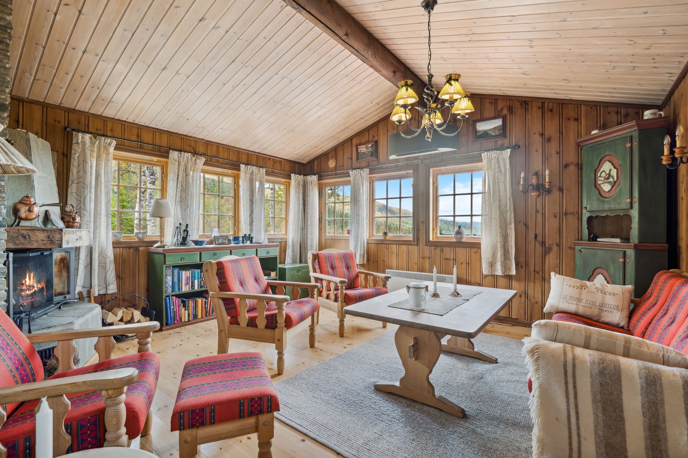 Idyllisk og sjarmerende 4-roms hytte, ved skiløype. Innlagt strøm og vann. Bilvei frem. Fantastisk utsikt!