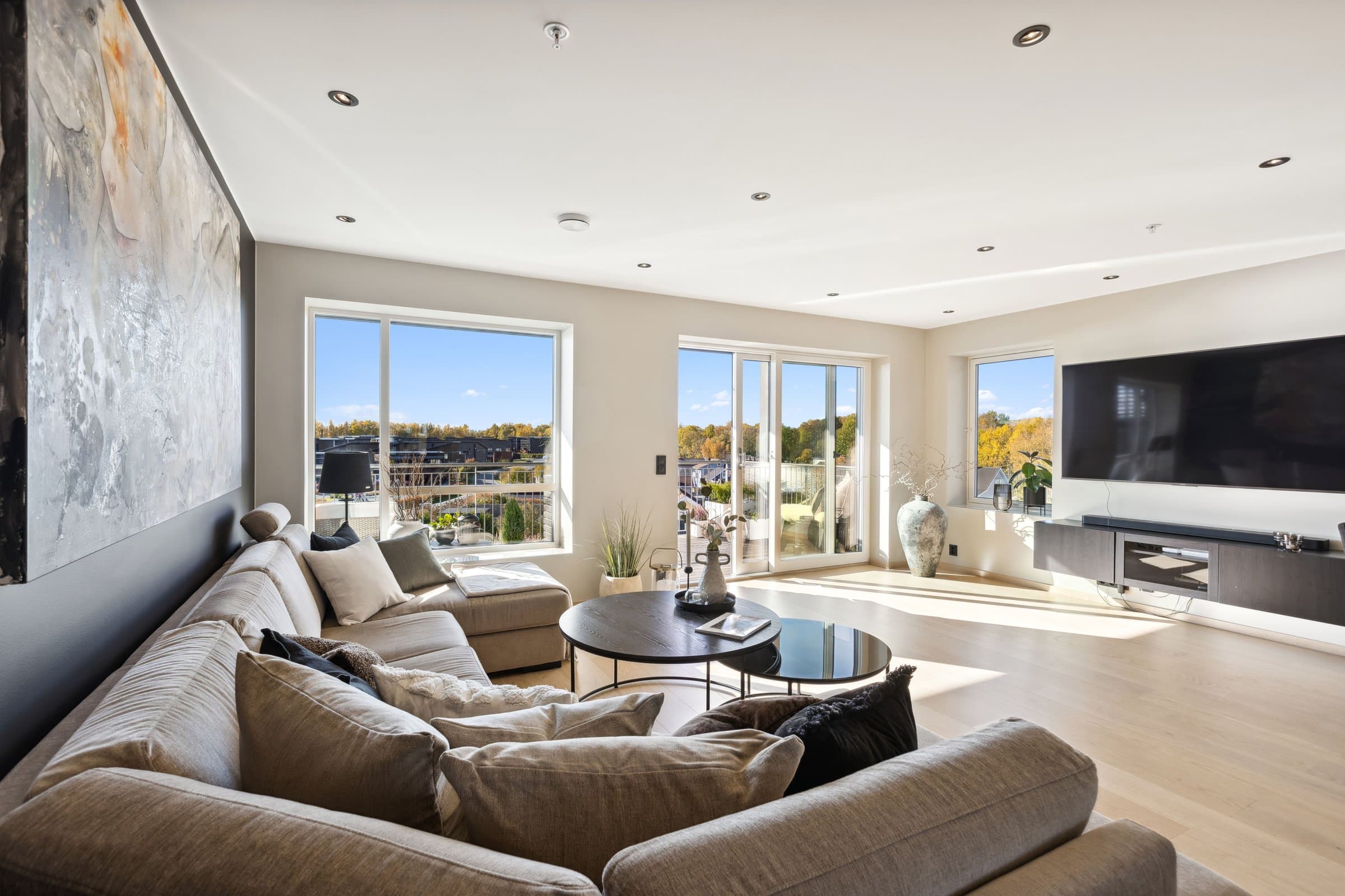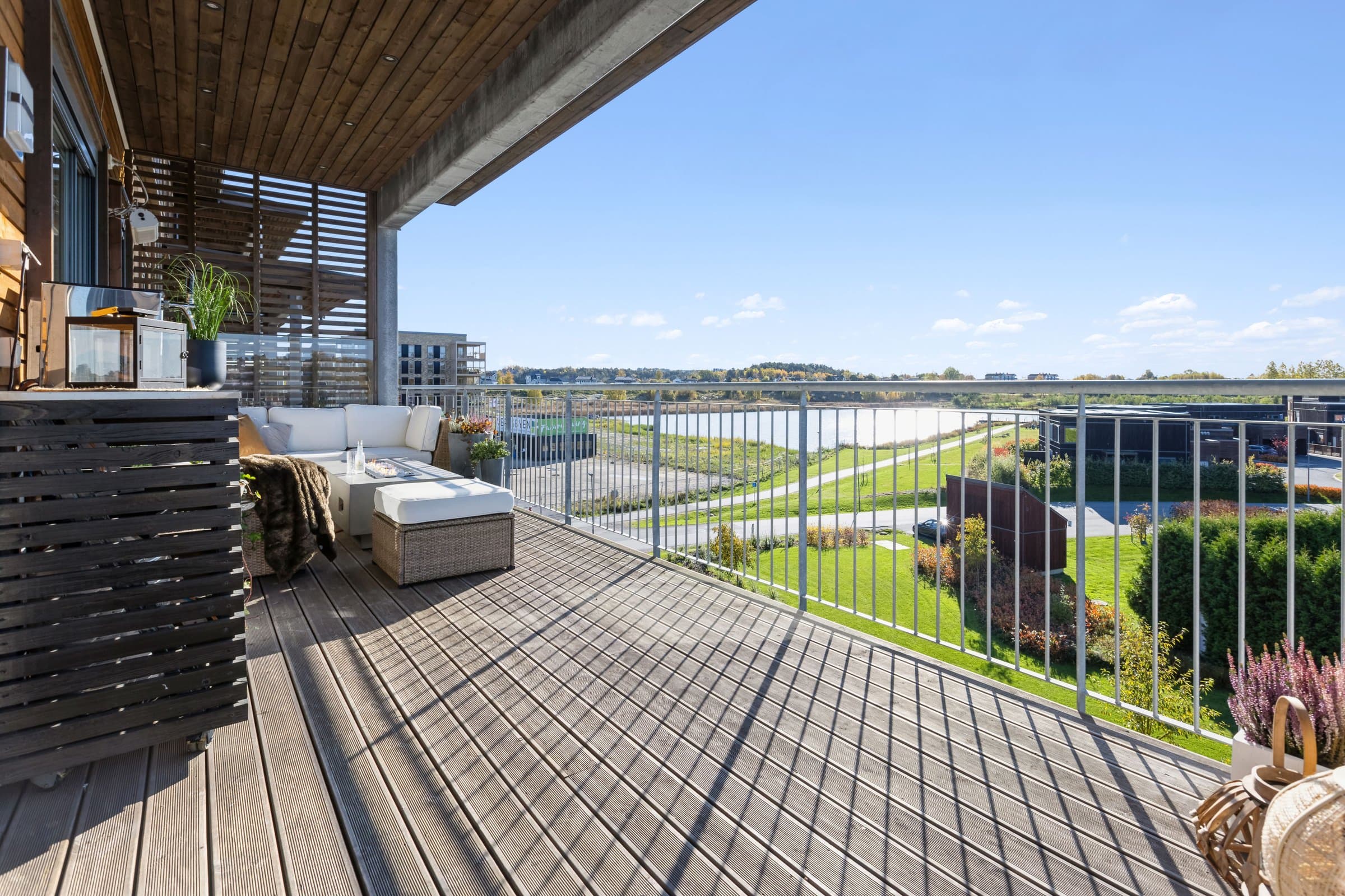 Stilfull moderne 4-roms endeleilighet med stor solrik veranda. Vesentlig påkostet, 2 bad og 2 P-plasser. Energieffektiv!