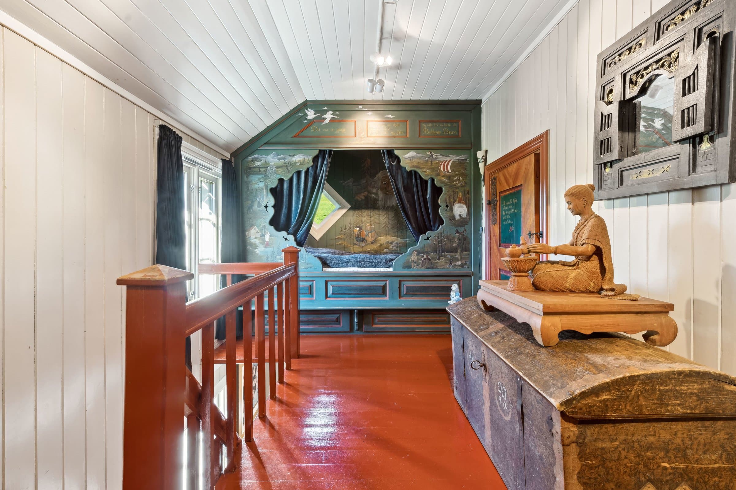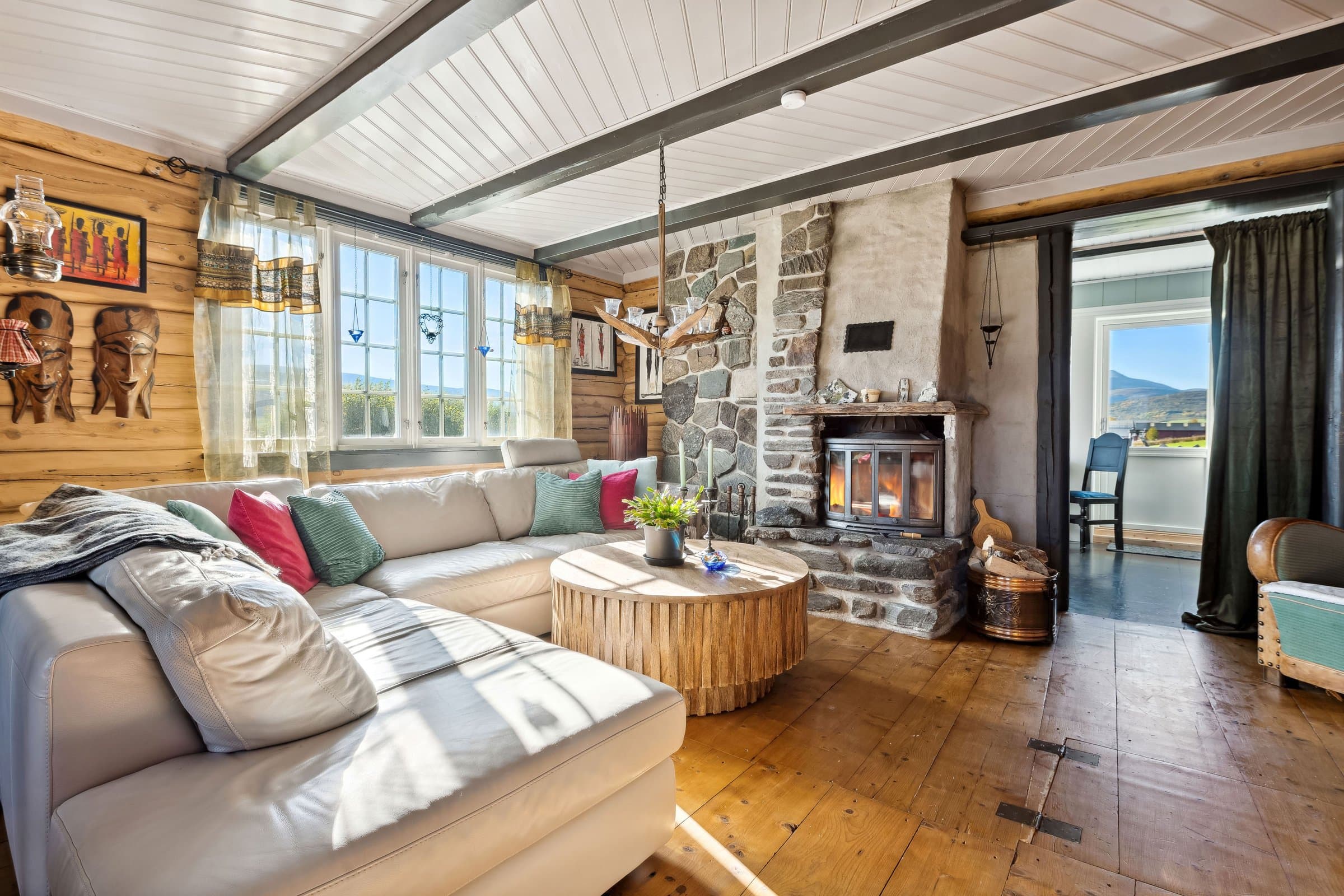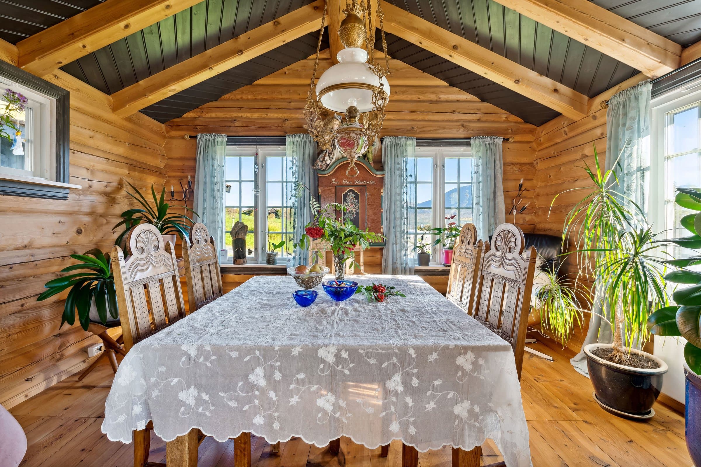 Fredtun 2 etg. Boligen har 2 soverom og en eventyrlig alkove i gangen , ett toalett . Hoved soverommet kan gjøres om til to om det er ønskelig. 1 etg. Inner og yttergang har Oppdals skifer lagt i gulvene. Bad med tilhørende rom for vaskemaskin/tørketrommel. Ett koselig kjøkken med utsikt mot Storhornet og Trollheimen. Hvitevarer følger med. Stue/peisestue som har aura av fordoms tid hvor det gamle har blitt tatt vare på. Det er lett å finne sjelero etter en lang dag ute i skibakkene eller vandring i fjellheimen foran en knitrende peis.Alle dørene i huset er fra "før i tiden" med malte og håndskrevne skildringer fra livets sene. Hovedhuset ble satt opp i 1936 og i 2000/2002 ble det foretatt vesentlige påkostninger. Siden 2017 frem til 2024 har det blitt lagt ned ett moderne vann/kloakksystem, strøm kabler ute og inne i anneksene/boden. Hovedhuset er blitt etterisolert utvendig. Undertak stue/kjøkken til kjeller har ny isolering. Garasjen ble bygd i 2017 og har fått ett isolert påbygg som Fungerer som bod. Påbygget er på ca 12 m2 . Begge anneksene har blitt vesentlig påkostet og leies ut via Airbnb. Alt av inventar av disse to følger med i salget. Boden på 10m2 er isolert og har muligheter for å legge inn vann/kloakk. Badstue/dusj muligheter.Utenfor boden er det klarert for å koble opp til eventuelt jacuzzi der det er bygd opp en blå glassvegg mot Storhornet. Torvtaket på hovedhuset ble i 2019/2020 påført ny jord med blomsterfrø. Tomten har også gjennomgått store forandringer der det er blitt en flott plen hvor det har blir beplantet med bærbusker, jordbær/potet kasser, Syriner og diverse stauder .