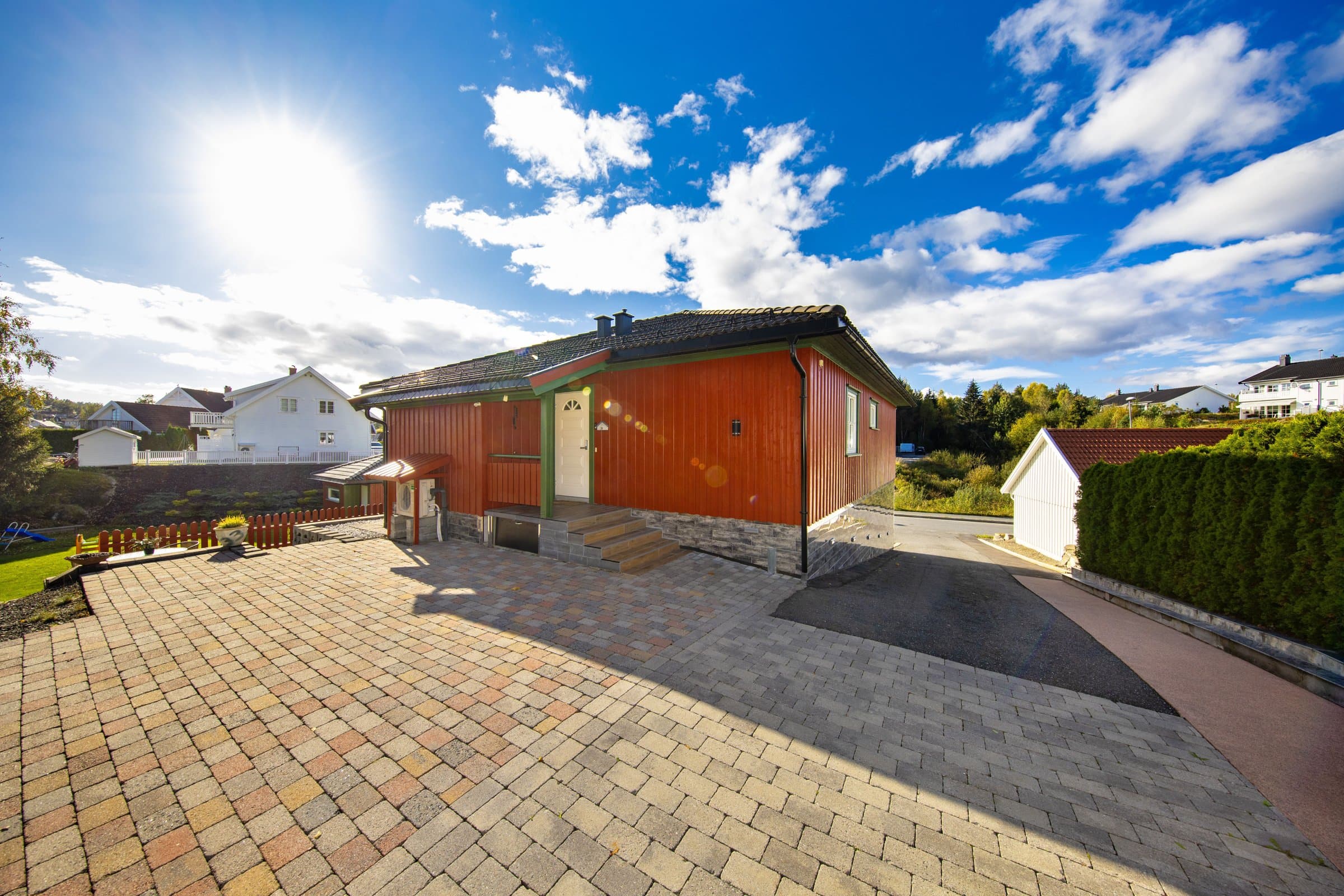 HOVEDETASJE. Det er laget nytt soverom siden publisering Se tillagt bilder. Boligen har vannbåren gulvvarme og forbruksvann fra luft til vannanlegg. Smarthus elanlegg i hovedetasje. Balansert ventilasjon. Flislagte gulv. Innglasset veranda. Flislagt utvendig mur. Kjølerom i utebod plen. Varmekabler i oppkjørsel. SOKKELLEILIGHET. Gulvvarme og varmt forbruksvann fra fellesanlegg. Steinsatt eller asfaltert uteområde. Gode parkeringsmuligheter. Lekeområde nært. Avtal gjerne privatvisning.