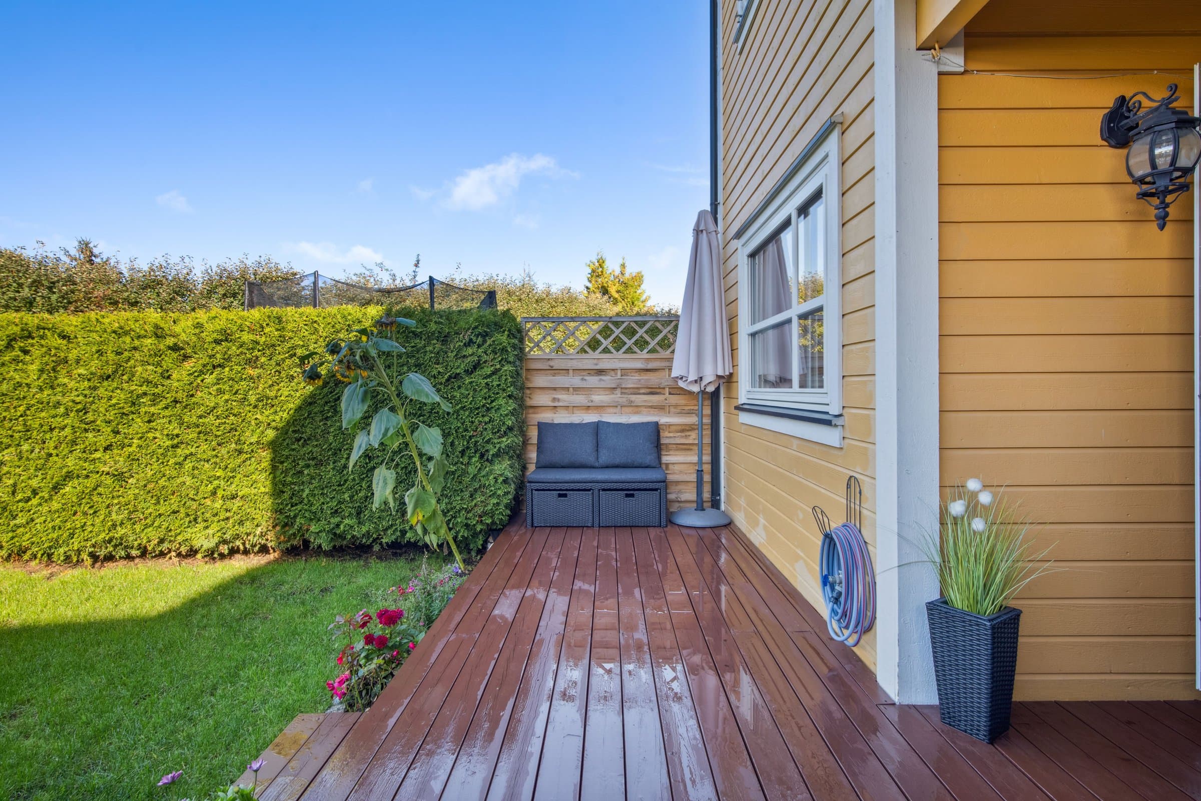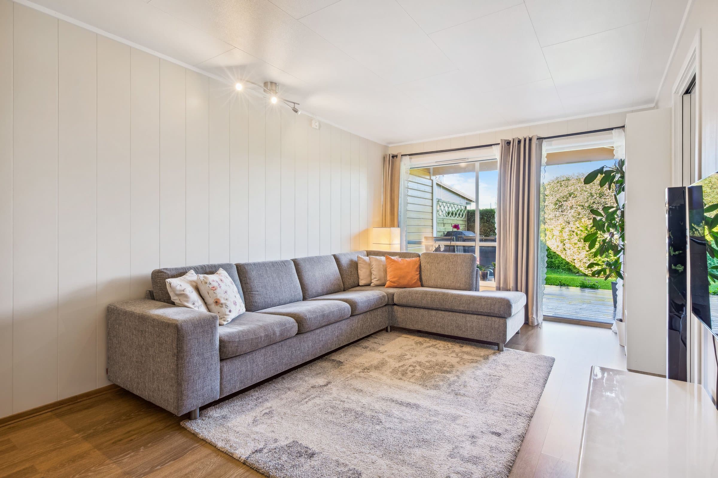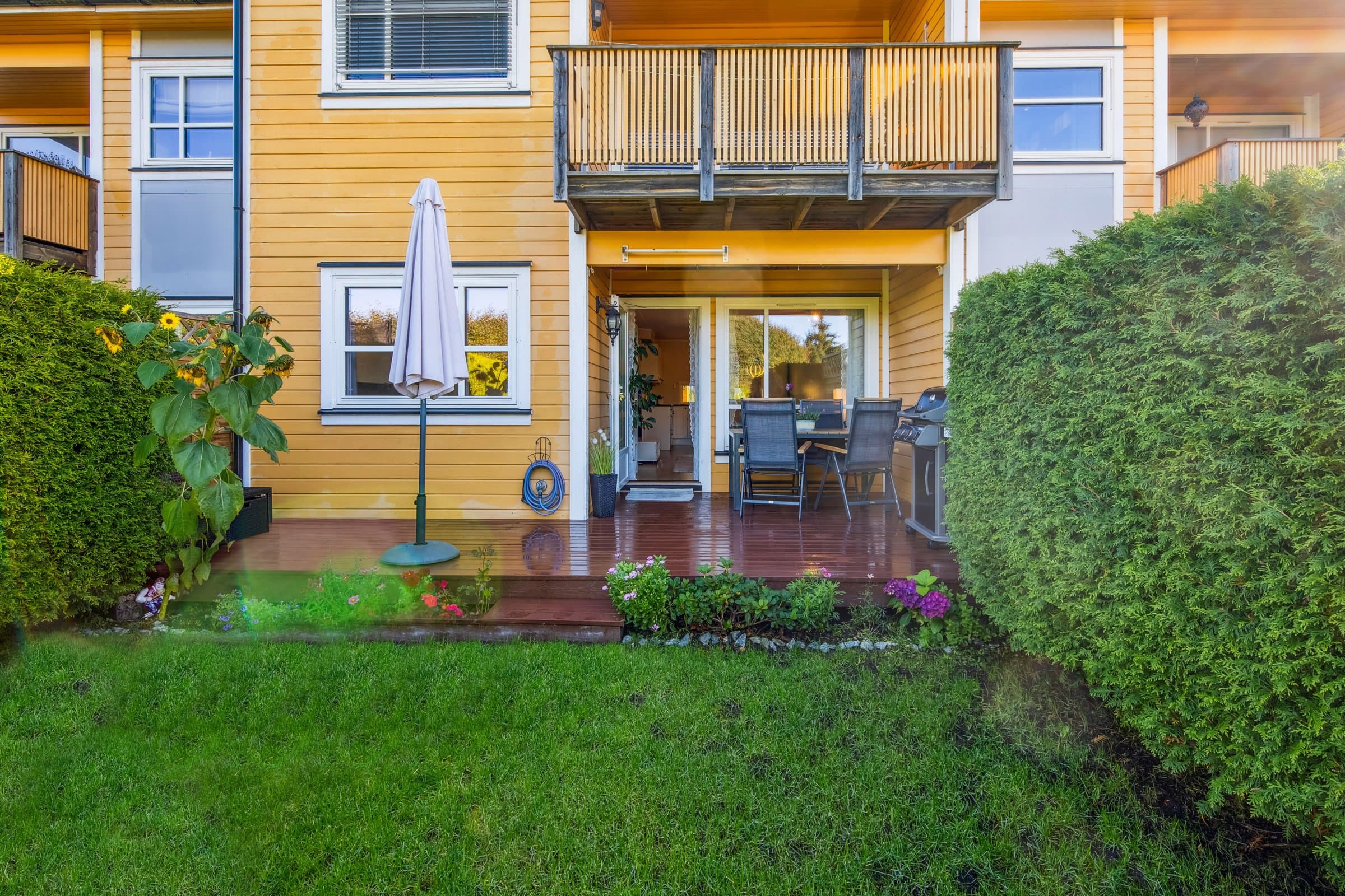 Koselig 2-roms selveierleilighet, sørvestvendt markterrasse med hage. Skjermet beliggenhet. Kort vei ut til E6-aksen