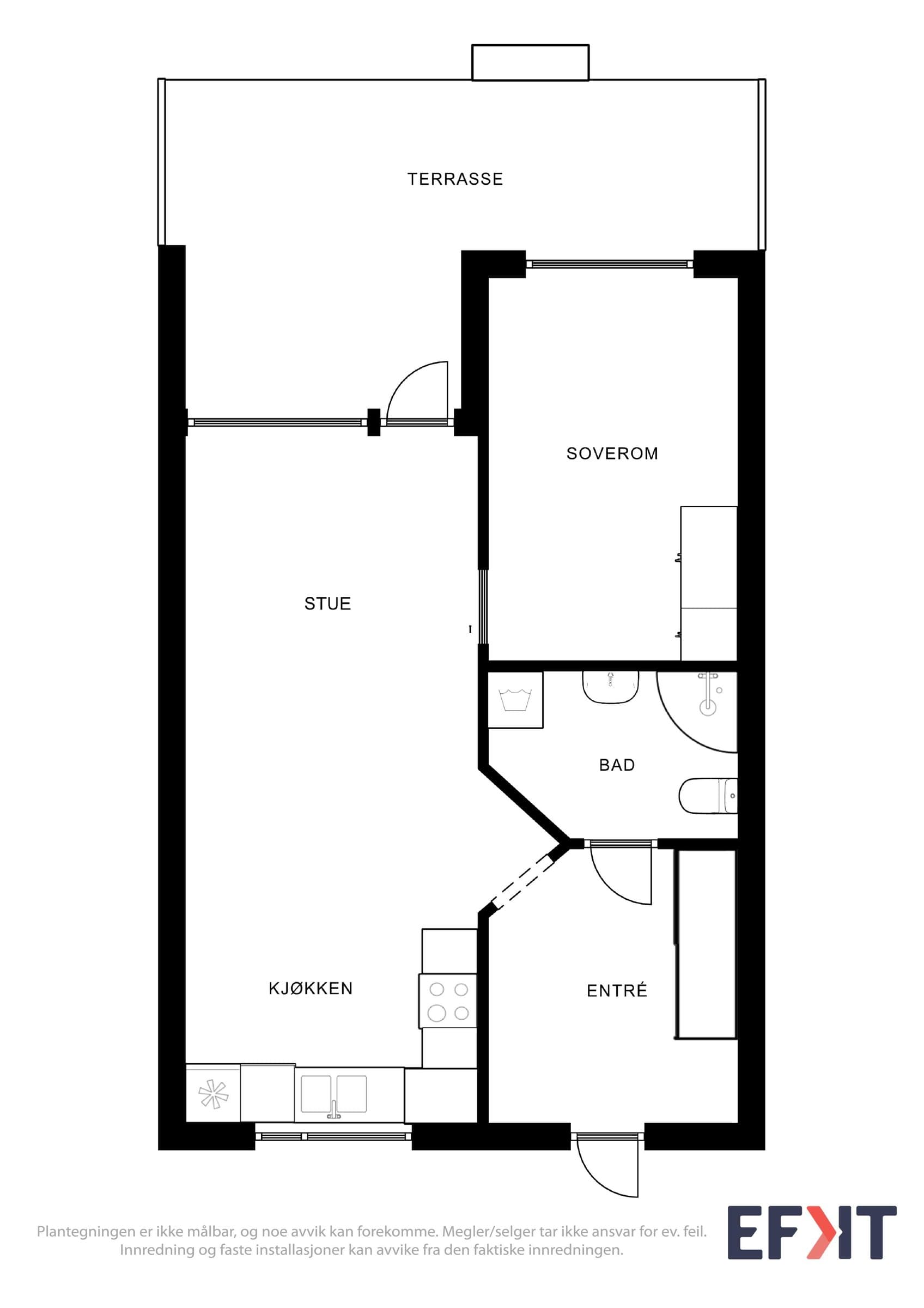 Leiligheten ligger i 1 etasje med trappefri adkomst i en koselig flermannsbolig. God planløsning med entré m/skyvedørsgarderobe, bad med opplegg for vaskemaskin, åpen stue/kjøkken-løsning og et romslig soverom. I tillegg er det sørvestvendt markterasse på 14m² med hage, fast parkeringsplass og én utebod.