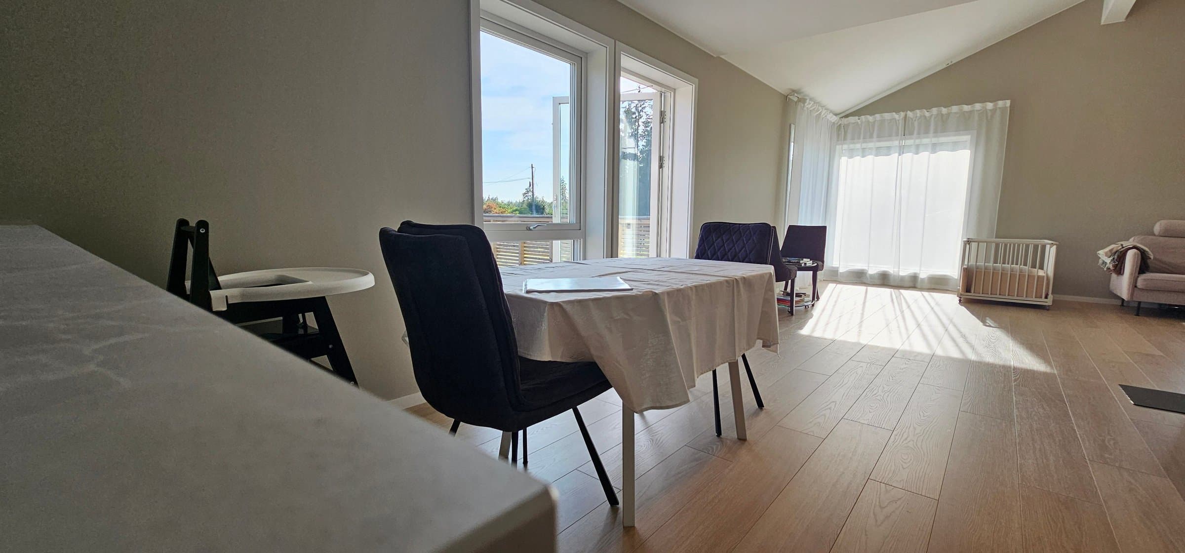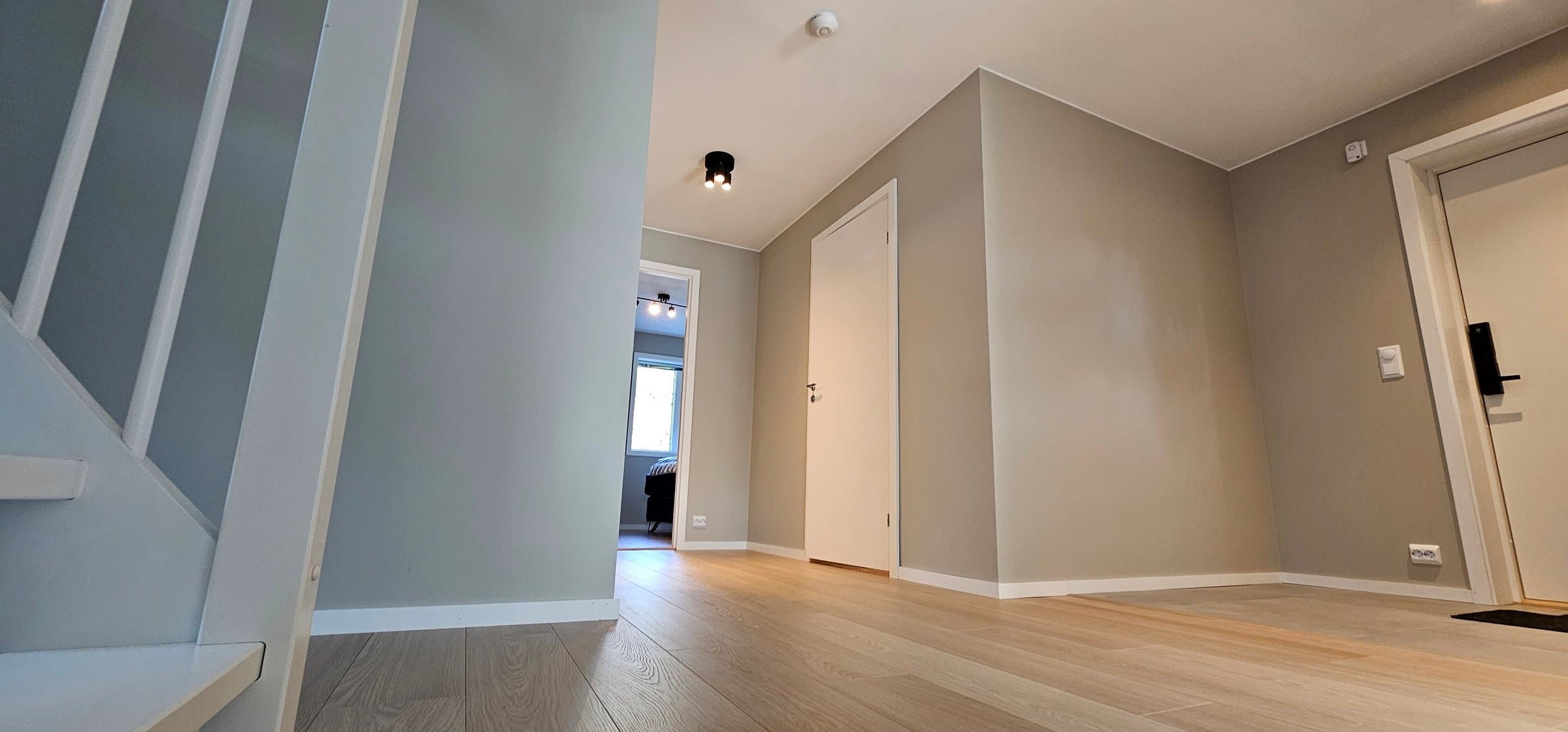 Ny energi effektiv og moderne smarthus oppført i 2024 til salgs i rolig beliggende strøk i Vestby. Huset er bygget etter ny byggestandard i henhold til TEK17. Perfekt beliggenhet i forhold til Oslo, Akershus -og Østfold-regionen. Nabolaget er familievennlig, rolig og stille, og boligen er skjermet fra trafikk. Cirka 7 minutter med bil til sentrum (kjøpesenter), 4 minutter til barnehage og 5 minutter til skole. Relativ stor flat og solfylt-sydvendt tomt med stort hageareal for videre potensiale med oppbygging av fremtidige beplantning for de med grønne fingre! Car-port har montert EL-billader og med overhengende 34m2 inngjerdet takterrasse med adkomst fra andre etasje. Sportsbod på 5,6 m2 der det er mulig å etterisolere for å skape et ekstra oppholdsrom/gjesterom. Privat adkomstvei til og fra bolig via nabotomt endret etter vedtak fra kommunen. Totalt 4 stykk soverom der hovedsoverommet har mulighet for walk-in garderobe løsning. Alle soverom har ventilasjon, og alle rom i første etasje har varme i gulv som kan justeres i hvert enkelt rom. 2 stykk bad med hovedbad i første etasje og mindre gjeste-bad i etasje 2. Teknisk rom og vaskerom med alle tekniske installasjoner som: sentral støvsuger, VV-bereder, sikringsskap, ventilasjonsanlegg, oppkobling til vaskemaskin og tørketrommel med både avløp, og separat stikk til begge enheter. Romslig og modere kjøkken fra drømmekjøkken med integrerte hvitevarer: Oppvaskmaskin, kombi kjøle/frys- skap, induksjonsplatetopp og kraftig ventilator med utløp til friluft. Stue, kjøkken og spisestue har moderne og åpen løsning der alle deler er i ett uten skillevegger. Stue har også peis for oppvarming med vedfyring. Huset har fullt integrert smarthus system som hjelper deg med å ha kontroll på alt forbruk av strøm og vil automatisk lade EL-bilen din når det er billigst strøm på markedet.