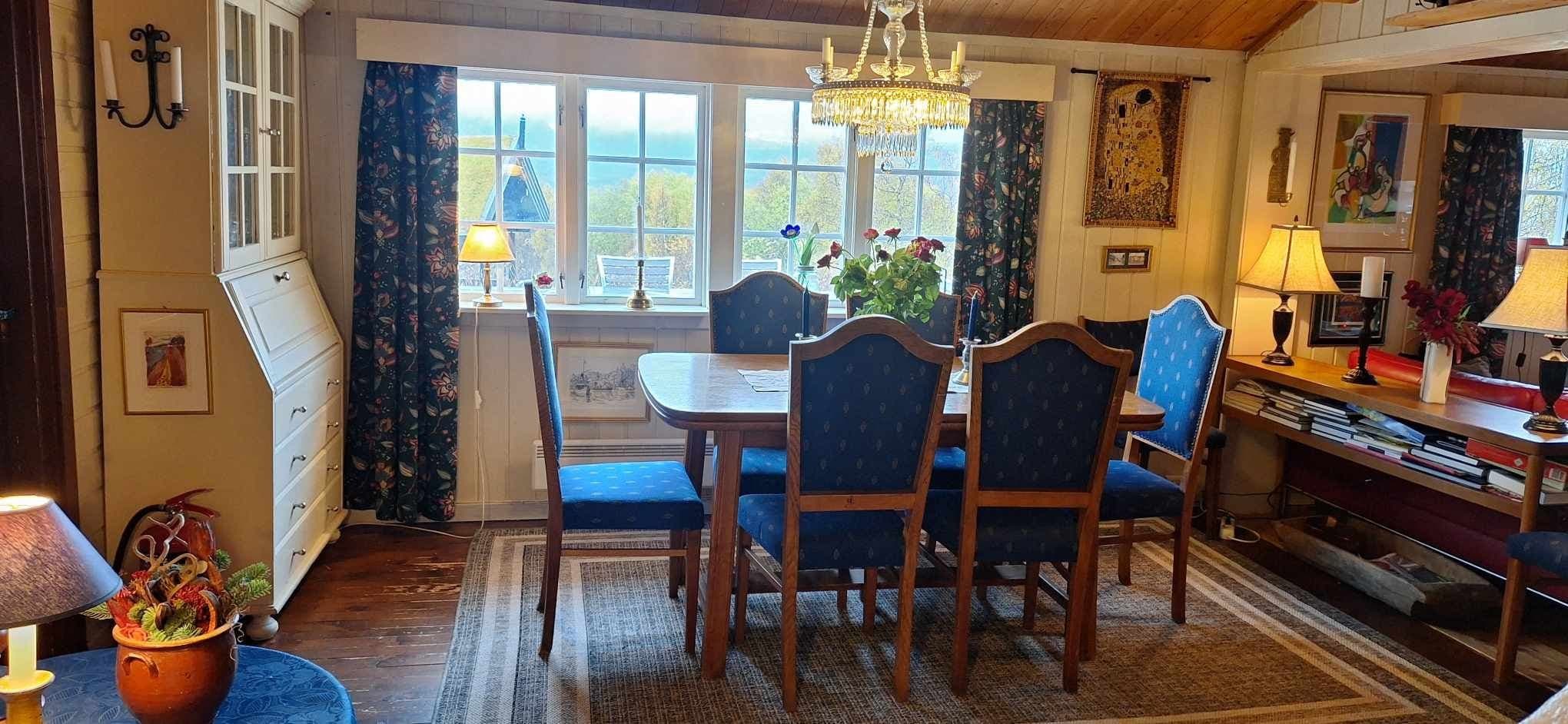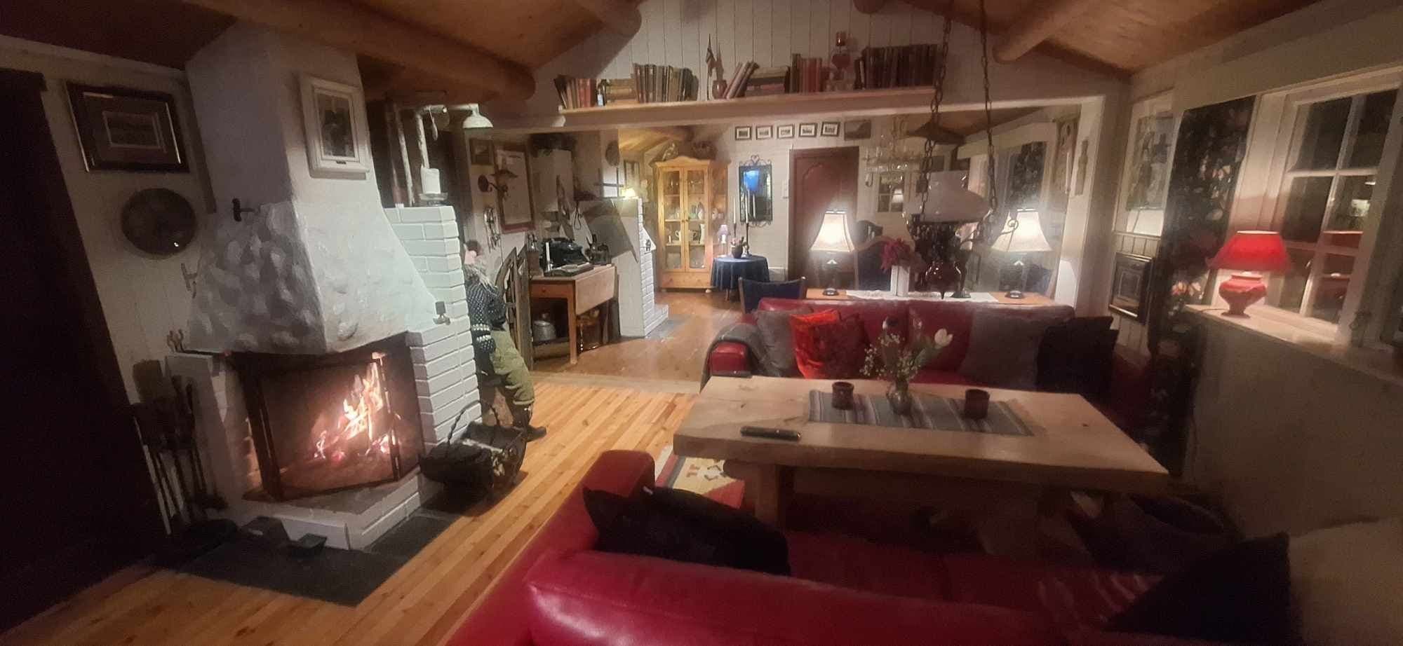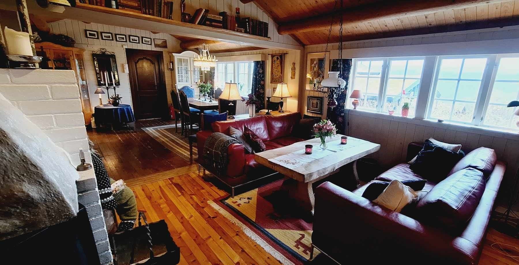 Annet visningstidspunkt kan avtales, tlf 92265641. Åremålleie kan vurderes. Skjermet beliggenhet innerst i blindvei, grenser til en bekk. Her blir det ikke bygget flere hytter. Naturtomt med plen og skiferheller mot inngangsdør. Plass til flere biler. STUE: -Spisestuesone med peis -Salong og TV-sone med peis KJØKKEN: -Innredning med profilerte fronter. -Benkeplate i laminat med nedfelt stål oppvaskkum med stor og liten kum. -Fliser over kjøkkenbenk -Oppvaskmaskin -Komfyr og ventilator med avtrekk ut -Kjøl/fryseskap BAD: Fra 2015, flislagt gulv med varmekabler (dokumentasjon fra Nyvold Installasjon) trepanel på vegg, dobbel servant, speilskap med overlys, stor varmtvannsbeholder plassert i skap på bad(300 l) TOILETTROM: WC, servant og vaskemaskin, gulv med våtromsbelegg. Hovedstoppekran i dette rommet. SOVEROM: 1: Hovedsoverom med vask og dusjkabinett av eldre dato, men fullt funksjonelt. Elektrisk håndkletørrer. Kleskap med plassbesparende forheng, Plass til kommode. Seng 180 cm 2: Klesskap, seng 120 cm 3: Klesskap, seng 120 cm, idag har vi et ekstra kjøl/frysskap på dette rommet som er innenfor kjøkkenet. 4: Køyeseng med 120 cm + 80 cm seng, ikke klesskap med knagger til klær 5: Brukes idag som kontor med liten sovesofa og plass til skrivebord Boder. -Innvendig bod i gang -Utvendig bod for oppbevarong av ved, ski, sykler etc -Bod med dør med inngang fra utvendig bod. MATERIALER: UTVENDIG: Taktekkingen er av torv. Veggene har bindingsverkkonstruksjon fra byggeår. Fasade kledning har stående bordkledning. Terrasse ved kjøkkeninngang er fra 2015 og har gulvbjelker av impregnert materiale. INNVENDIG: -Gulv av laminat, furu og fliser. -Varmekabler på bad og hovedgang, -Har trepanel, innvendig tak har trepanel. -Automatsikringer -Ring-hytta-varm-installasjon fra DEFA. For mer informasjon: se tilstandsrapport. Det gjøres oppmerksom på at rapporten tar utgangspunkt i dagens byggeforskrifter. Det kan forekomme til dels store avvik i forhold til byggeforskriftene som gjaldt da hytta ble bygget i 1975.