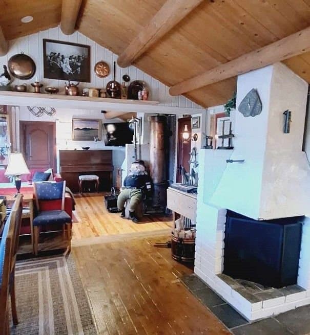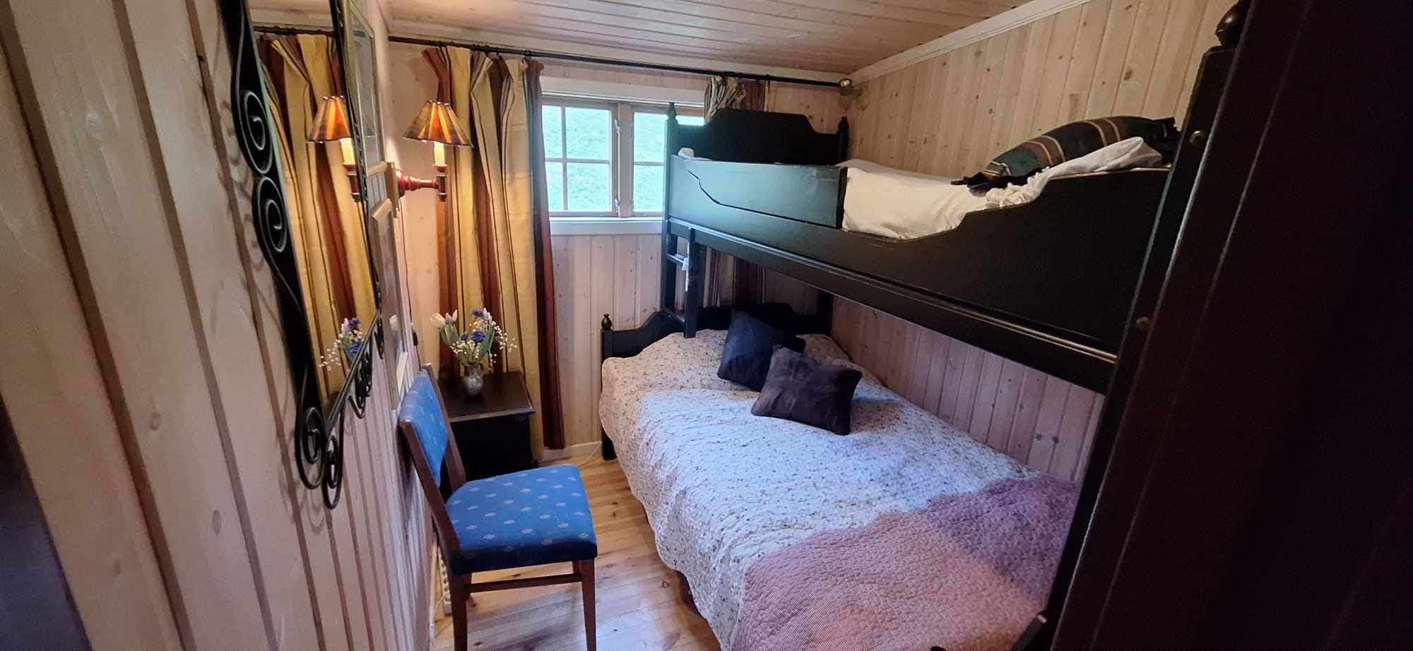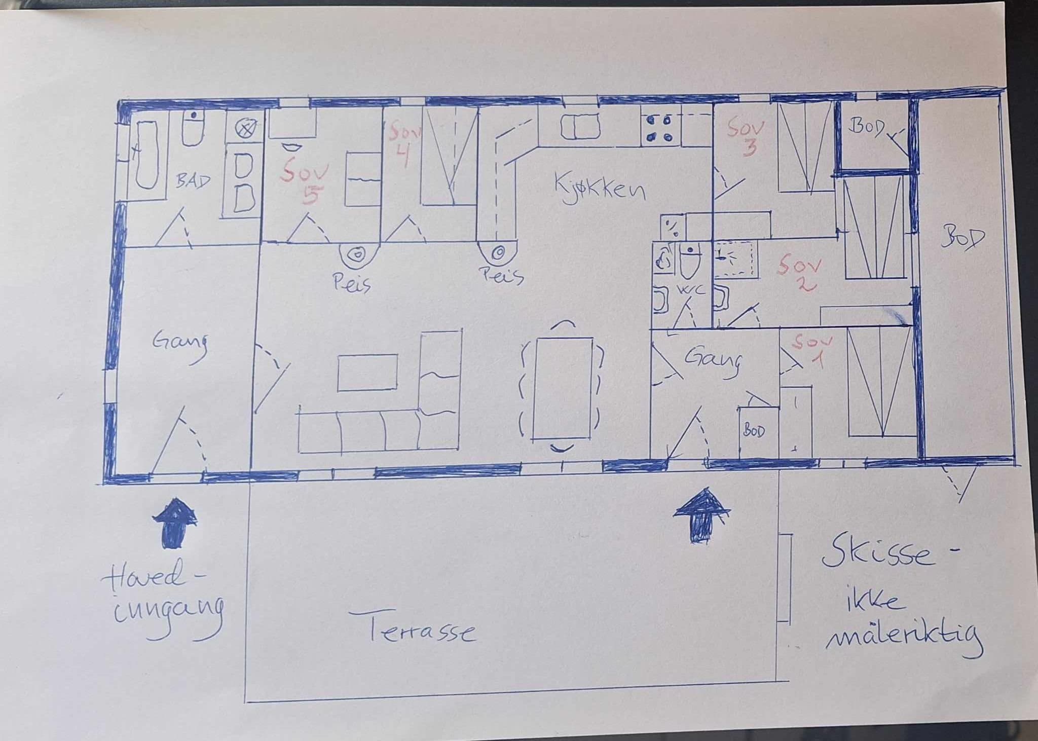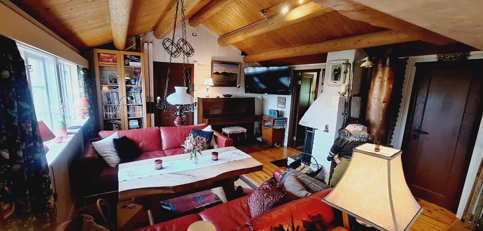 Annet visningstidspunkt kan avtales, tlf 92265641. Åremålleie kan vurderes. Skjermet beliggenhet innerst i blindvei, grenser til en bekk. Her blir det ikke bygget flere hytter. Naturtomt med plen og skiferheller mot inngangsdør. Plass til flere biler. STUE: -Spisestuesone med peis -Salong og TV-sone med peis KJØKKEN: -Innredning med profilerte fronter. -Benkeplate i laminat med nedfelt stål oppvaskkum med stor og liten kum. -Fliser over kjøkkenbenk -Oppvaskmaskin -Komfyr og ventilator med avtrekk ut -Kjøl/fryseskap BAD: Fra 2015, flislagt gulv med varmekabler (dokumentasjon fra Nyvold Installasjon) trepanel på vegg, dobbel servant, speilskap med overlys, stor varmtvannsbeholder plassert i skap på bad(300 l) TOILETTROM: WC, servant og vaskemaskin, gulv med våtromsbelegg. Hovedstoppekran i dette rommet. SOVEROM: 1: Hovedsoverom med vask og dusjkabinett av eldre dato, men fullt funksjonelt. Elektrisk håndkletørrer. Kleskap med plassbesparende forheng, Plass til kommode. Seng 180 cm 2: Klesskap, seng 120 cm 3: Klesskap, seng 120 cm, idag har vi et ekstra kjøl/frysskap på dette rommet som er innenfor kjøkkenet. 4: Køyeseng med 120 cm + 80 cm seng, ikke klesskap med knagger til klær 5: Brukes idag som kontor med liten sovesofa og plass til skrivebord Boder. -Innvendig bod i gang -Utvendig bod for oppbevarong av ved, ski, sykler etc -Bod med dør med inngang fra utvendig bod. MATERIALER: UTVENDIG: Taktekkingen er av torv. Veggene har bindingsverkkonstruksjon fra byggeår. Fasade kledning har stående bordkledning. Terrasse ved kjøkkeninngang er fra 2015 og har gulvbjelker av impregnert materiale. INNVENDIG: -Gulv av laminat, furu og fliser. -Varmekabler på bad og hovedgang, -Har trepanel, innvendig tak har trepanel. -Automatsikringer -Ring-hytta-varm-installasjon fra DEFA. For mer informasjon: se tilstandsrapport. Det gjøres oppmerksom på at rapporten tar utgangspunkt i dagens byggeforskrifter. Det kan forekomme til dels store avvik i forhold til byggeforskriftene som gjaldt da hytta ble bygget i 1975.