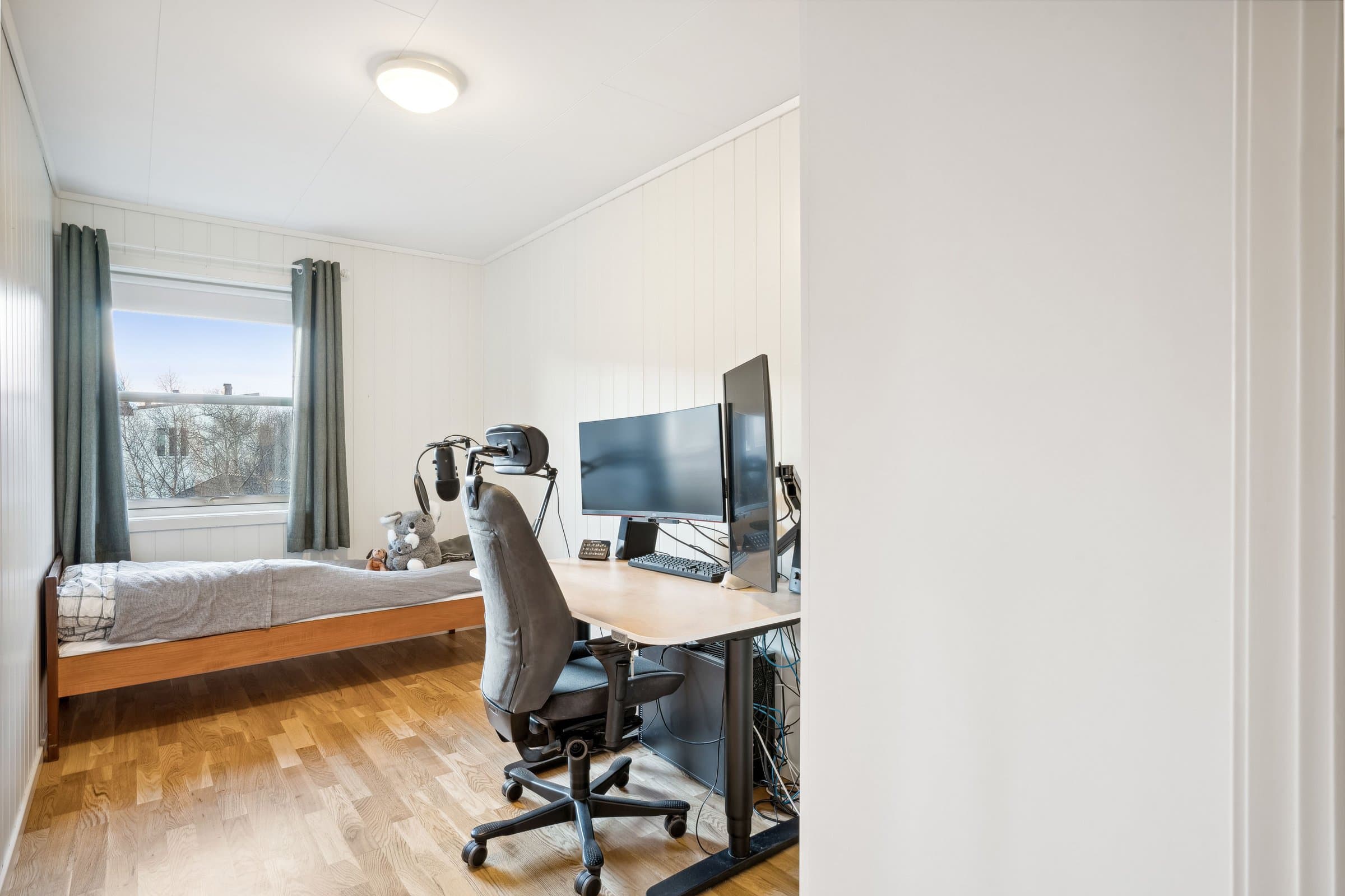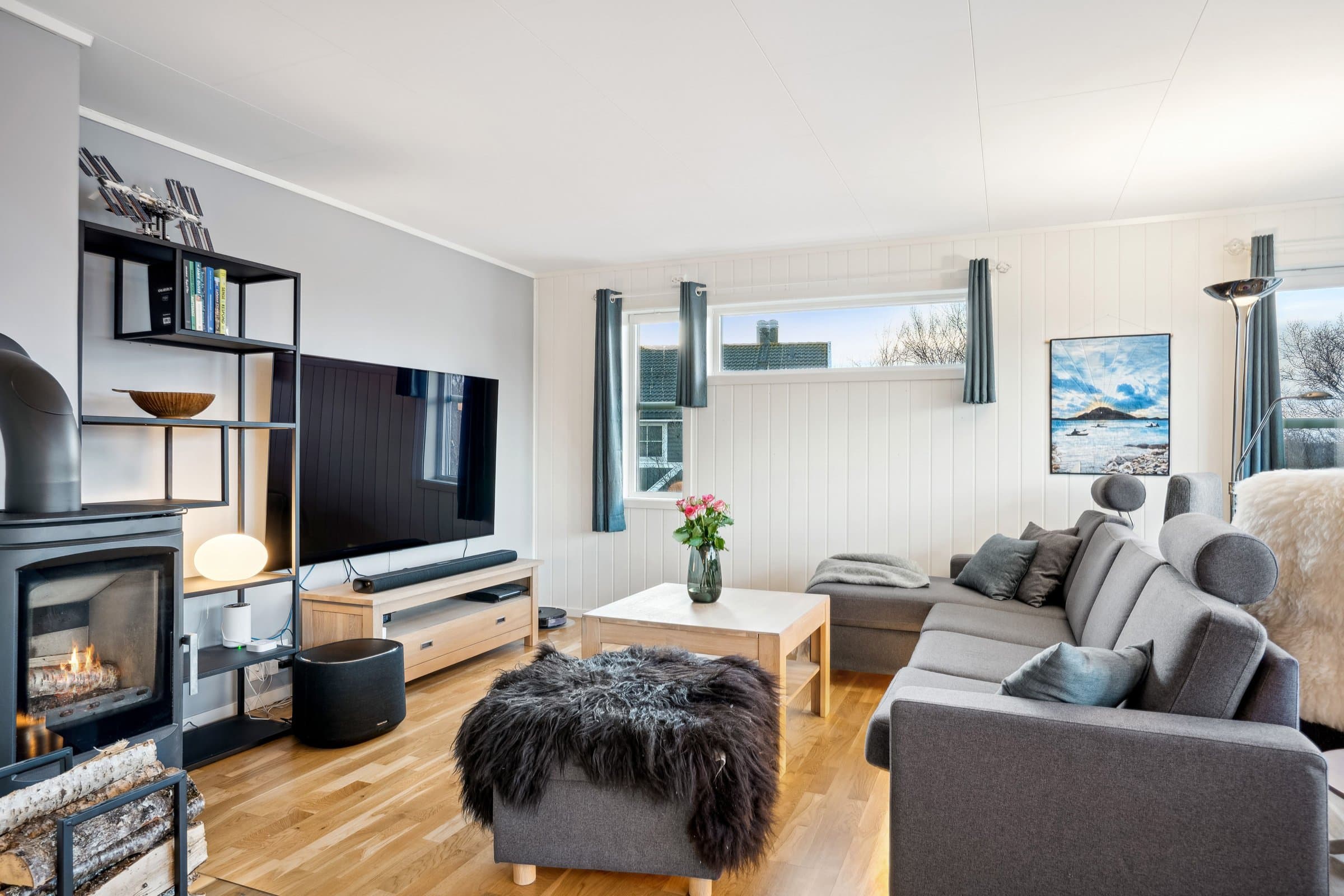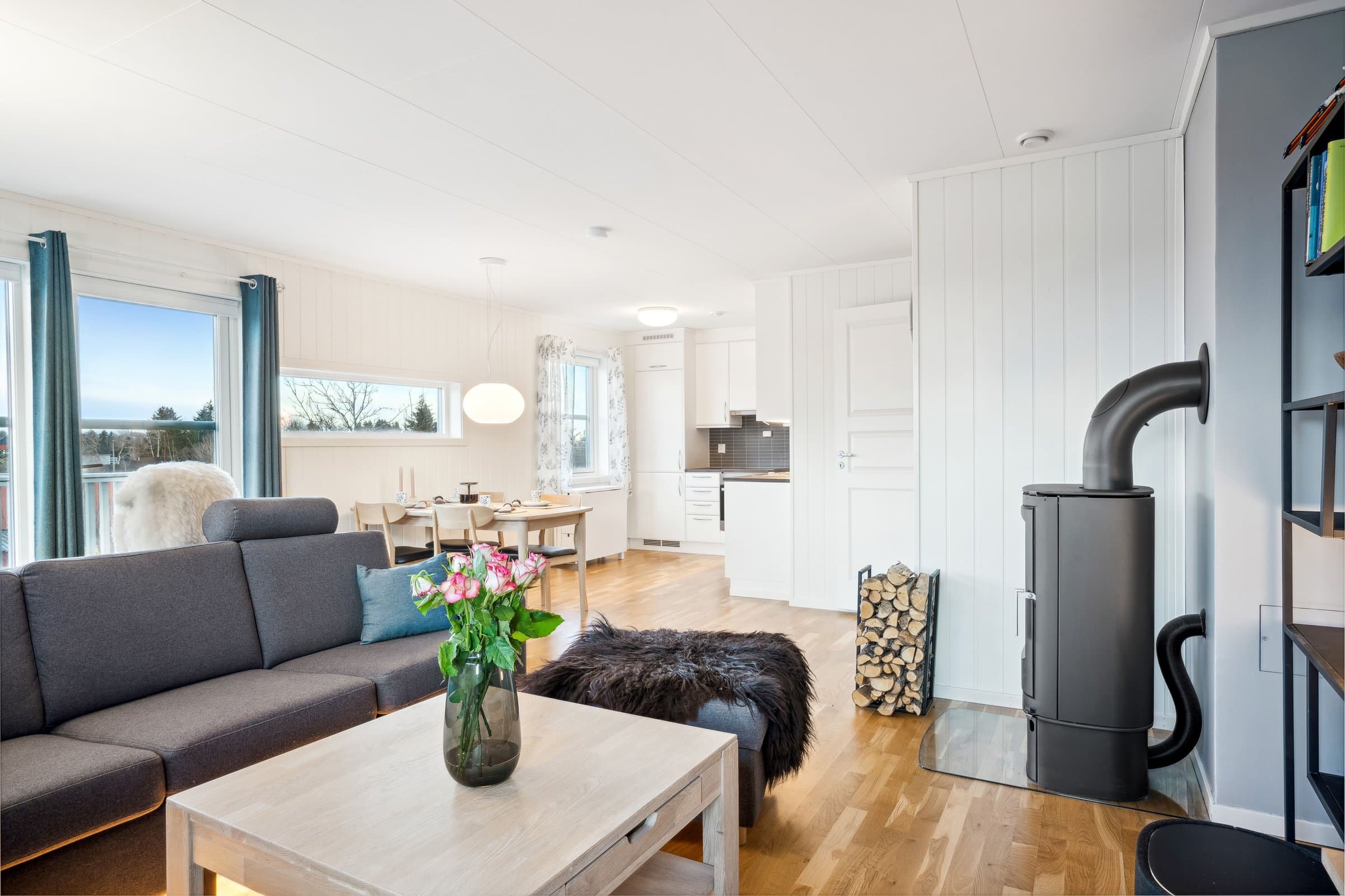 Sjarmerende del av horisontaldelt 2-mannsbolig som ligger i 2. etasje. Åpen løsning mellom stue og kjøkken, med rikelig lysinnslipp fra store vindusflater. Fra stuen er det utgang til en vestvendt balkong med gode solforhold på ettermiddag/kveld. Vedovn sørger for god oppvarming på når man ønsker litt ekstra kos.