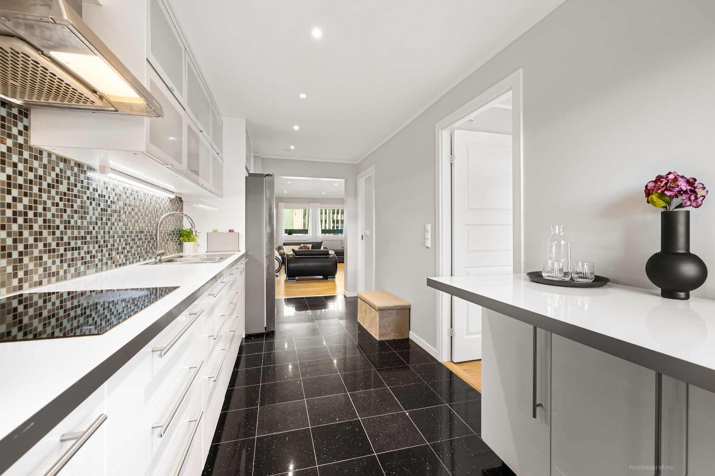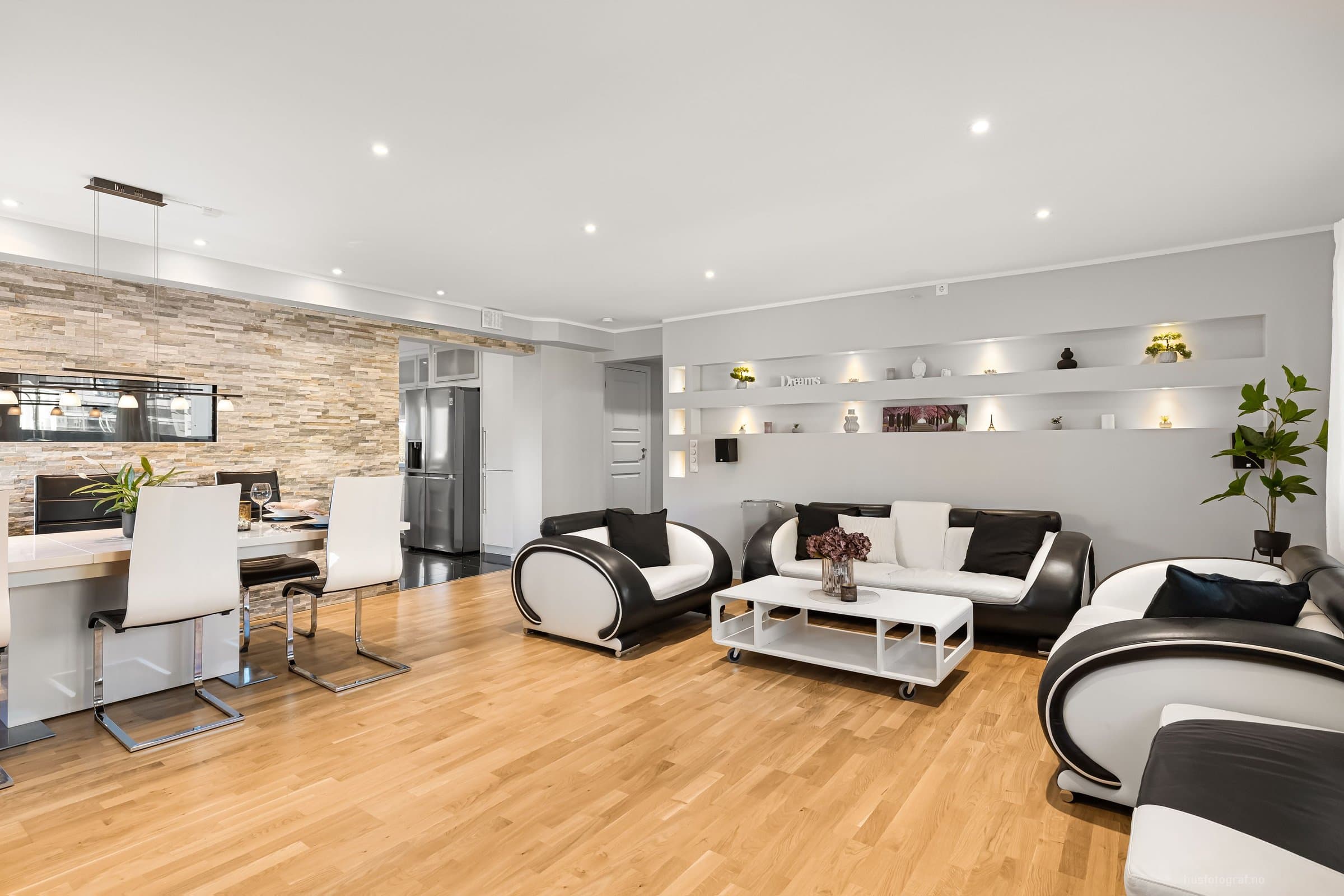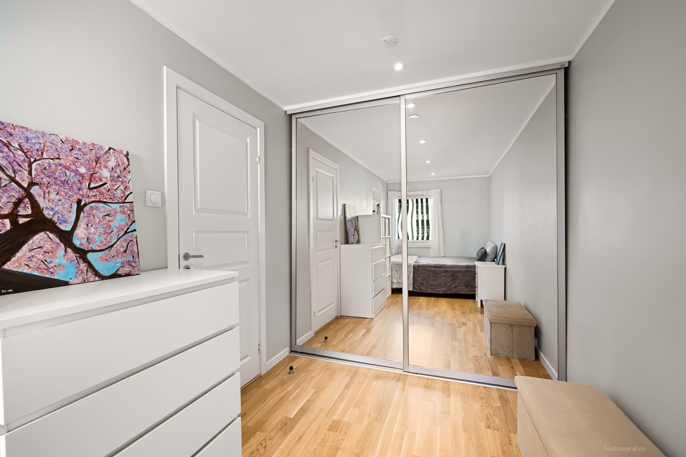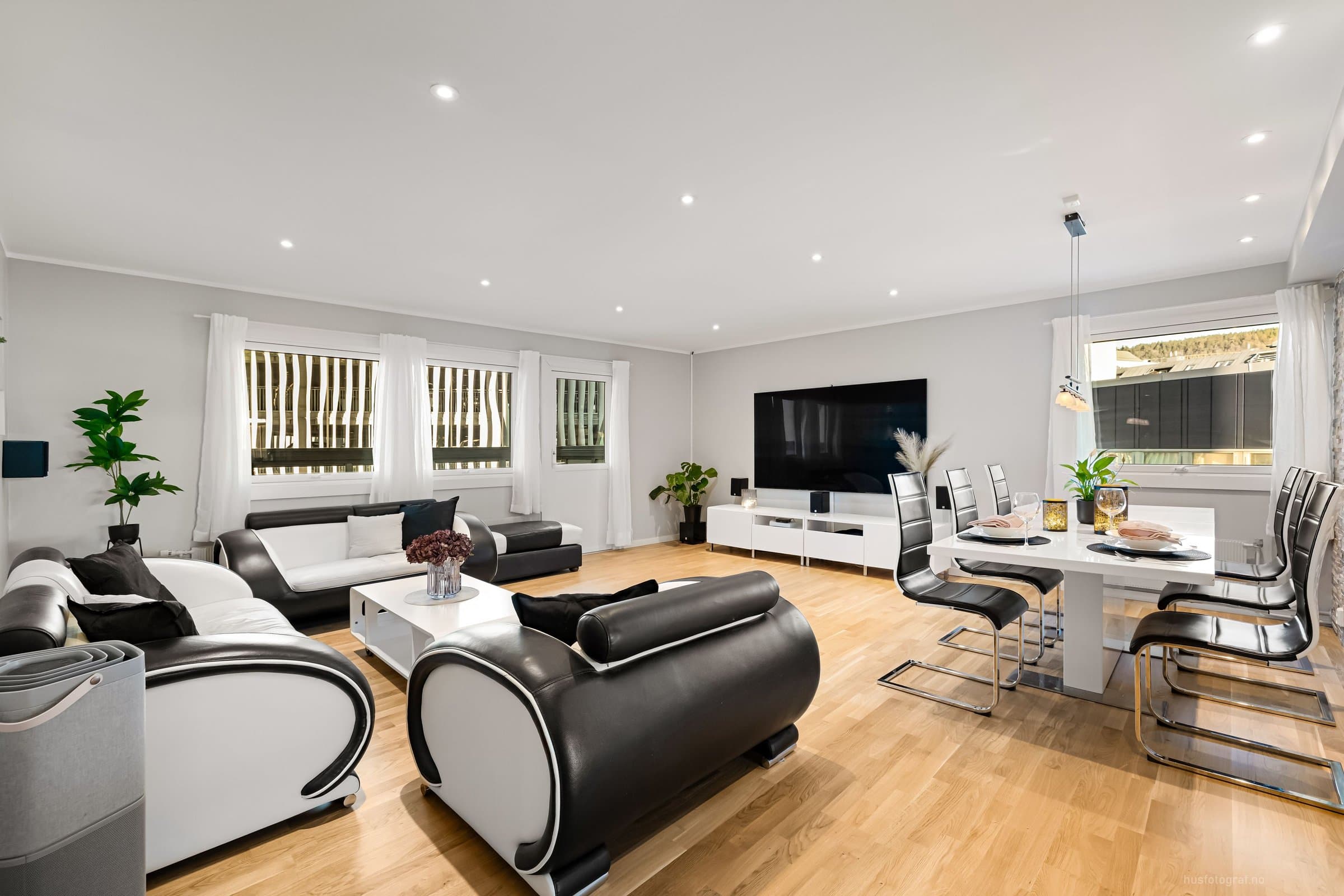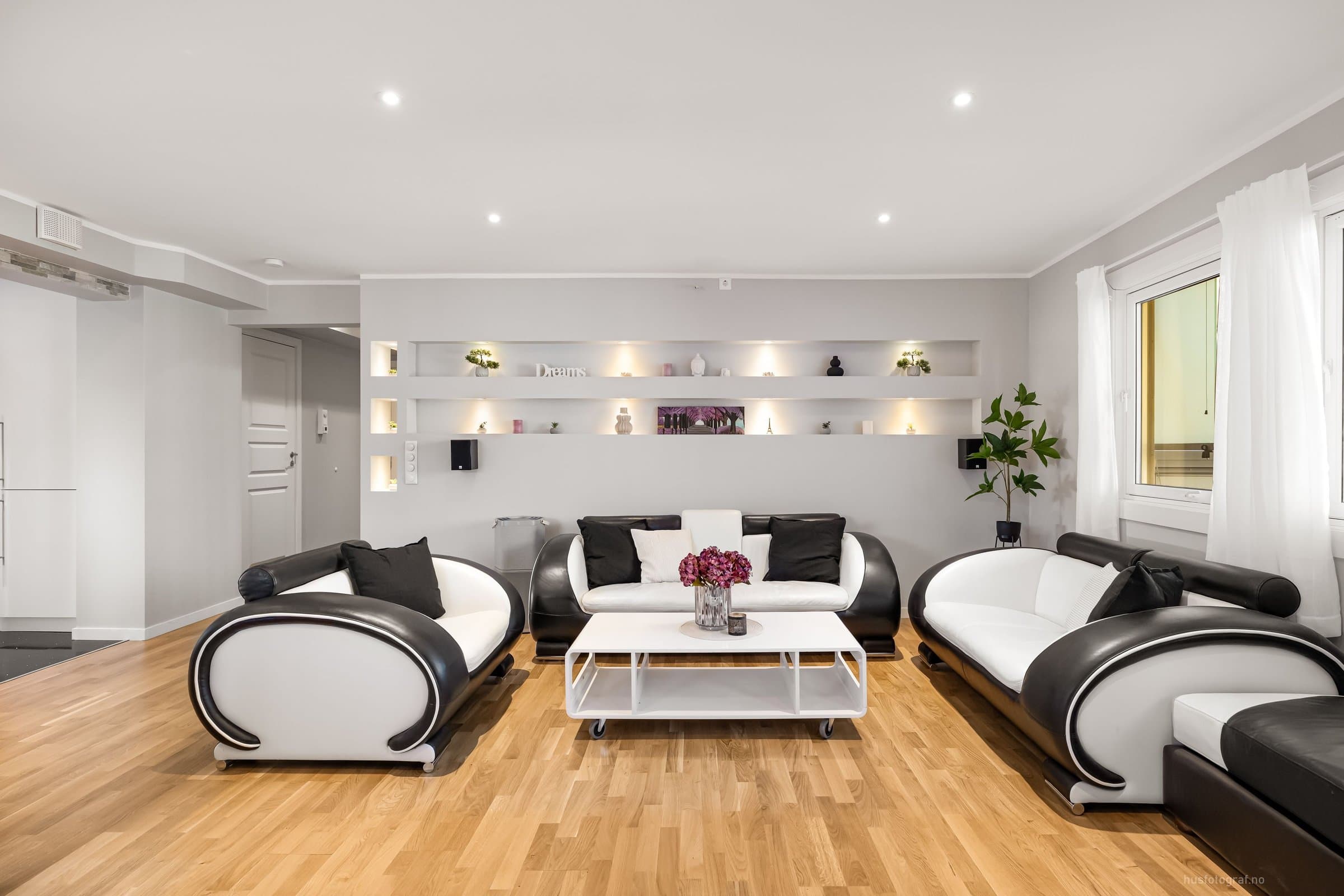Leiligheten ligger i 2.etasje og har adkomst via felles gang med trapp & heis. Bod: 1stk i kjelleren på ca 2m^2 Entre: - Gulv: varmekabel & fliser - 4x downlights m/dimmer - Skyvedørsskap m/speil. - Knaggrekke. - 3x "hyller" med downlights - Porttelefon m/ automatisk døråpner. Soverom 1: (ved entre) - Gulv: Parkett - 4x downlights m/dimmer - Skyvedørsskap m/speil - Hyller med glass i "kott" & lys. Bad: (Okt 2024 m/unntak) - Flislagt bad med varmekabel. - Speil - Toalett m/soft close - Stikk til hårføner/barbermaskin osv. - Stikk til eventuelt tørketrommel. - Dusjvegger - Takdusj (fra 2014) - Lys til speil (fra 2014) - 5x downlights m/dimmer (downlights fra 2014, dimmer/bryter fra 2024) - 2x bolleservanter, 2x vannkraner & skap. (fra 2014) Stue: - Gulv: parkett - Hyller med 8x downlights - 13x downlights m/dimmer - Taklampe - Steinvegg m elektrisk peis m/u varme. - Opplegg for 5-1 surround lyd. - Opplegg for prosjektor. Balkong: Innglassert balkong på ca 7m2. Kjøkken: - Gulv: fliser & varmekabel. - Kjøkken med integrerte hvitevarer. (oppvaskmaskin, mikro, stekeovn.) - 6x downlights m/dimmer. - Oso 200L vannbereder - Vaskemaskin. Soverom 2: - Gulv: parkett - Skyvedørsskap m/speil. - Hylle i vegg. - 4x downlights m/dimmer Soverom 3: - Gulv: parkett - Skyvedørsskap m/speil. - 4x downlights m/dimmer. Kjøleskap (mars. 24) & Tv 85' (okt. 23) kan følge med mot et tillegg.