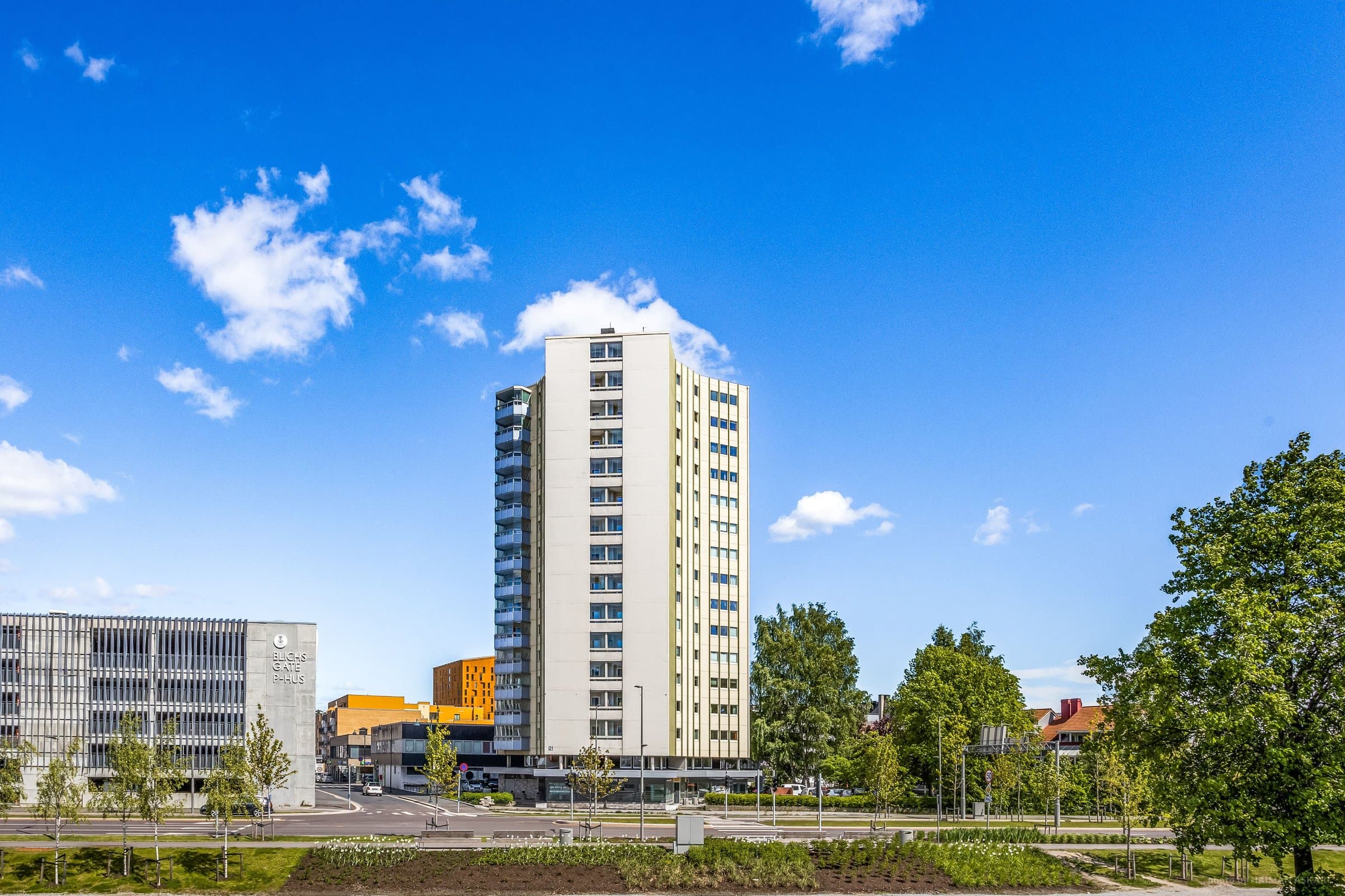 Sameiet har parkeringsplasser på baksiden av bygget, uten faste tildelte plasser. Her gjelder "første mann til mølla prinsippet". Det er mulig å leie parkeringsplass i Blichs gate P-hus. (nabobygg) Noen av beboerne leier parkeringsplass i kjelleren på Kiwi. (nabobygg) Ellers er det gateparkering etter kommunens bestemmelser.