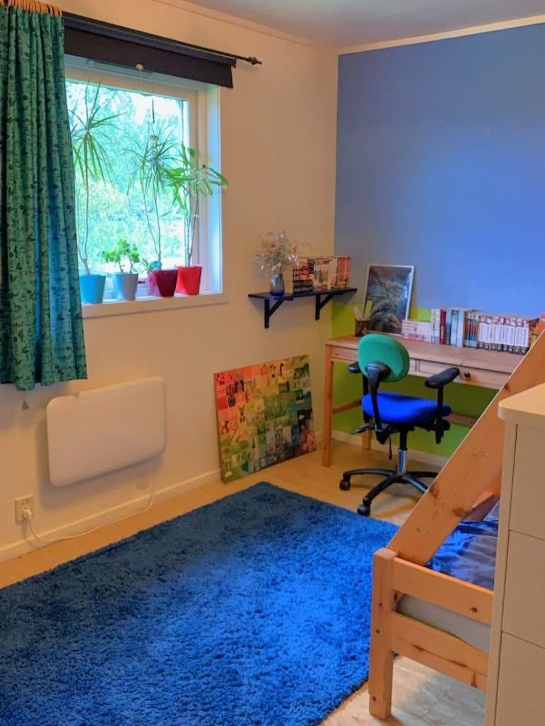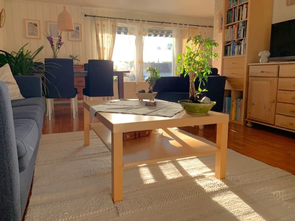 Innholdsrik og koselig 6-roms selveierleilighet med veldig gode lysforhold og stor flat hage som er opparbeidet med bærbusker og krydderhage. Terrassen er sørwestvendt og byr på herlige sol- og varmeforhold i alle sesonger. Svært barnevennlig. Leiligheten har godt vedlikehold og består av: entré, hall, bad, stue og fem soverom hvorav to på loftet med god takhøyde. Mulighet for å innrede kjelleretasje til separat leilighet med stue, bad, bod og to soverom. Kjellergulv er innredet med gulvvarme med ikke ferdig bygd.