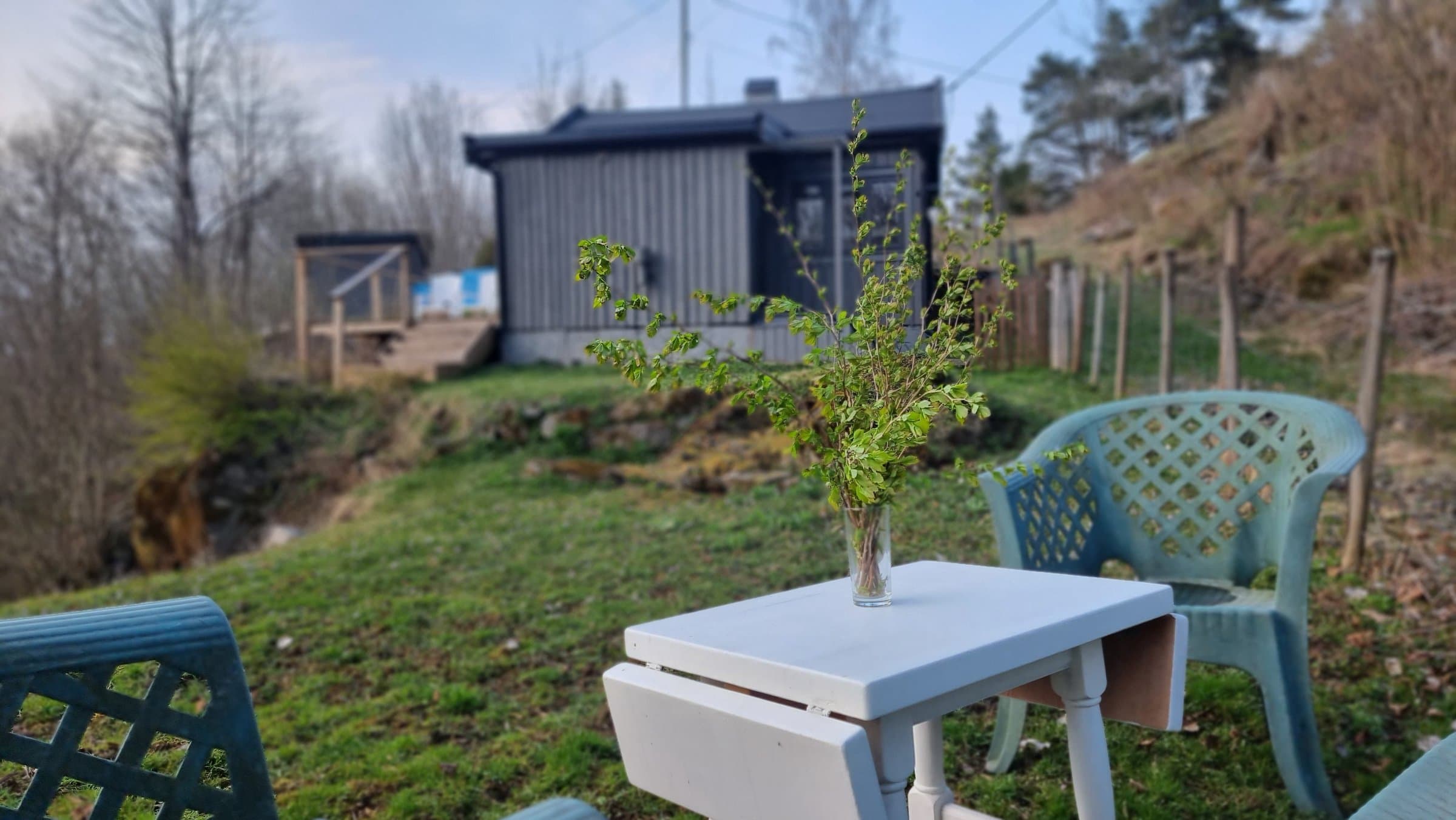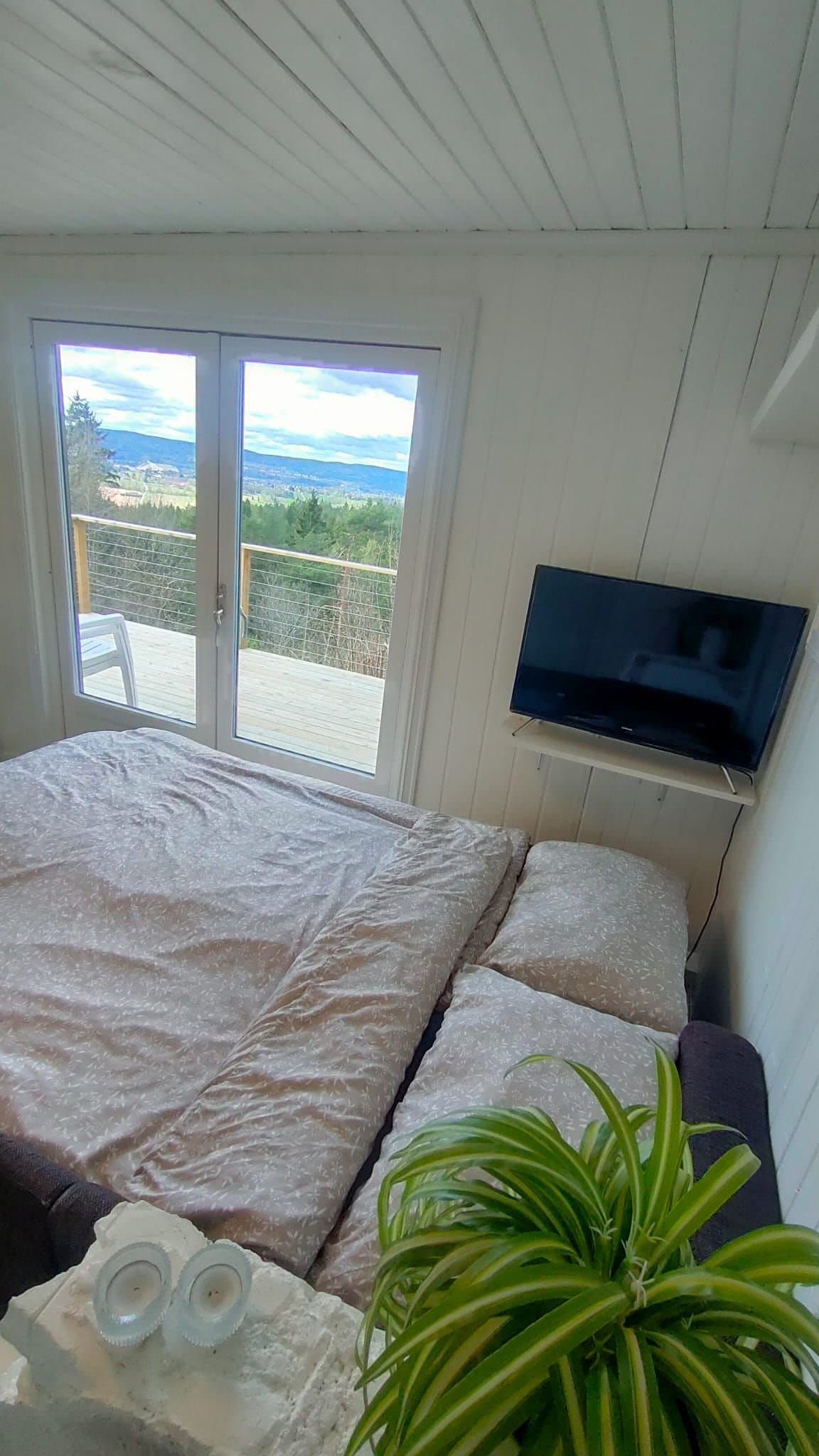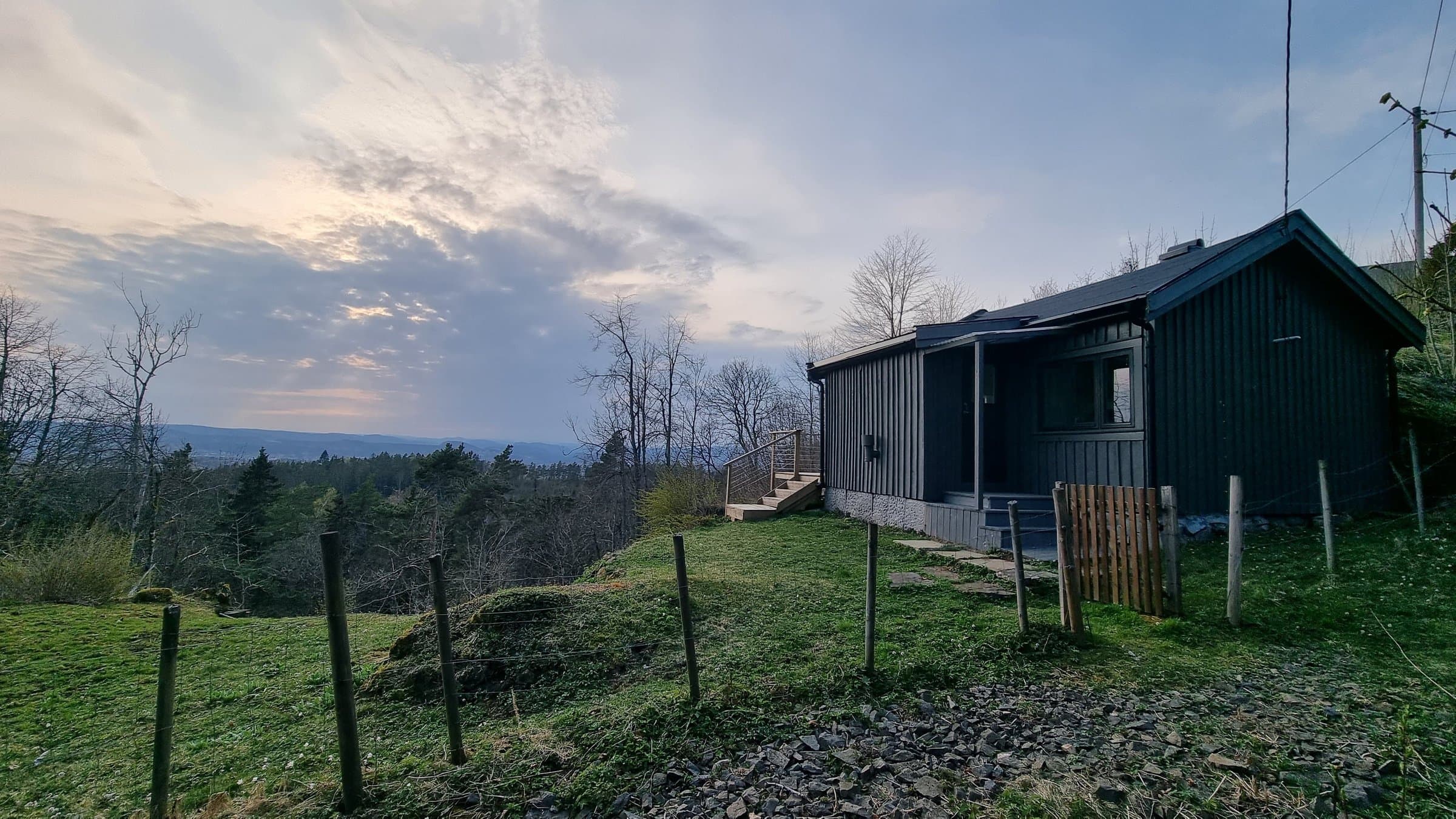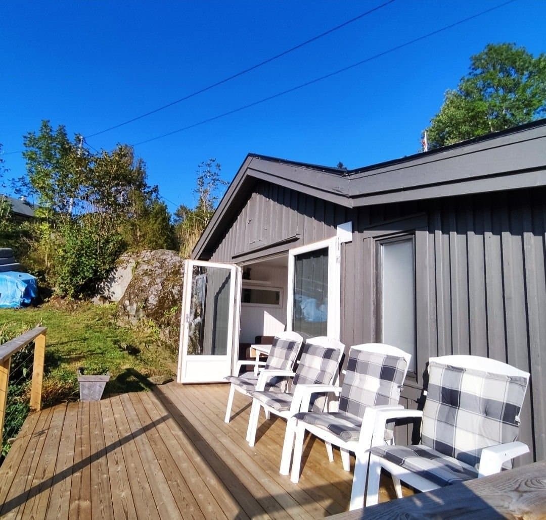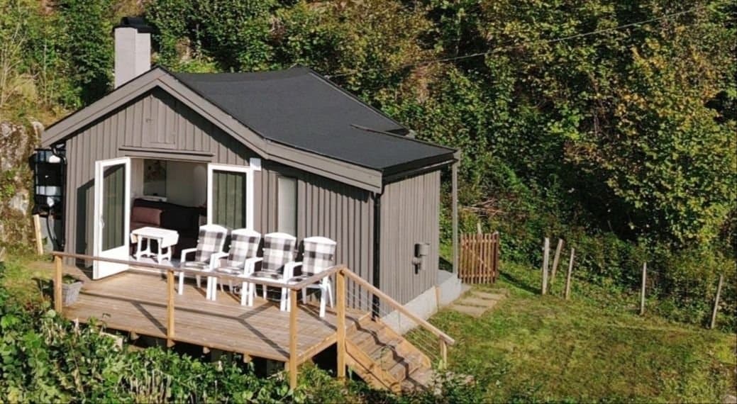 Idyllisk fritidsbolig med flott utsikt og gode solforhold! Nær turterreng. Innlagt strøm, toalett, dusjløsning, møblert.