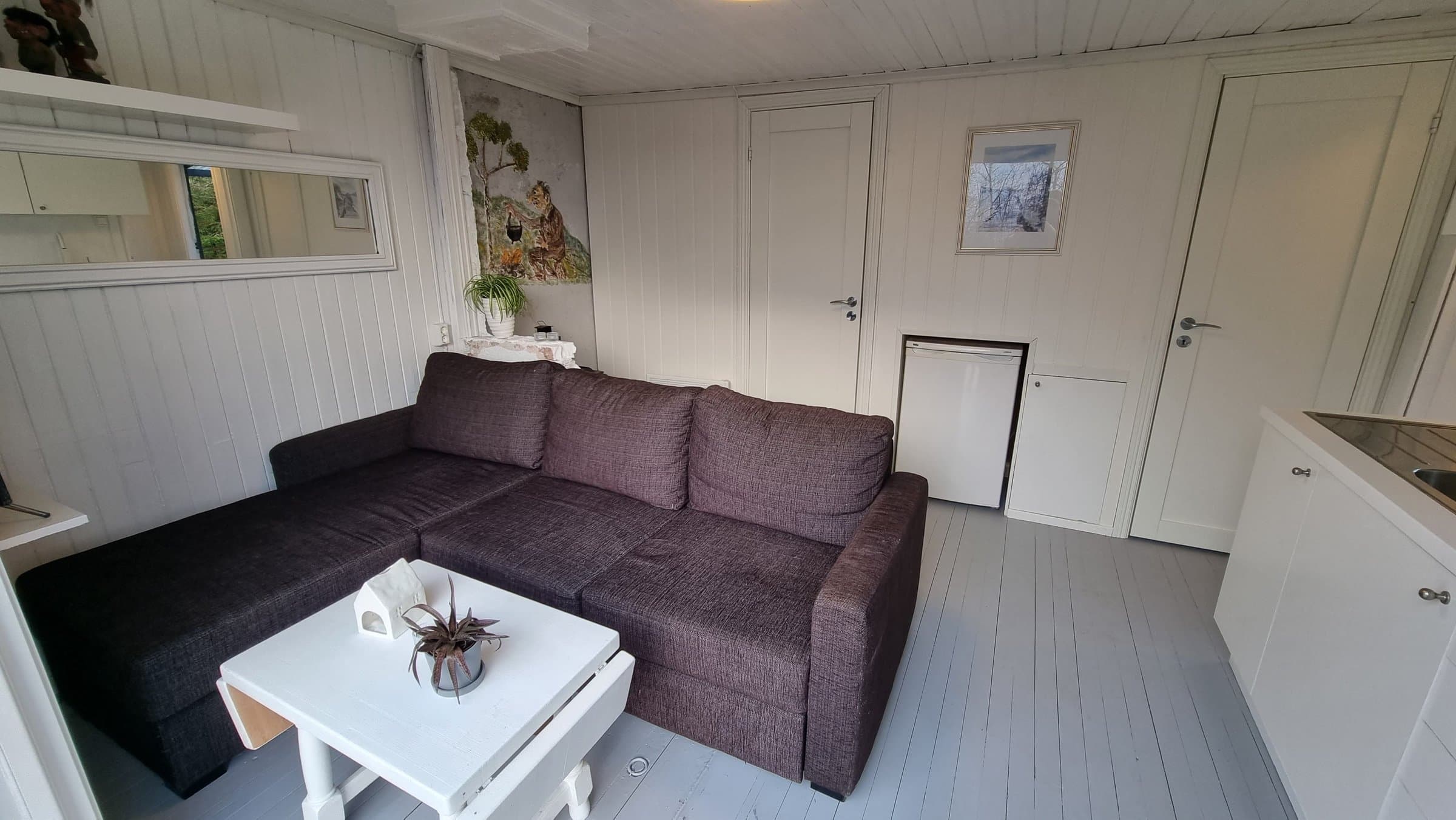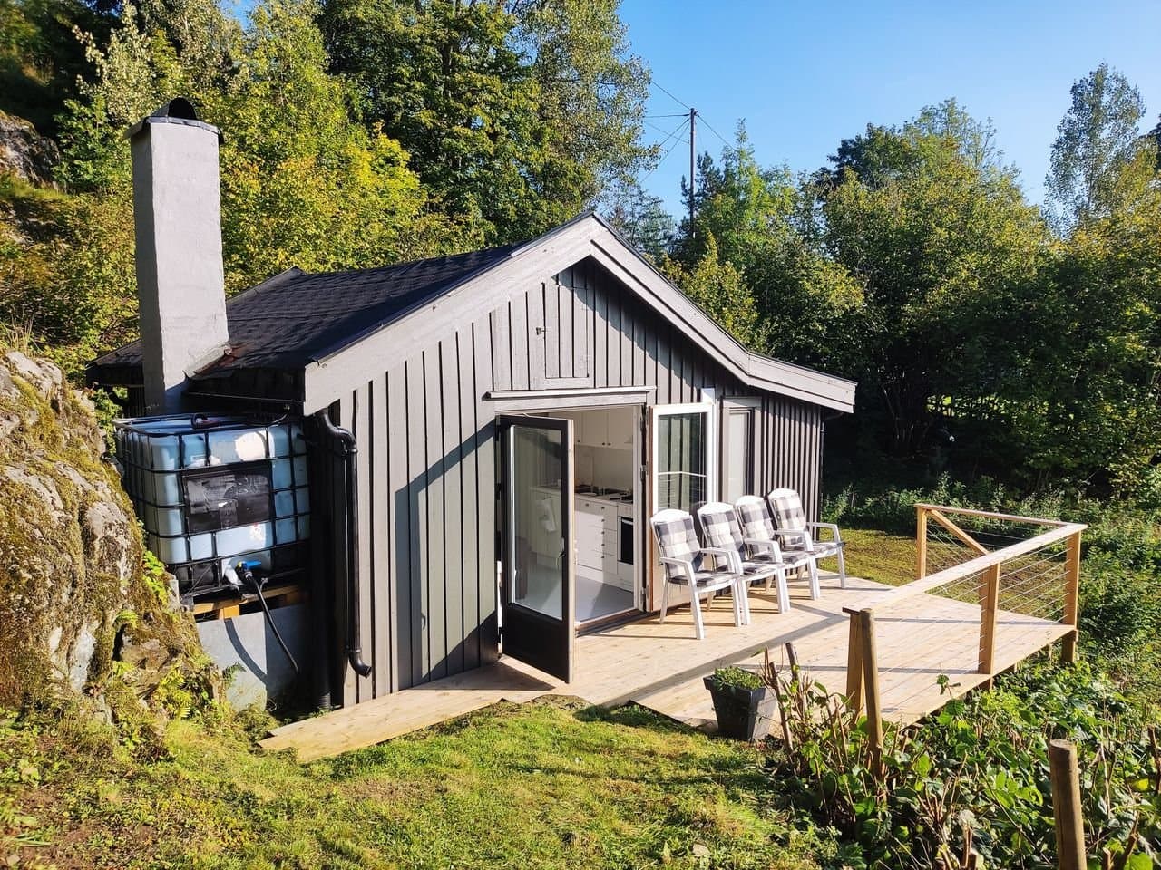 Koselig, usjenert og idyllisk fritidsbolig på ca 26 kvm som inneholder: kjøkken, stue, bad, 2 soverom, ca 15 kvm veranda og hageområde. Naturtomt. Det er innlagt strøm i hytta. Samt etablert vanntank på 1000 liter, som fylles raskt opp fra regnvann eller medbrakt vann. Her får du mange fine naturopplevelser med naturstier, bærplukking, soppturer og fiskevann ikke så altfor langt unna. Dette er en hytte for deg som liker å være omkranset av natur og befinne deg i et svært rolig og idyllisk område, uten å være for langt unna byen. Eller kunne du tenke deg og kjøpe hytta for og leie ut og, så er det folk som har lagt igjen navn og nummer som kunne tenke seg leie hytta også. Inkluderer parkeringplass ca: 150 meter unna. Hytta ble bygget i 1950, og i år har kjøkken og bad blitt oppgradert med bl.a forbrenningstoalett fra Cinderella. Og regnvanns system via gjennomstrømningsvarmer, med både dusje og oppvaskmuligheter. Legger man varmetråd rundt dette, og isolerer tanken, kan man bruke systemet om vinteren også. Monterer du solceller i tillegg, så har du en hytte som er 'Off grid' for de som ønsker det. Massive 1 speils dører, veranda og hele strømanlegget er også nytt fra 2024. Taket ble fornyet i 2018. Sengeplasser for 6 personer, fordelt på 2 soverom og en sovesofa. Det ene soverommet mangler vindu, så det bør vurderes og settes inn, om folk skal sove der. Følger også med en bod med ved og diverse hageredskaper. Festeavgift er ca 810 kr pr år. Parkering: ca 600 kr pr år. Hytta ligger i Skien ca. 6.5 km unna sentrum. Med bil tar det ca 12 min og kjøre til Porsgrunn sentrum og det samme til Skien sentrum. Om dere er interessert i mer informasjon eller komme på visning, er dere velkomne til å ta kontakt! Send gjerne sms om hva det gjelder på 40454874, eller melding her på Finn. Så tar jeg kontakt så fort det lar seg gjøre. Husk og meld deg på om du ønsker visning! Om ønskelig, er det mulig å tegne boligkjøperforsirking for kr 14.700,- Faciliteter: Strøm, vannsystem, ildsted, parkeringsplass, møblert