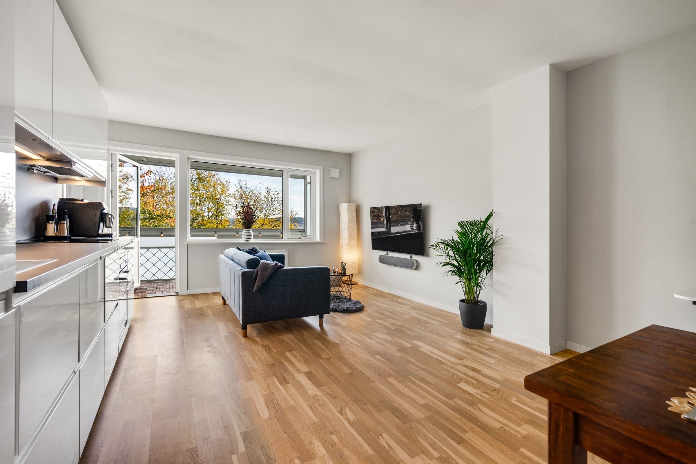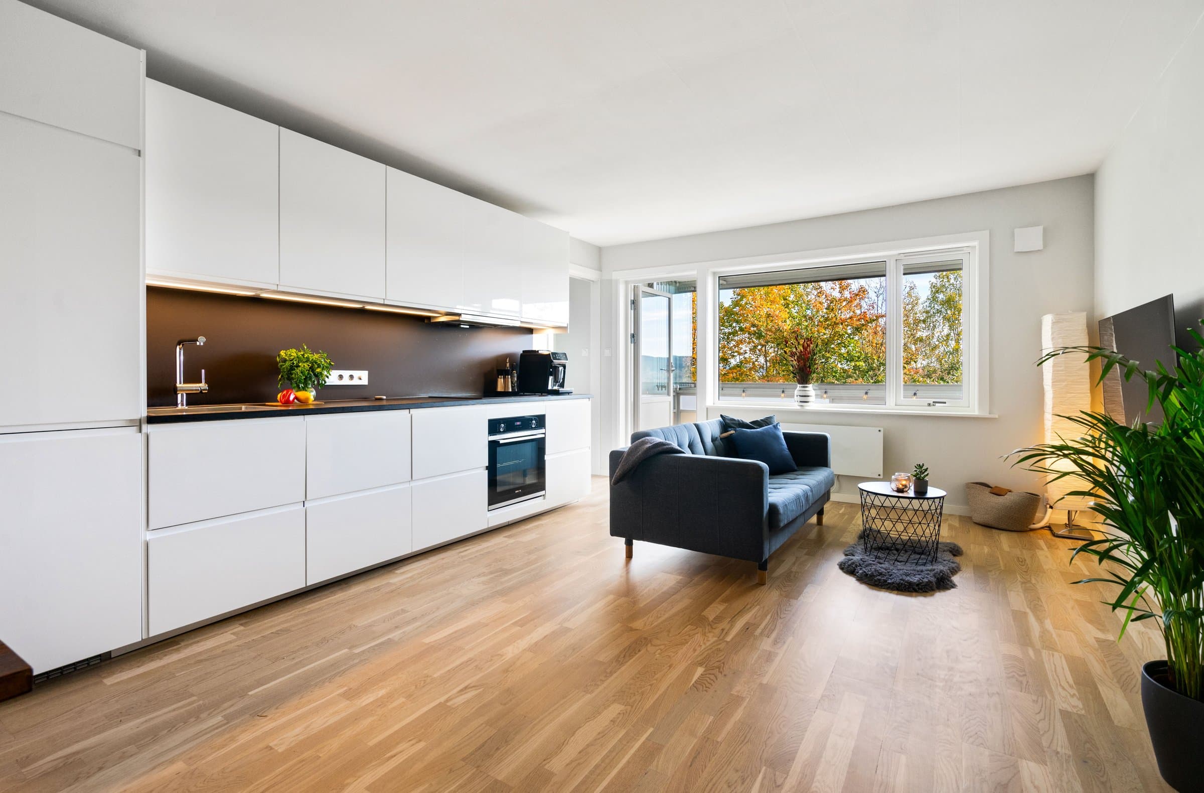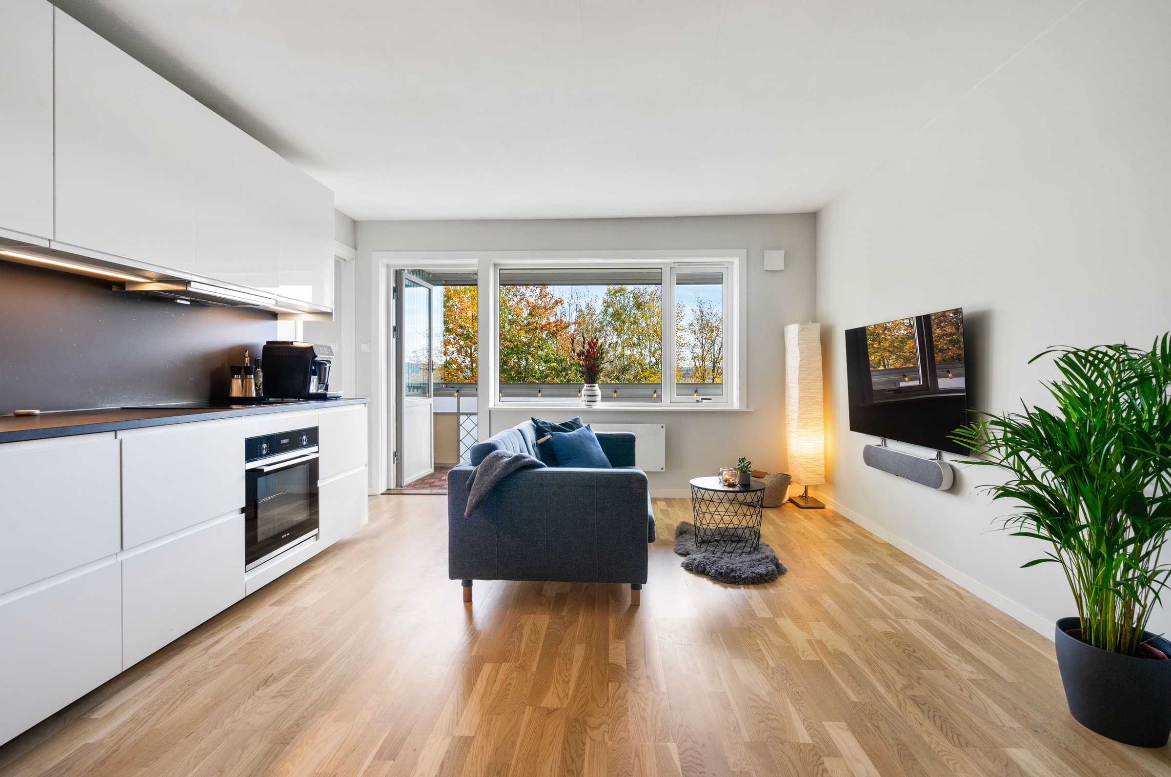 Lys og moderne 2-roms selveierleilighet i Kolås Boligsameie på Rødtvet selges, nyoppusset i 2021, med høy standard og smarte løsninger. Boligen har nye, slette overflater, parkettgulv og et stilrent høyglans IKEA-kjøkken med integrerte hvitevarer som kjøl/frys, oppvaskmaskin, induksjonstopp og komfyr. Boligen består av entré, åpen stue/kjøkken-løsning, soverom og et delikat flislagt bad med varmekabler og regnfallsdusj. Det elektriske anlegget er også nytt i fra 2021, og det er lagt opp rør-i-rør system for kjøkken og bad i fra samme tid. I sameiet er det garasje/parkering etter venteliste, men plass bør være tilgjengelig etter kort tid. Gjesteparkeringsplasser, treningsrom og fellesvaskeri er tilgjengelig i sameiet. Bod i kjeller medfølger leiligheten. Leiligheten har også en flott innglasset balkong på 8 kvm. med utsyn og ingen gjenboere. Balkongen er en fin utvidelse av leiligheten på både sommer- og vinterstid. Kolås Boligsameie er et veletablert sameie med vaktmestertjenester som bevarer pene uteområder samt. snøbrøyting på vinterstid. Boligen er en selveierleilighet og dermed også et flott utleieobjekt. Det er nye Mill WiFi-panelovner som kan styres via app, der du kan programmere ønsket varmeinnstillinger. Leiligheten har også et pipeløp som nylig ble renset, noe som gir mulighet for å installere en koselig peisovn til rolige vinterkvelder. Stuen er tilrettelagt for vegghengt TV med skjulte kabler (HDMI-Kabler+Optisk), og det er stikkontakt plassert bak TV-en for TV/Lydplanke. Telia bredbånd er inkludert i fellesutgifter (grunnpakke), og både dekoder og modem ligger skjult i en praktisk kurv i hjørnet i stuen – dette kan medfølge ved salg. I stuen er det også plass til en hjemmekontorløsning. Det er ferdig lagt opp skjult nettverkskabel der i fra modem. Dette kan naturligvis fjernes dersom man ønsker en annen planløsning - Her er det mange muligheter for en pen og åpen spisestueplass. Det er også muligheter for overtakelse av sofa, spisebord- og stoler dersom man ønsker å beholde nåværende planløsning.