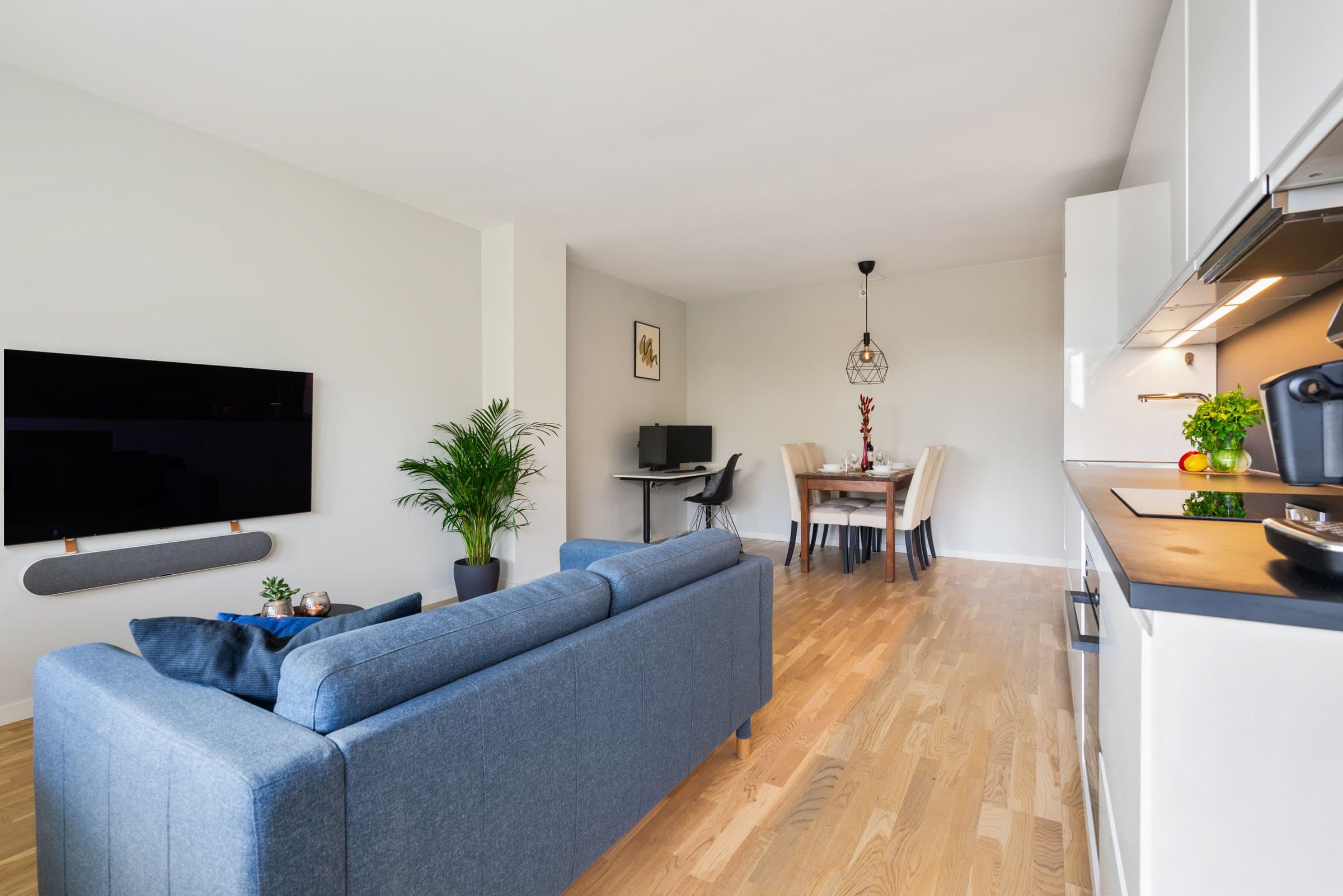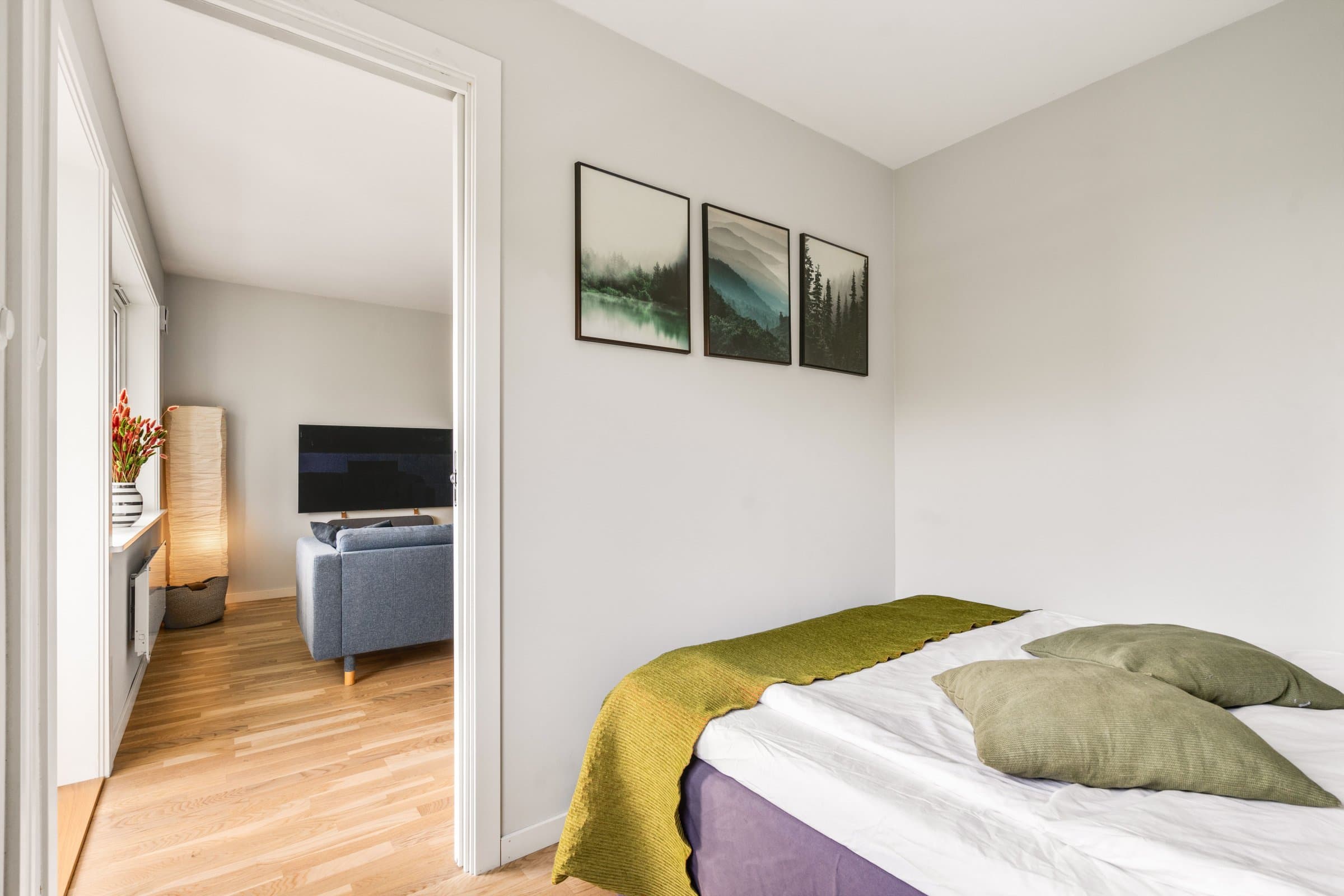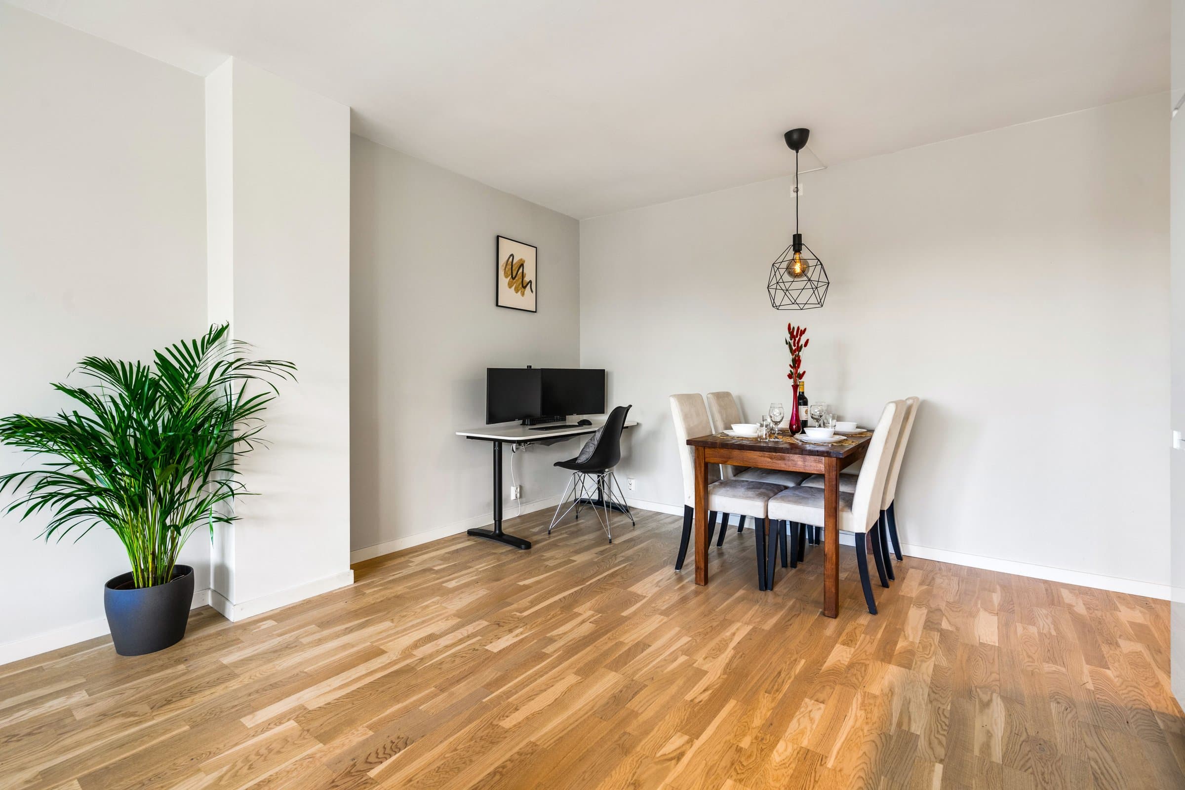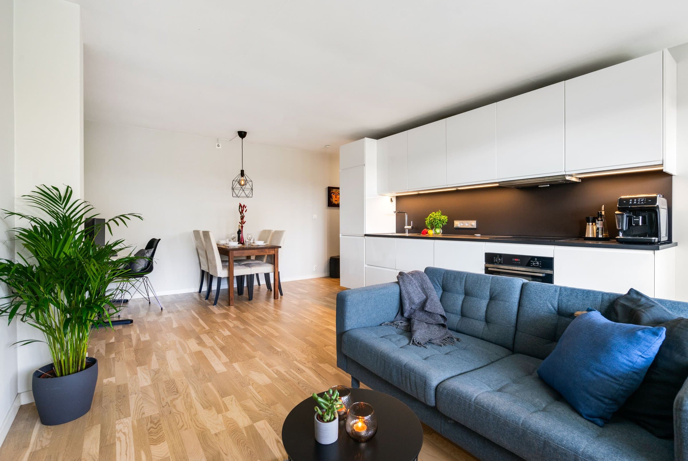 Lys og moderne 2-roms selveierleilighet i Kolås Boligsameie på Rødtvet selges, nyoppusset i 2021, med høy standard og smarte løsninger. Boligen har nye, slette overflater, parkettgulv og et stilrent høyglans IKEA-kjøkken med integrerte hvitevarer som kjøl/frys, oppvaskmaskin, induksjonstopp og komfyr. Boligen består av entré, åpen stue/kjøkken-løsning, soverom og et delikat flislagt bad med varmekabler og regnfallsdusj. Det elektriske anlegget er også nytt i fra 2021, og det er lagt opp rør-i-rør system for kjøkken og bad i fra samme tid. I sameiet er det garasje/parkering etter venteliste, men plass bør være tilgjengelig etter kort tid. Gjesteparkeringsplasser, treningsrom og fellesvaskeri er tilgjengelig i sameiet. Bod i kjeller medfølger leiligheten. Leiligheten har også en flott innglasset balkong på 8 kvm. med utsyn og ingen gjenboere. Balkongen er en fin utvidelse av leiligheten på både sommer- og vinterstid. Kolås Boligsameie er et veletablert sameie med vaktmestertjenester som bevarer pene uteområder samt. snøbrøyting på vinterstid. Boligen er en selveierleilighet og dermed også et flott utleieobjekt. Det er nye Mill WiFi-panelovner som kan styres via app, der du kan programmere ønsket varmeinnstillinger. Leiligheten har også et pipeløp som nylig ble renset, noe som gir mulighet for å installere en koselig peisovn til rolige vinterkvelder. Stuen er tilrettelagt for vegghengt TV med skjulte kabler (HDMI-Kabler+Optisk), og det er stikkontakt plassert bak TV-en for TV/Lydplanke. Telia bredbånd er inkludert i fellesutgifter (grunnpakke), og både dekoder og modem ligger skjult i en praktisk kurv i hjørnet i stuen – dette kan medfølge ved salg. I stuen er det også plass til en hjemmekontorløsning. Det er ferdig lagt opp skjult nettverkskabel der i fra modem. Dette kan naturligvis fjernes dersom man ønsker en annen planløsning - Her er det mange muligheter for en pen og åpen spisestueplass. Det er også muligheter for overtakelse av sofa, spisebord- og stoler dersom man ønsker å beholde nåværende planløsning.