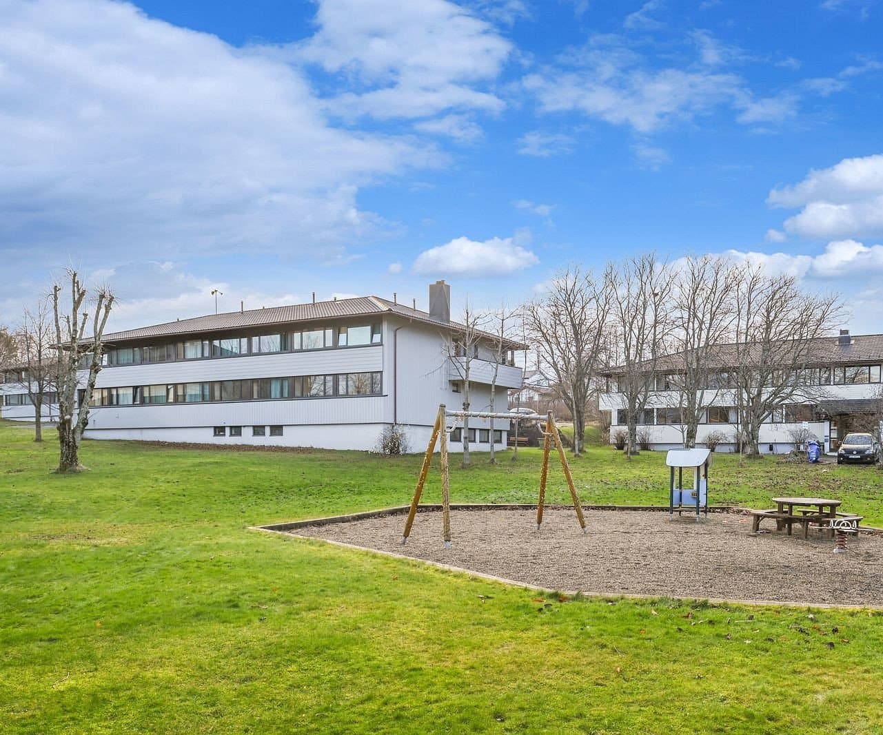 Leilighetsbygg oppført i 2 etasjer over kjeller. Grunnmur er oppført av betong og vegger og etasjeskiller av tre og betong. Utvendig kledd med trepanel. Taket er i valmet utførelse og tekket med profilerte metallplater. Vinduer av 2-lags glass.