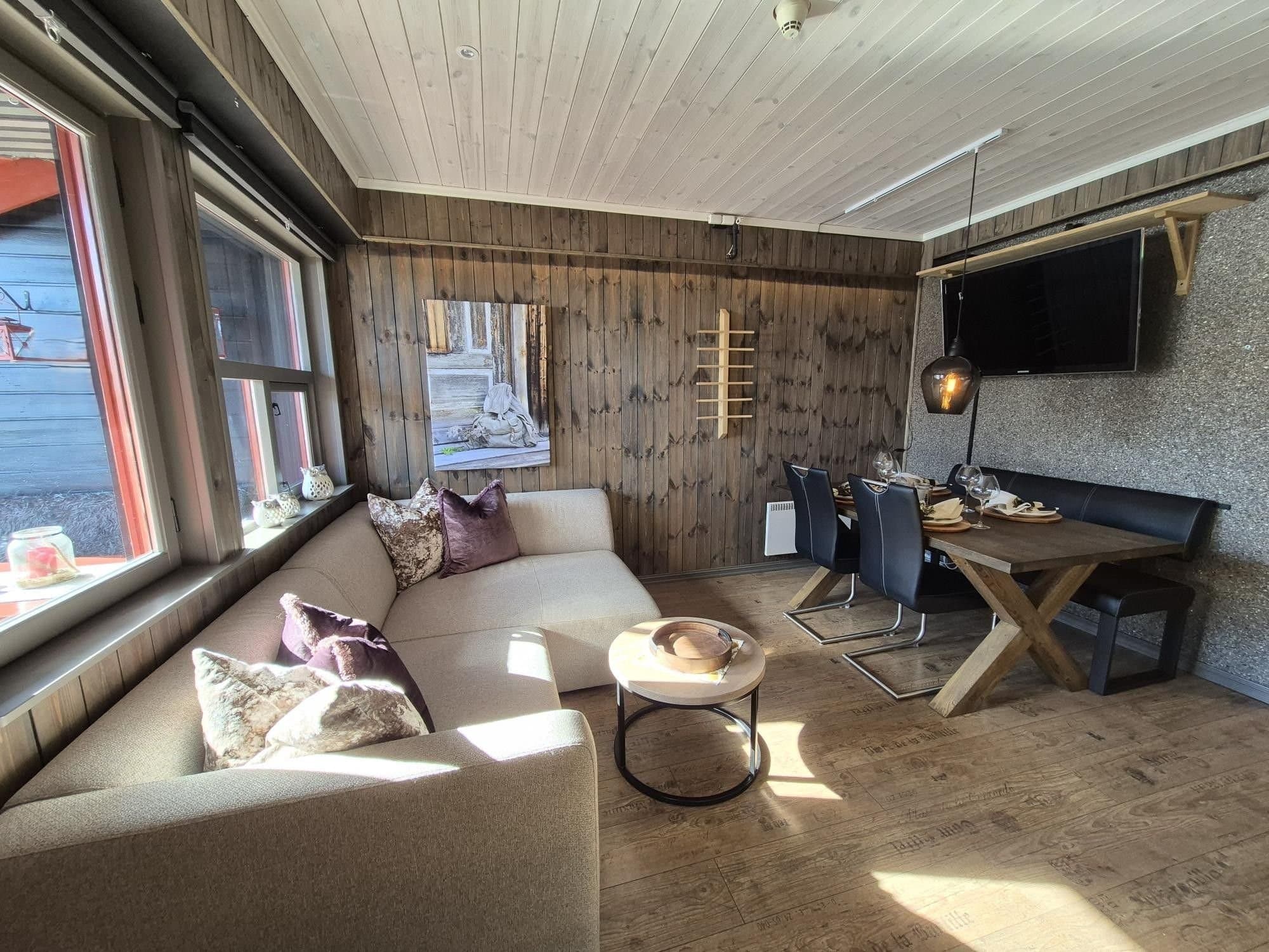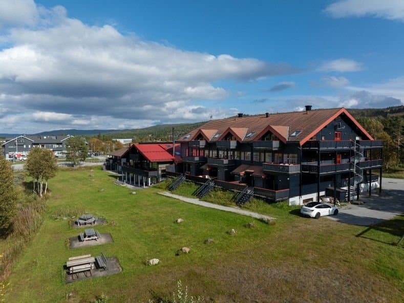 Gjennomført og påkostet leilighet. Leiligheten ligger i høy første etasje med adkomst via terrassen. Leiligheten inneholder åpen stue- og kjøkkenløsning med oppvaskmaskin, stekeovn/induksjon koketopp, sovealkove med familiekøye, overkøye 90cm, underkøye 140cm, bad/wc og vindfang. Med sovesofa i stuen, slik selger har i dag, har man 5 liggeplasser. Leiligheten har gjennomgående gode detaljer. Veggene har kombinasjon av panel og tapeter (Interiørhuset Alvøen). Soverommet har velinnredet garderobeskap med Amiga speil skyvedører. Badet er totalrenovert med ny sluk og nye varmekabler i 2022. Dusjvegger, armarturer i dusj og servant er av høy kvalitet. Stor terrasse med sol hele dagen. Terrassen er delvis overbygget over inngangsparti og har to uttrekk levegger, bord og sittebenker følger med. Det er privat sportsbod på ca 8kvm i felles bod anlegg i underetasjen. Her er plass til utstyr som ski, spark, pulk, sykler m.m. Sameiet disponerer felles smørebod og vaskerom med vaskemaskiner og tørketromler. Sameiet er veldrevet og har et trivelig bomiljø. Kort vei til sentrum, matbutikker, restauranter, turveier og skispor. Gratis skibuss stopper ved sameiet. Det er godt med parkeringsplasser på felles parkering ute, både langs bygget på sør og øst for bygget. Leiligheten har vært eiet av selger siden 2015 og ikke vært utleid. Leiligheten selges delvis møblert med blant annet seng, TV, skap og hyller i bod.