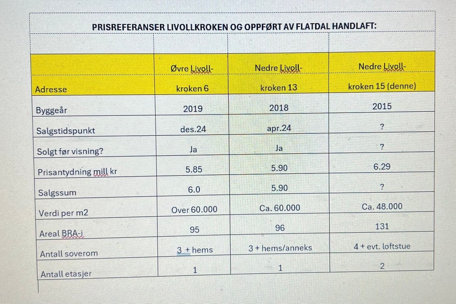 Prisantydning / Prisreferanser - Adresse Livollkroken og oppført av Flatdal Handlaft