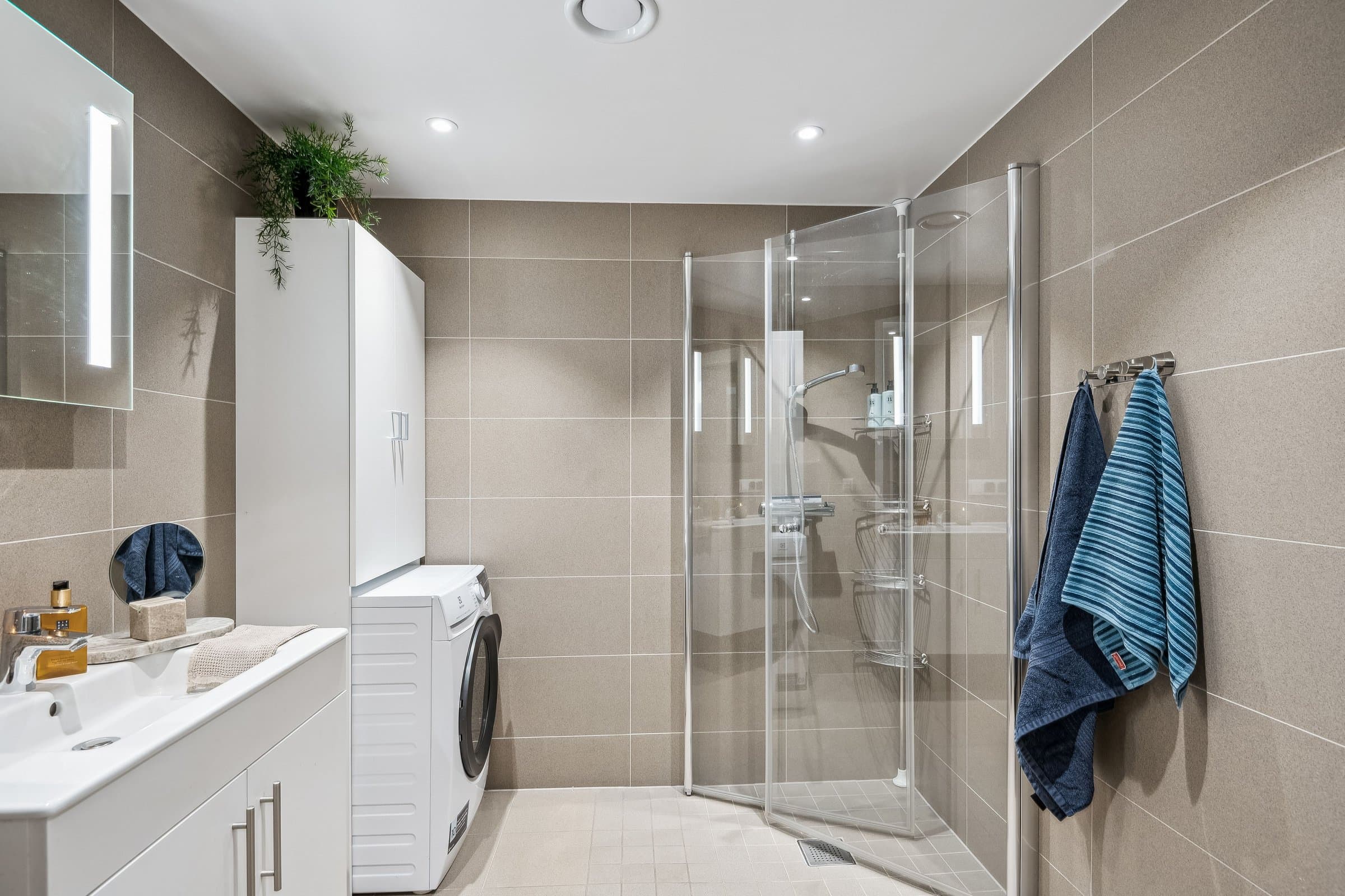 Det er nøkkelfri inngang til blokka - garasjen og boden i garasjeanlegget, det medfølger 4 brikker og flere kan bestilles via styret i sameiet. Hvis man ønsker så kan det abonneres på automatisk portåpning (Skiltgjenkjenning) hos Parqio for kr. 29 per mnd, denne tilgangen og prisen gjelder for 2 biler. Det vil uansett i tillegg bli tildelt en app på telefonene for fjernåpning av garasjeporten. Det er som nevnt montert fjernstyrt utvendig screen` på stort stuevindu og på terrasseåpning som går helt ned til gulvet, sistnevnte er gjort for blant annet at terrassen også skal kunne brukes som et opphold/bruksrom om vinteren (Da vil den være snøfri.) Kommunale Avgifter er betalt frem til tom Mars 2026.
