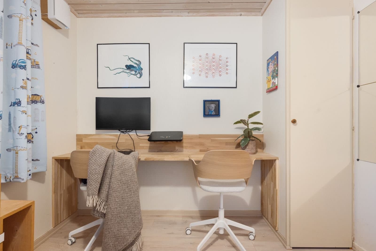 Vi benytter tre rom som soverom (to er godkjent) og tre rom som bad/WC-rom. Det er mulig å lage et soverom i stuen også. Vi har gjort mye oppussing de siste årene, og oppgradert med et bad. Flere parkeringsmuligheter i området. Det er lademuligheter bak boligen i dag. Eier disponerer i dag en garasje. Den følger vanligvis med salget, såfremt styret ikke har noen på venteliste.