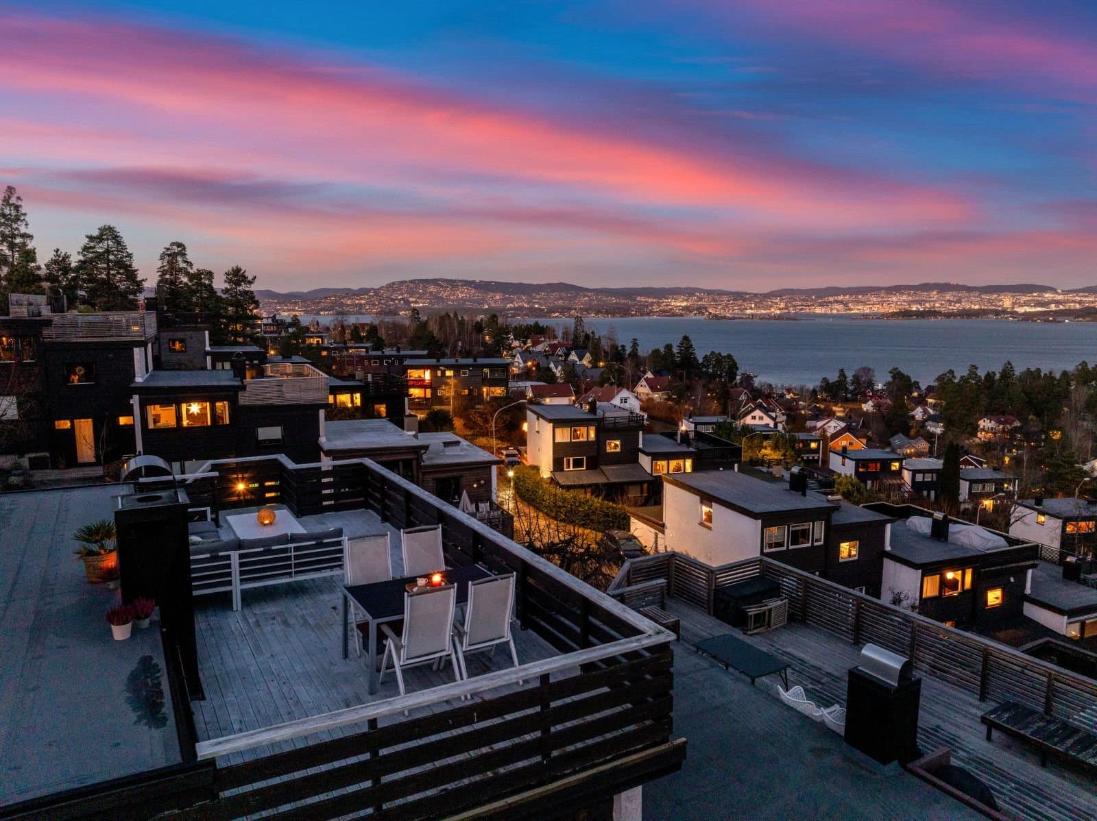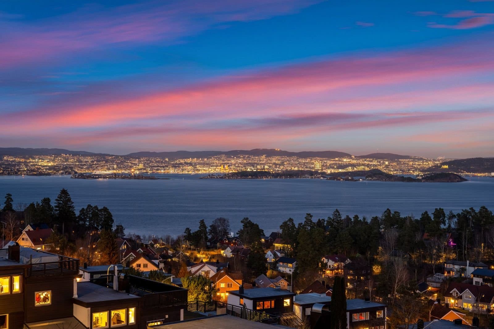 Spektakulær utsikt over indre Oslofjord fra egen takterrasse og fra stue/kjøkken. Kort vei til Nesoddbåten og videre til Aker brygge (23 minutter med båten). Butikker, skoler, skiløyper, lekeplasser, fotballbaner, idrettshall m.m. i nærheten.