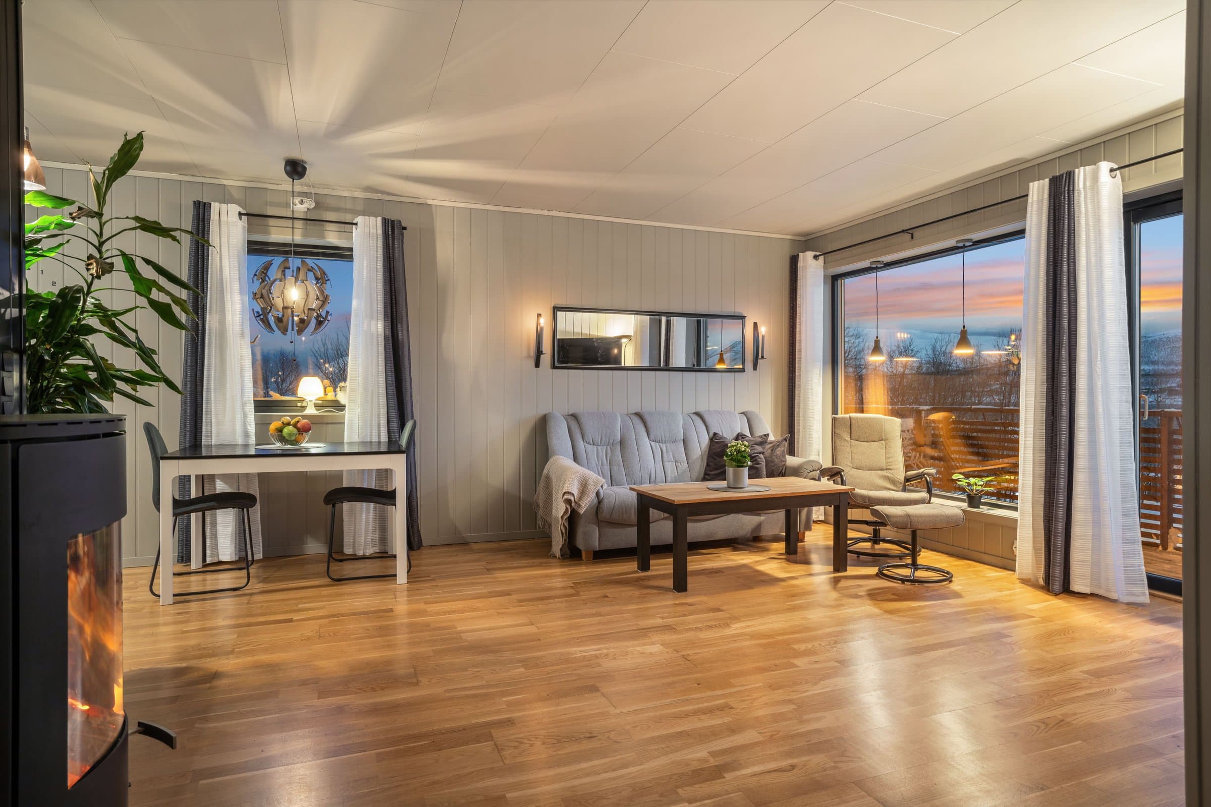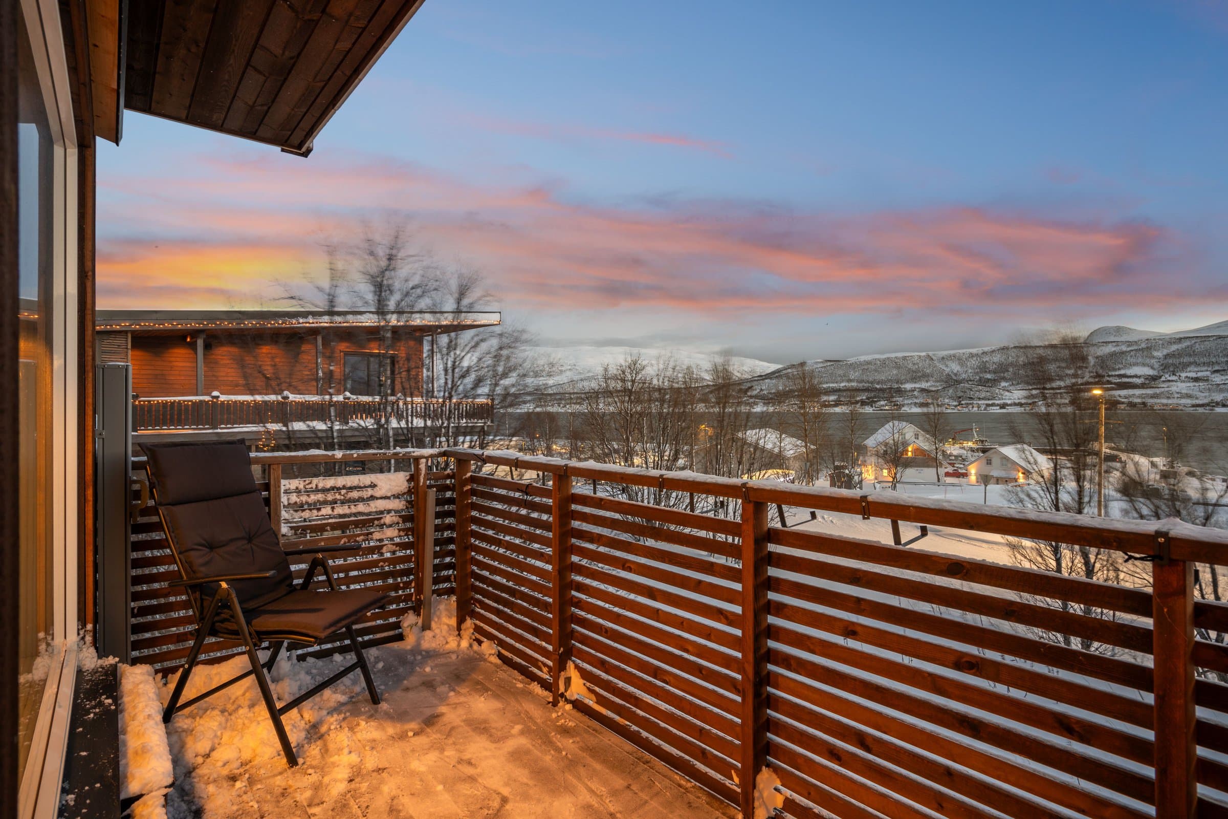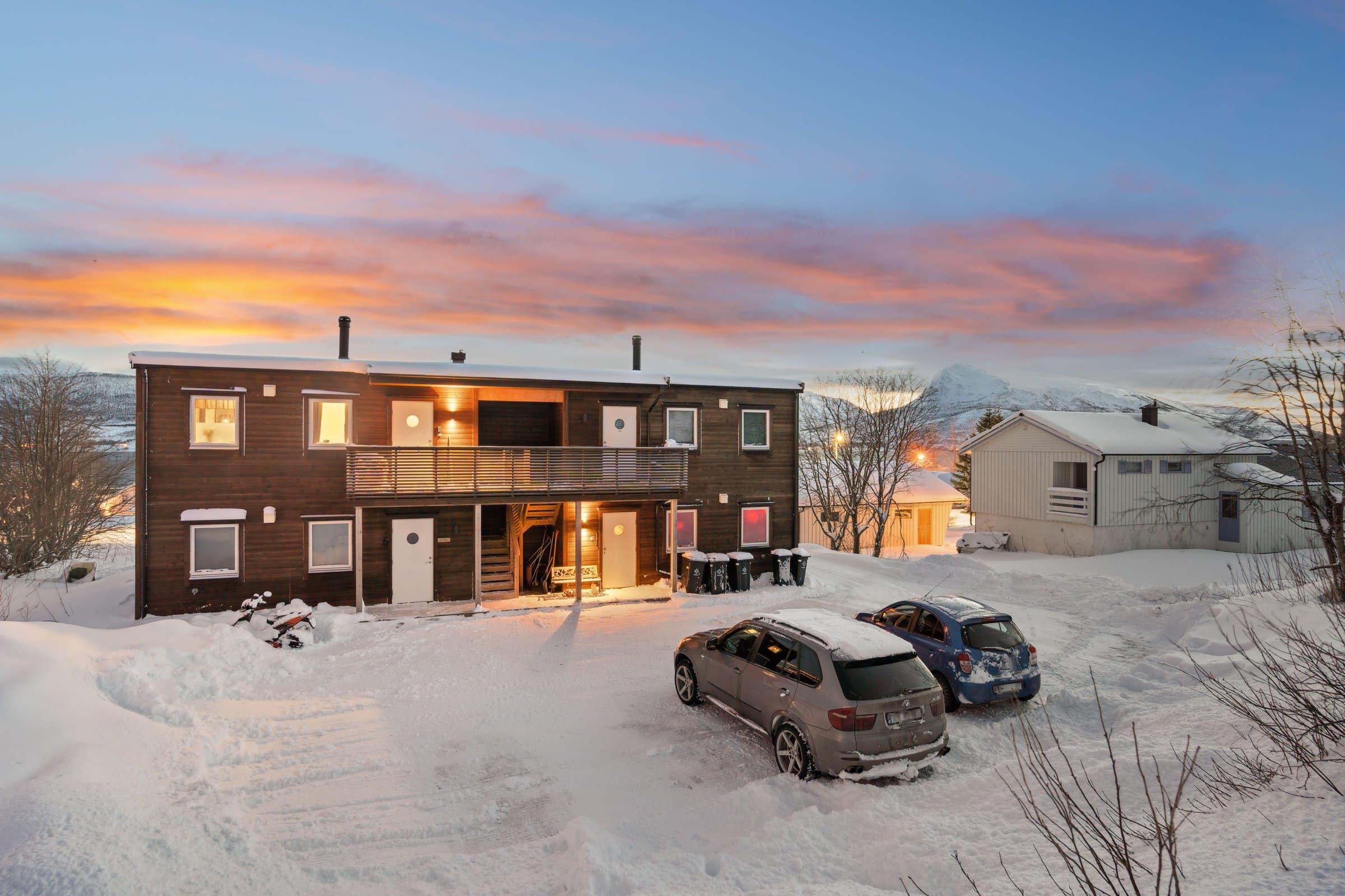 Fin sentral beliggenhet på Hansnes med muligheter for utendørs aktivitet året rundt med kort veg til marka og sjøen. Gangavstand til fasiliteter som som butikk,bistro/pub,skole /barnehage og kommuneadministrasjon Avstand fra Tromsø er ca. 60 km. Området har gode lys -og solforhold. Utsikt mot nærområdet, Langsundet og Reinøya.