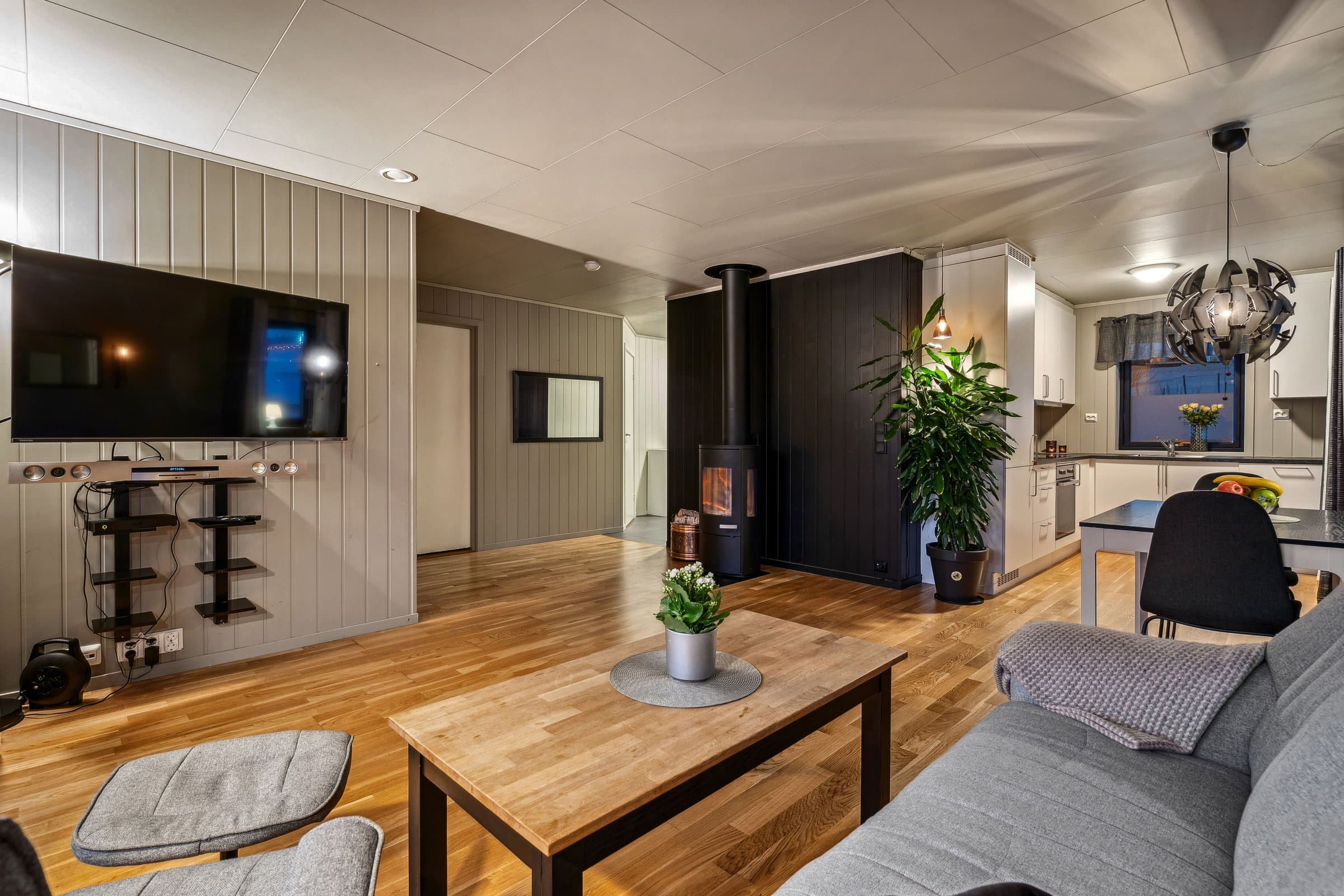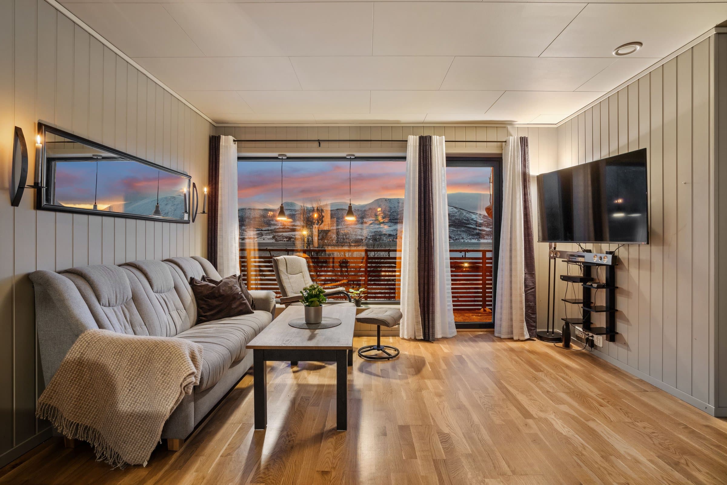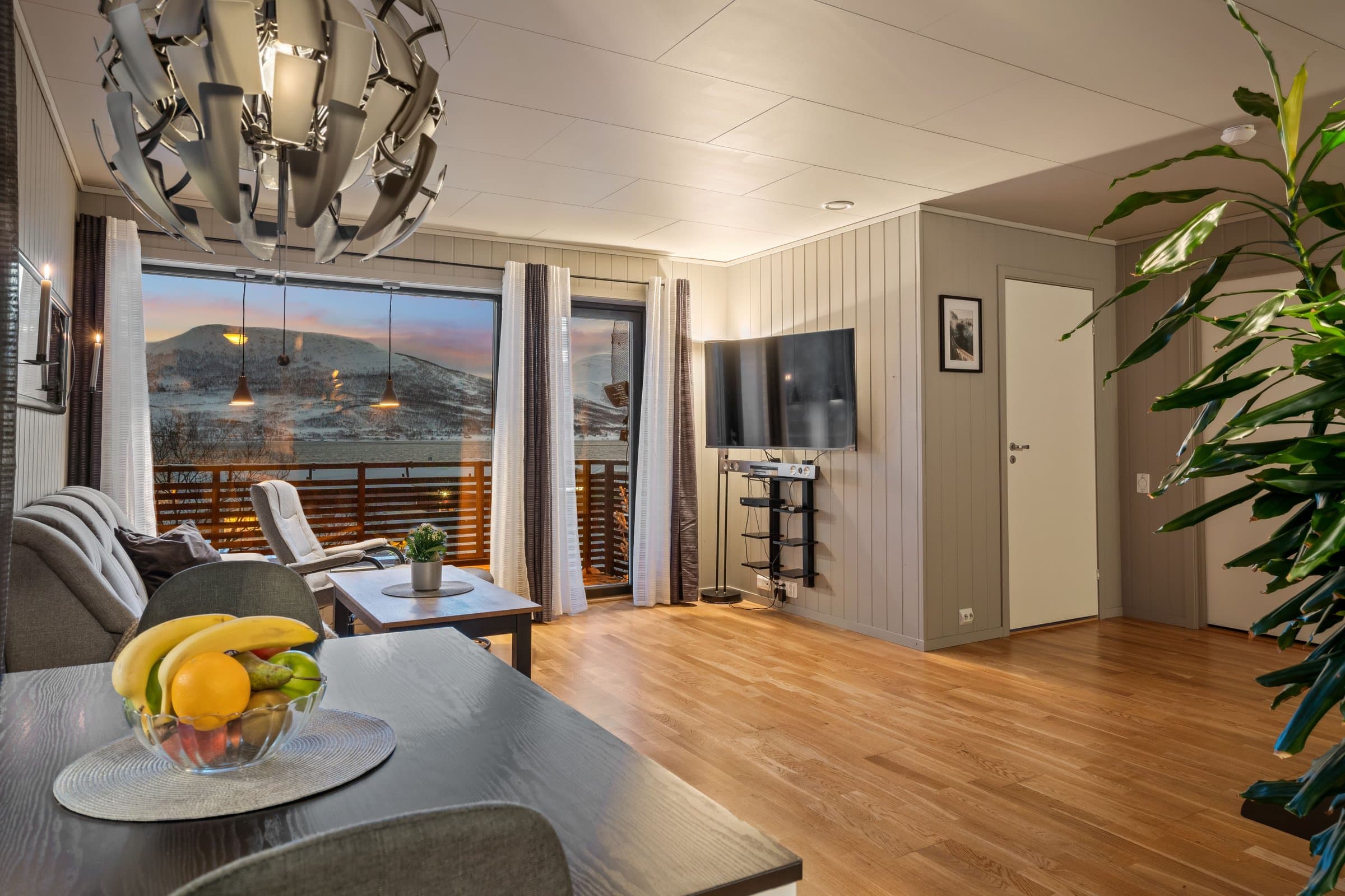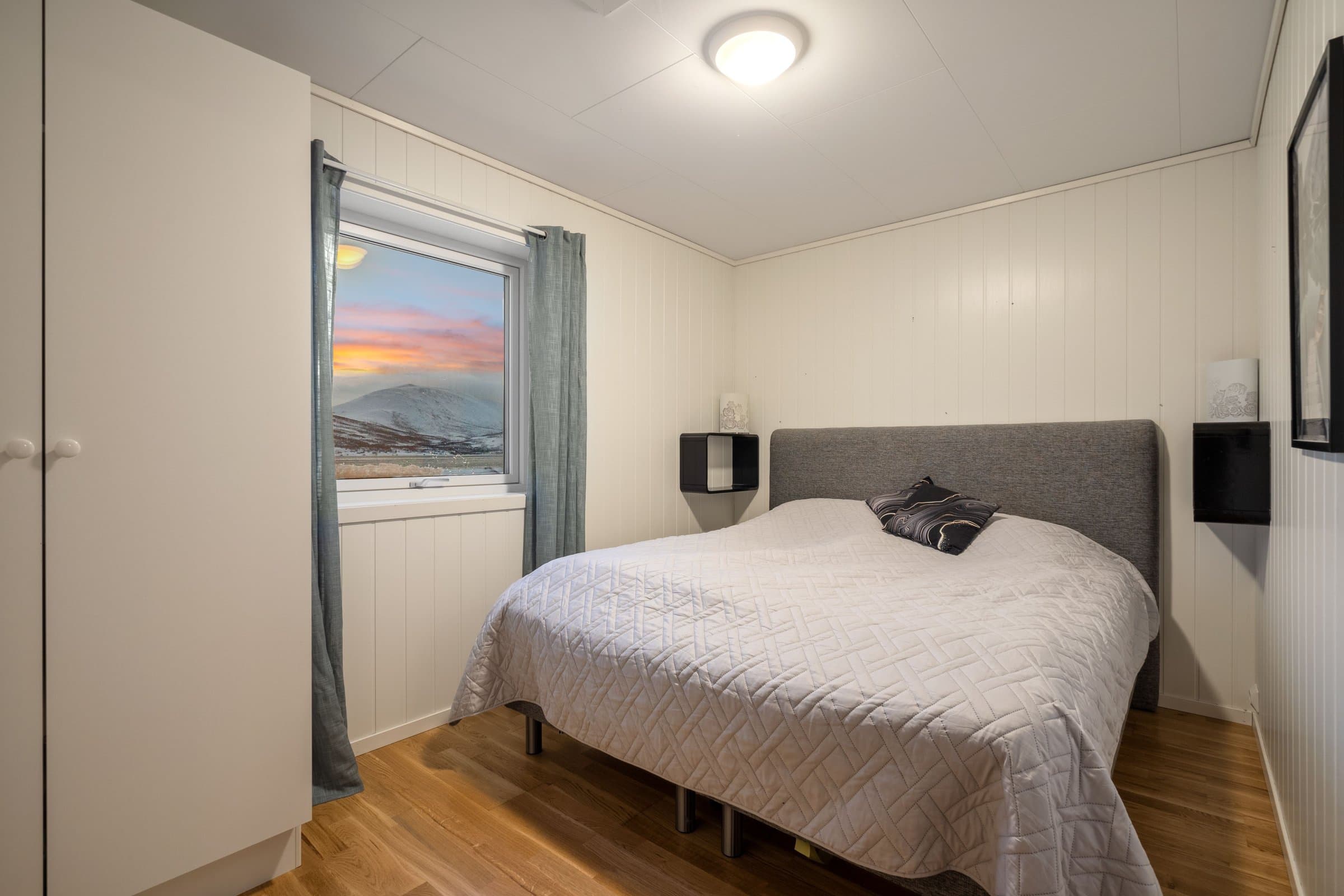 Fin sentral beliggenhet på Hansnes med muligheter for utendørs aktivitet året rundt med kort veg til marka og sjøen. Gangavstand til fasiliteter som som butikk,bistro/pub,skole /barnehage og kommuneadministrasjon Avstand fra Tromsø er ca. 60 km. Området har gode lys -og solforhold. Utsikt mot nærområdet, Langsundet og Reinøya.