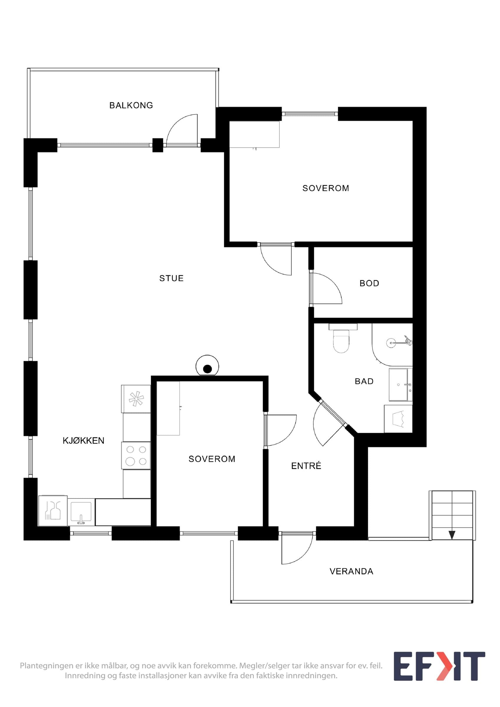 Sentral, praktisk 3-roms selveierleilighet, med ildsted og balansert ventilasjon.