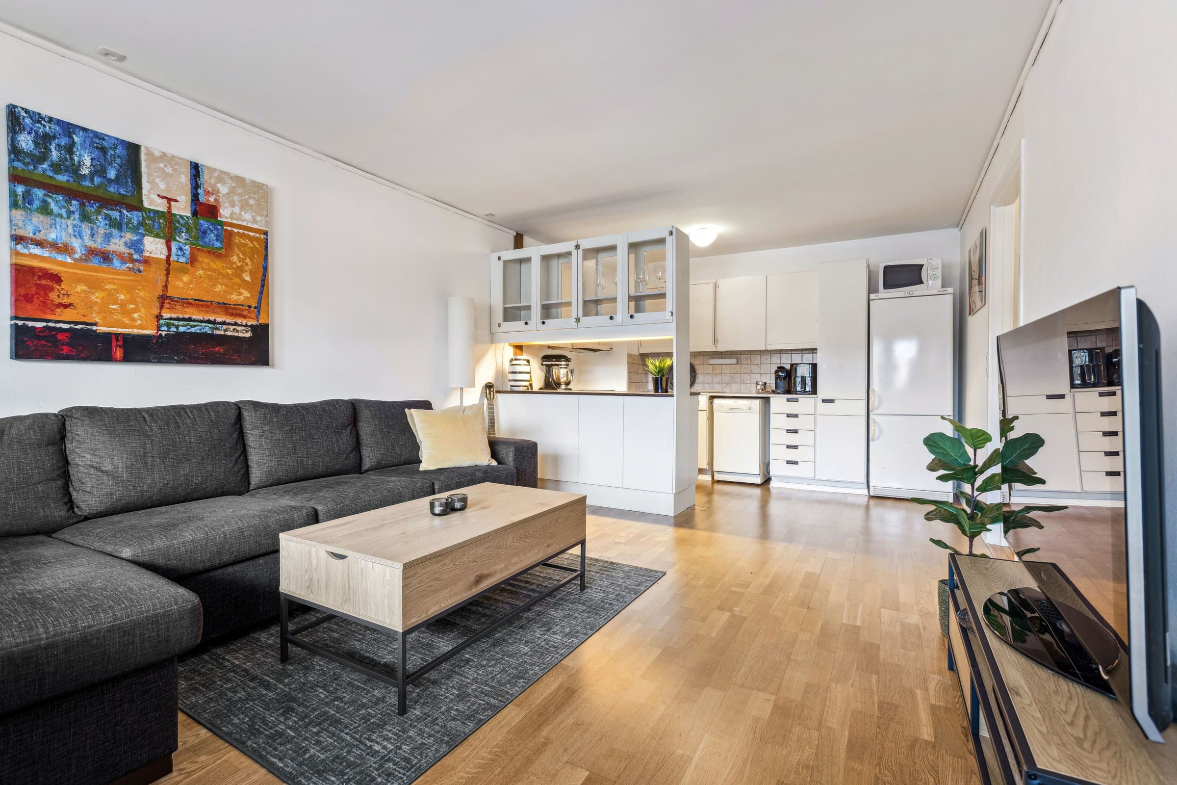 Sentrumsnær, lys hjørneleilighet med innglasset balkong, ettermiddags og kveldssol. Gangavstand til "alt". Varmtvann ink