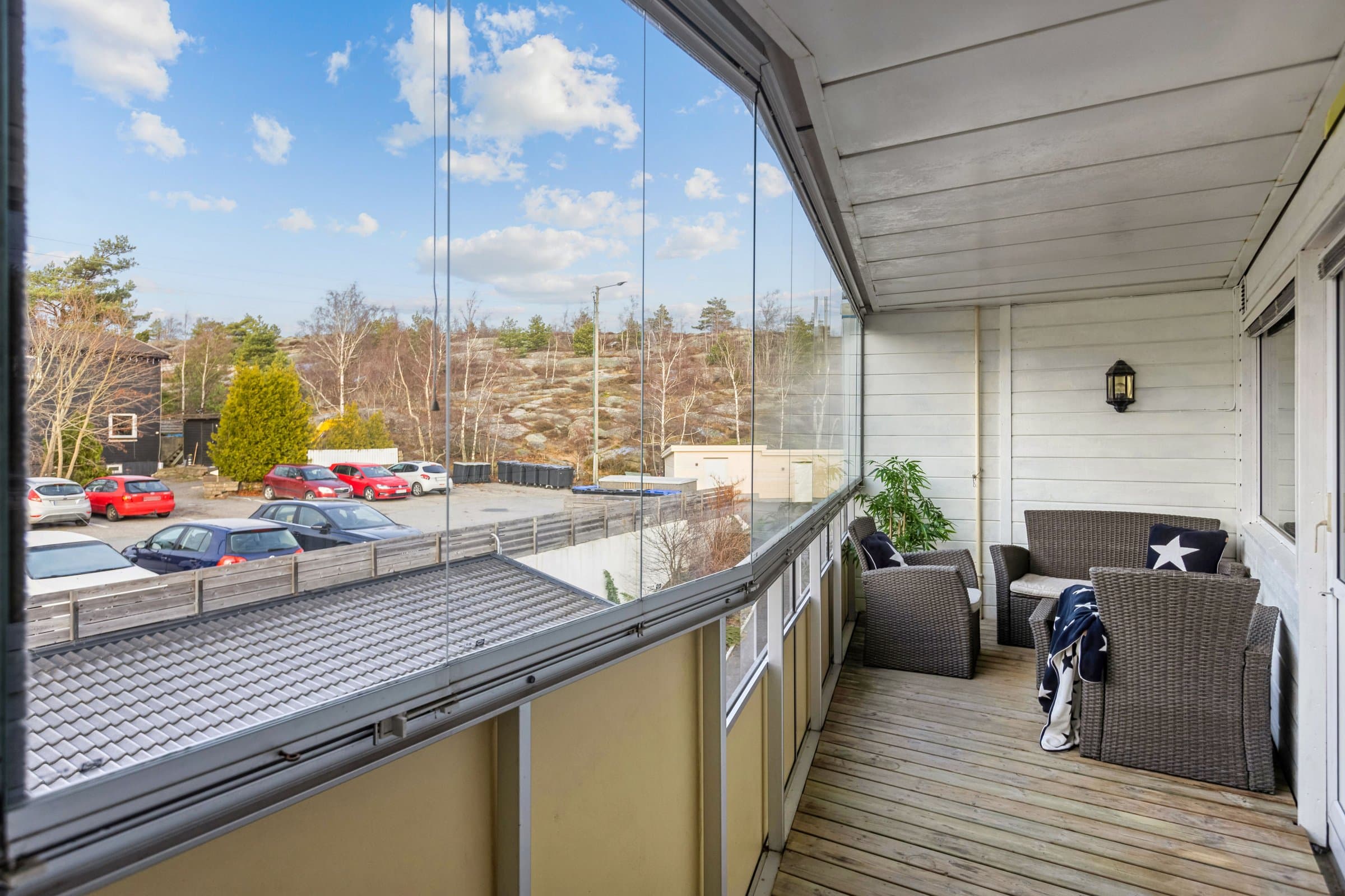 Er du på jakt etter en hyggelig og sentralt beliggende men allikevel rolig og tilbaketrukken leilighet med solrik balkong og god planløsning. Da kan denne 2-roms endeleiligheten i 3. etasje være noe for deg! Med vestvendt, innglasset balkong og lys, luftig planløsning får du en bolig med romslig atmosfære og stor utnyttelse av arealet. Takst og tilstandsrapport fra offentlig godkjent takstmann er inkludert. Ingen dokumentavgift. Varmt vann er inkludert i husleia. Veldrevet borettslag. Boligen inneholder: Størrelse: Bruksareal:: 62 m². Av dette er BRA-I 46 m², BRA-b er 12 m² og BRA-e er 5 m² Entré: Lys og romslig gang med garderobeskap. Soverom: Et romslig soverom med garderobeskap og god plass til dobbeltseng og et skrivebord. Stue: Åpen og lys stue med god plass til sittegruppe og TV. Utgang til innglasset balkong. Kjøkken: Praktisk og funksjonell innredning med mange oppbevaringsmuligheter. Bad: Flislagt bad med dusj, toalett og opplegg for vaskemaskin. Bod: Egen bod på 5 m² i kjelleren Innglasset balkong: Stor vestvendt balkong med ettermiddag og kveldssol. Utsikt: Utsikt over nærområdet Fellesarealer: Felles parkeringsplass med ladestasjoner for elbil, mc-parkering under tak, felles sykkelbod og felles koselig terrasse med sol hele dagen og god utsikt over elva og i retning Hvaler. Standard: Leiligheten fremstår som lys og trivelig, med normal bruksslitasje.