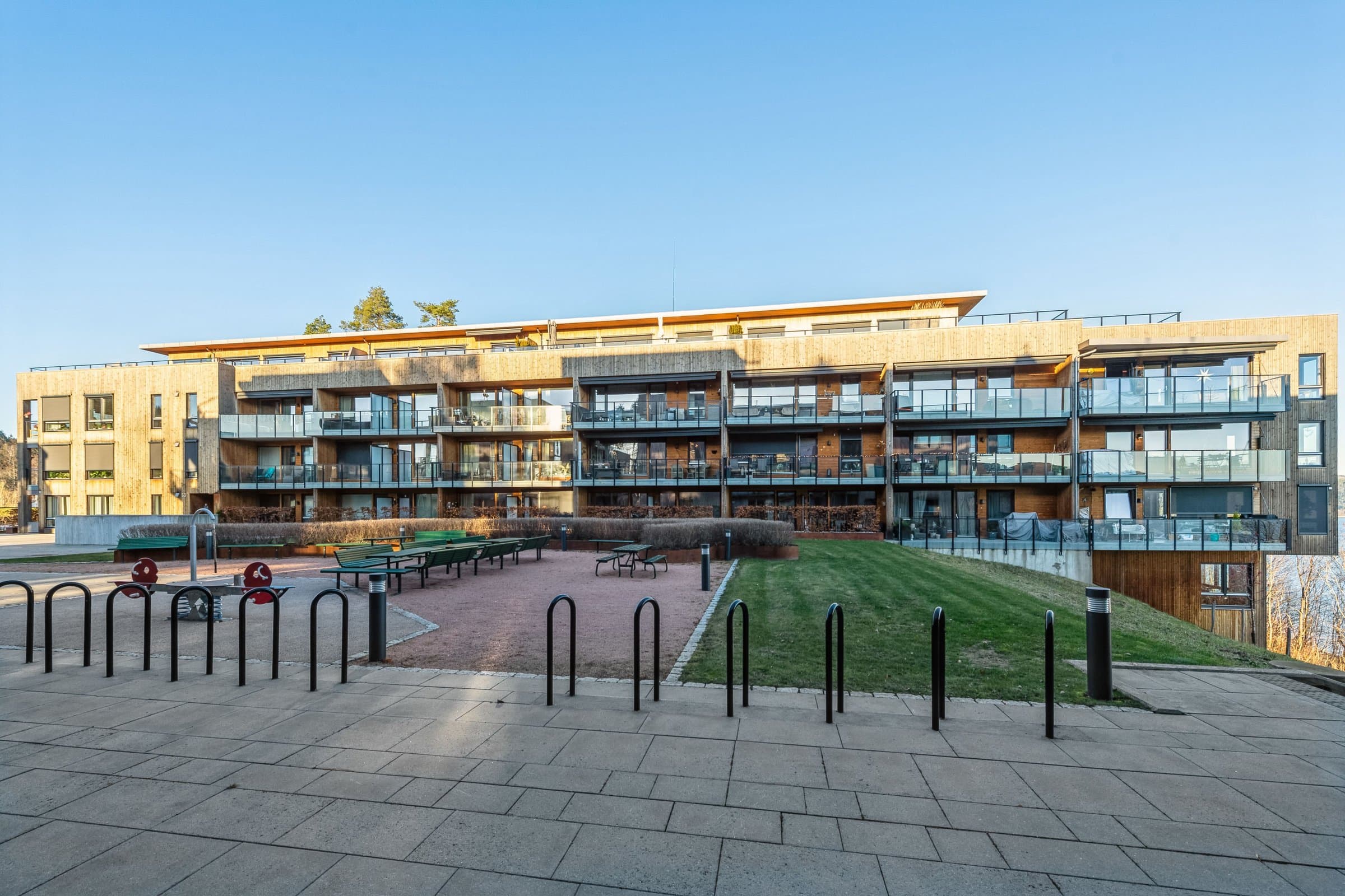 Leiligheten ligger i en moderne blokk som ble ferdigstilt i 2019. Eiendommen byr på god utsikt uten gjenboere, noe som gir en følelse av privatliv og ro. Bygget har tilhørende parkeringsanlegg med to egne boder, perfekt for lagring av sesongutstyr eller andre eiendeler. I tillegg finnes det en felles sykkelbod med verktøy for vedlikehold av sykler, som er svært praktisk for sykkelentusiaster. Med sine 40 kvm er leiligheten godt egnet for én person eller et par som ønsker en moderne og effektiv bolig med gode fasiliteter. Kombinasjonen av en ny og stilren bolig og praktiske løsninger gjør dette til et perfekt hjem for deg som ønsker å bo kompakt, men samtidig ha god tilgang til både natur og byliv.
