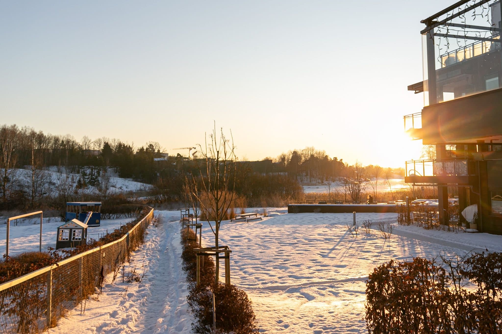 Boligen ligger svært fredelig til i skråningen mot Holtekilen, skjermet fra E18 bak en liten ås. E18 oppgraderes og legges i tunnel, noe som vil gjøre området enda fredeligere og behagelig for beboerne. Samtidig bygges det sykkelstier, parker og store grøntområder for beboere der E18 ligger i dag.