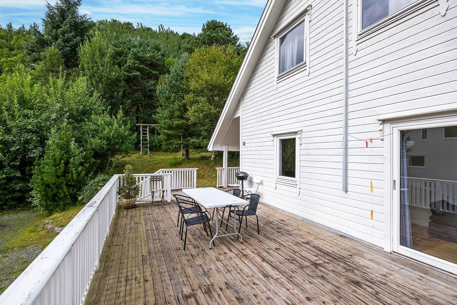 Enebolig med byggeår 1955. En solid eiendom hvor det er gjort større oppgraderinger de siste 15 år. UTVENDIG Taktekkingen er av stål/aluminiumsplater (Decra taksteins plater). Taket er besiktiget fra bakkenivå. Foliebelagte stål renner/nedløp og beslag. Veggene har trekonstruksjon av ukjent utførelse. Fasade/kledning har liggende bordkledning. Takkonstruksjonen har sperrekonstruksjon. Bygningen har malte trevinduer med 2-lags glass. Bygningen har malt hovedytterdør. Terrasse med trykkimpregnert utførelse, bygget over verksteds rom i underetasje, ca. 55 kvm. Ca. 8,5 kvm er overbygget ved inngangen dør til første etasje. Det er også tilgang med terrassen med skyvedør fra soverom. Trapp i trykkimpregnert utførelse, fra terreng til terrasse og inngangsdør i første etasje. SAMMENDRAG AV BOLIGENS TILSTAND - UTVENDIG Sammendraget viser avvikene ved boligen som har fått tilstandsgrad 2 (TG 2), tilstandsgrad 3 (TG 3) og tilstandsgrad IU (TG IU). Se utdypende informasjon i den vedlagte tilstandsrapporten. KONSTRUKSJONER SOM IKKE ER UNDERSØKT - TILSTANDSGRAD IU Utvendig - Takkonstruksjon/Loft Hele takkonstruksjonen er gjenbygget. Det er ingen mulighet til vurdering utover alder og observasjoner fra underliggende etasje. Det var ikke tilgang til kaldt loft da det manglet åpner til loftluken, kaldt loft ble derfor ikke befart. Tomteforhold - Drenering Ukjent om det er uført noe med drenering etter byggeår. Kjeller var ikke mer fuktig på befarings dagen enn normalt for hus oppført på samme tids periode. AVVIK SOM KAN KREVE TILTAK - TILSTANDSGRAD 2 Utvendig - Veggkonstruksjon Det er påvist spredte råteskader i bordkledningen. Takstmanns kostnadsestimat: Under 10 000