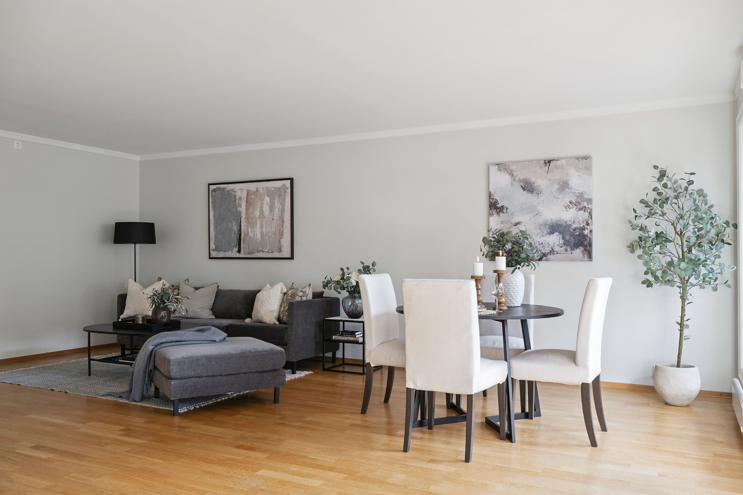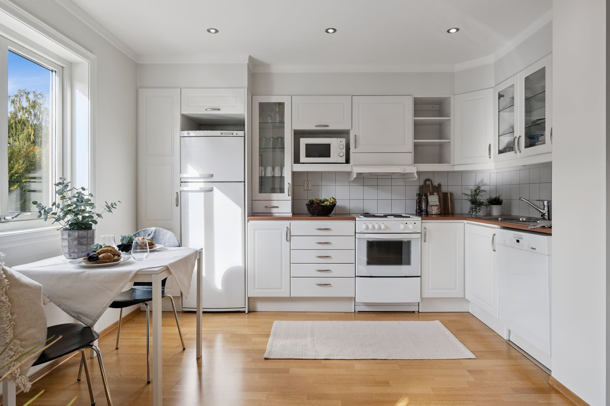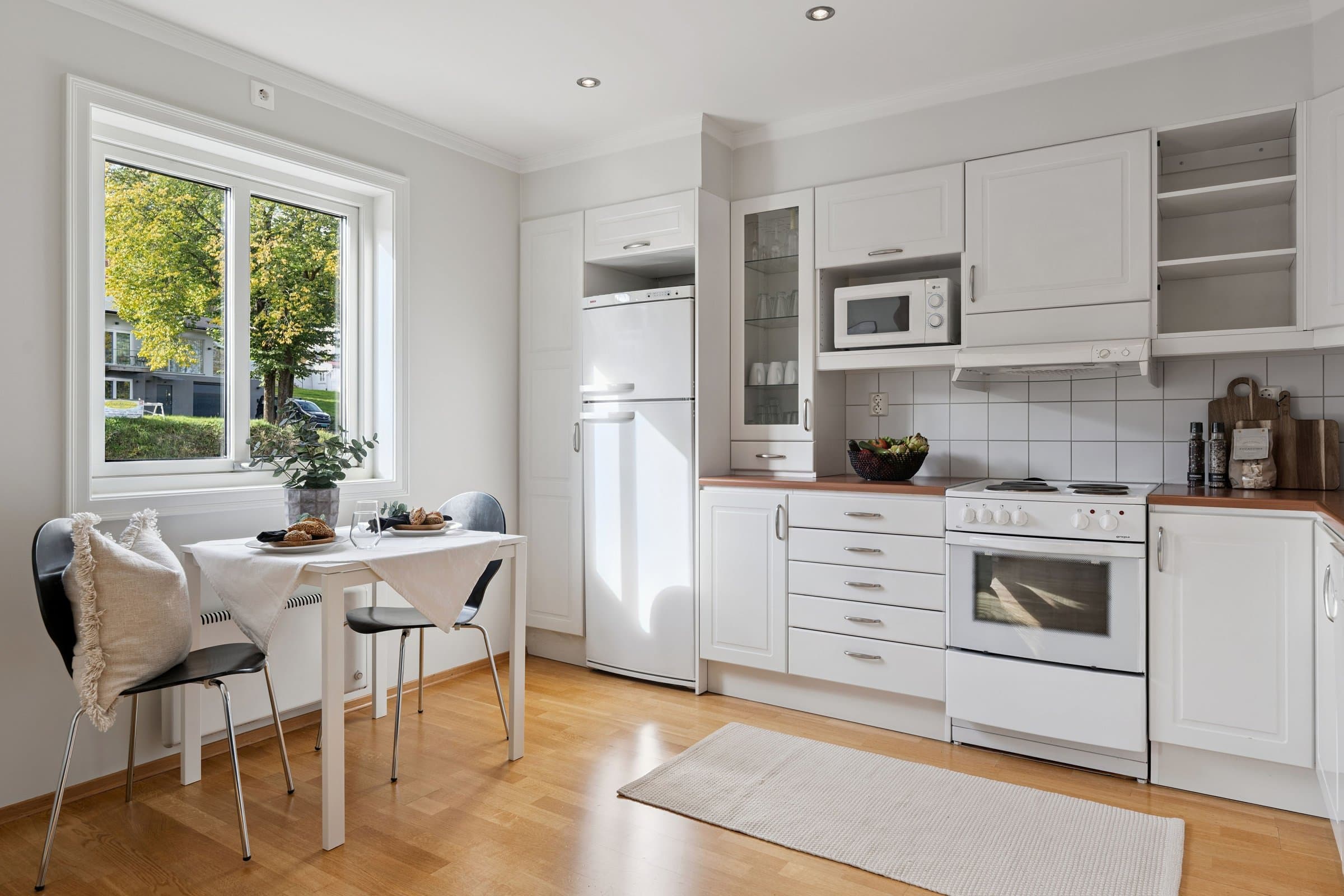Jeg gir privatvisninger. Ta kontakt, så finner vi en tid. Leiligheten kan overtas på meget kort varsel da eier har flyttet. Hvis du lurer på hvordan det er å kjøpe bolig gjennom propr, SE: https://propr.no/l/slik-er-det-a-kjope-bolig-gjennom-propr. Det er ingen forkjøpsrett på boligen. Hvitevarer (2x kjøleskap, komfyr, oppvaskmaskin og mikrobølgeovn), utebord x2 og diverse innbo (som glass, kopper, bestikk, tallerkener, kjeler, lamper, støvsuger, flyttbar AC) medfølger hvis ønskelig. Jeg vil tegne boligselgerforsikring, og anbefaler også kjøper å tegne boligkjøperforsikring. Alle kostnader som ikke kan knyttes til den enkelte seksjon er i utgangspunktet FELLESKOSTNADER som skal deles mellom beboerne i sameiet. Det vil si: - Bygningsmessig vedlikehold og reparasjoner utvendig som er fellesareal. - Vedlikehold og reparasjoner av alle teknisk installasjoner som ikke er en del av leiligheten og felles. - Strøm til varme, lys fellesarealer som parkering. NB: Hver sameier/leilighet har egen strømmåler for forbruket i leiligheten. - Vaktmestertjenester som: Trappevask, snørydding, strøing, klippe plener og hekker. - Renovasjon. NB: Hver sameier/leilighet har egen vannmåler for forbruket i leiligheten. - Internett/kabel-tv (grunnpakke) - Heis - Bygningsforsikring. NB: Innboforsikring må den enkelte sameier dekke selv. - Forretningsførsel hos NBBO