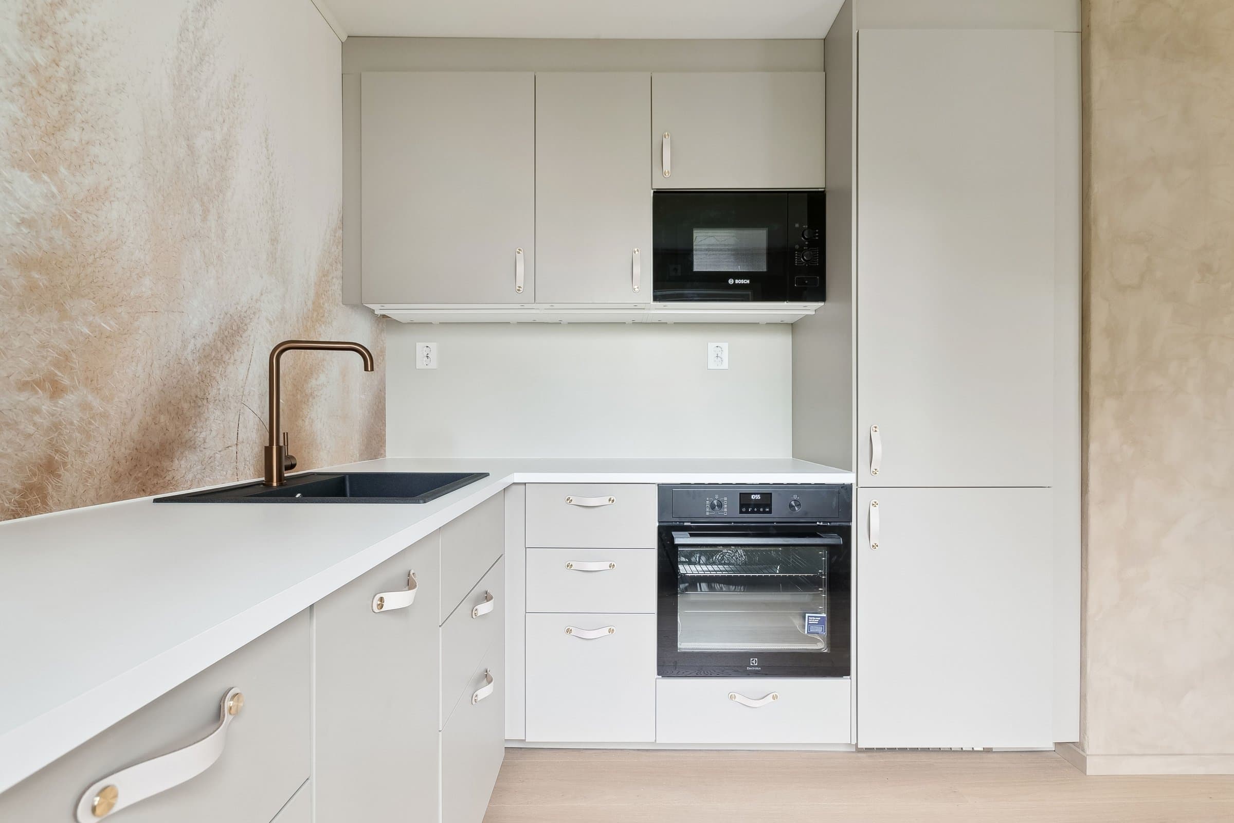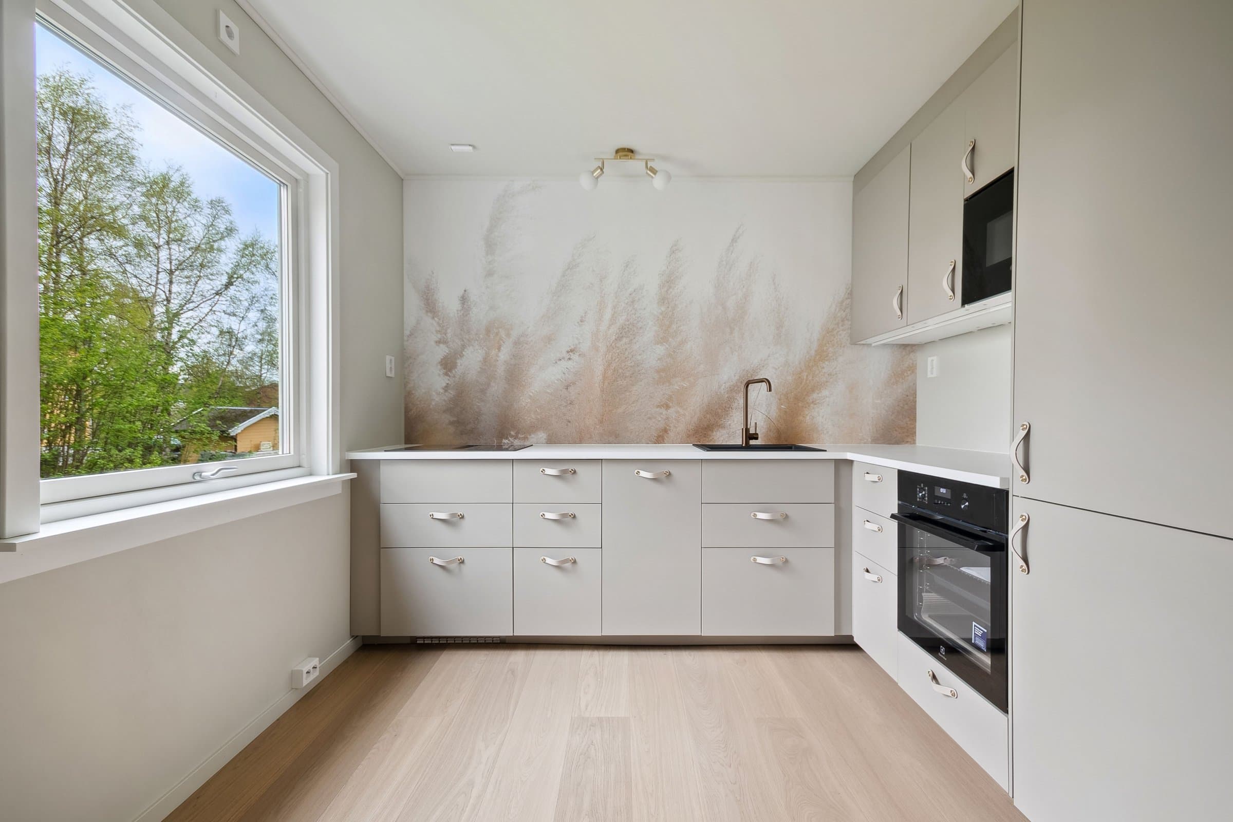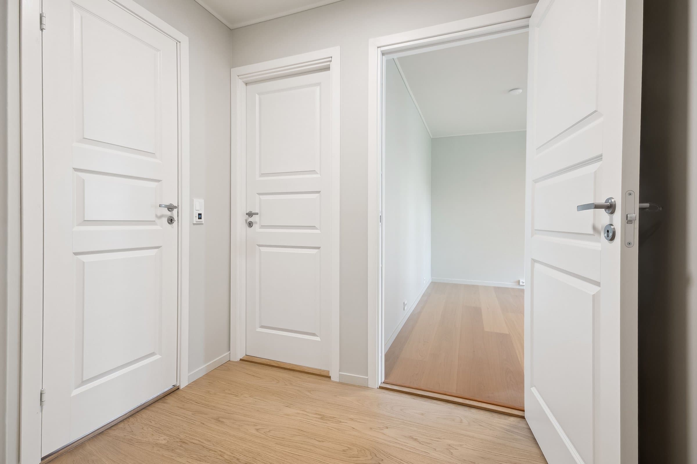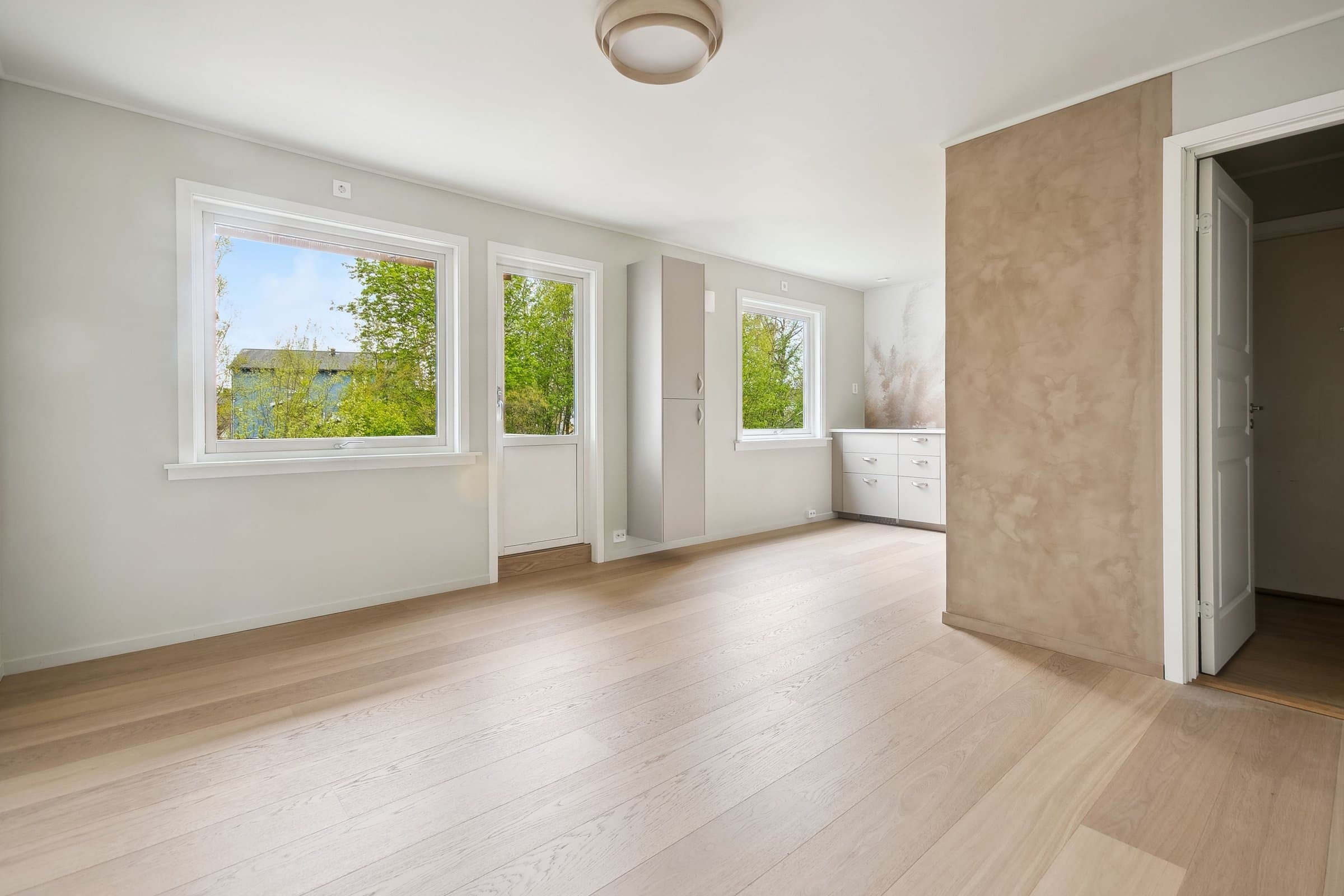 Gjennomgående oppusset leilighet med moderne løsninger og høy standard Denne leiligheten har gjennomgått en omfattende oppussing hvor det er lagt stor vekt på kvalitet, funksjonalitet og moderne uttrykk. Hele leiligheten har fått nytt elektrisk anlegg, og samtlige rom er pusset opp med gjennomførte og smakfulle materialvalg. Soverom Soverommet fremstår som nytt med nymalte overflater og nytt, slitesterkt gulv i eikefiner.. Det er installert et moderne og praktisk garderobeskap med god oppbevaringsplass. For optimal lydisolering er det montert lydhimling med dobbel gips i taket – perfekt for et godt og rolig sovemiljø. Bad Badet er totalrenovert og oppgradert til dagens krav og standard. Det er lagt nytt røropplegg med rør-i-rør-system og nytt avløp, noe som gir økt trygghet og lang levetid. Hele badet er forseglet med ny membran på både gulv og vegger. Overflatene er elegant utført med mikrosement, kombinert med våtromsmaling for et stilrent og lettstelt uttrykk. Opplegg for vaskemaskin fins i vaskerom i kjelleren, så klesvasken kan foregå uten støy i leiligheten. Vaskerom deles med èn annen beboer. Kjøkken og stue Kjøkkenet er åpnet opp mot stuen for å skape en lys og sosial sone med god romfølelse. Løsningen er reorganisert for å gi bedre arbeidsflyt og plassutnyttelse. Det er installert ny varmtvannsbereder plassert diskret i kjøkkenbenken, og både kjøkken og stue har fått behagelige varmekabler i gulvet. I likhet med soverommet, er det også her montert lydhimling i taket for økt komfort. Alle hvitevarer medfølger i salget, og er enten nye eller nylig renovert – samtlige med garanti. Øvrige detaljer Det er lagt nytt gulv i eikefiner fra i alle rom utenom badet, som gir en gjennomgående helhet og varme til boligen. I tillegg er alle innerdører byttet ut med nye og tidsriktige dører. Ta kontakt for visning!