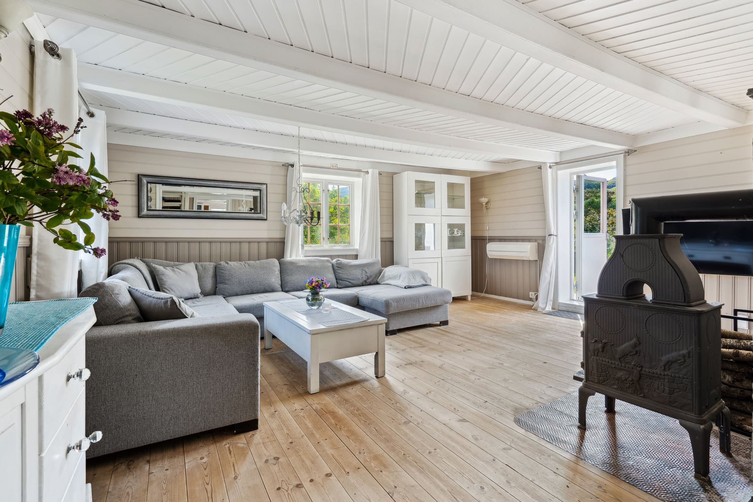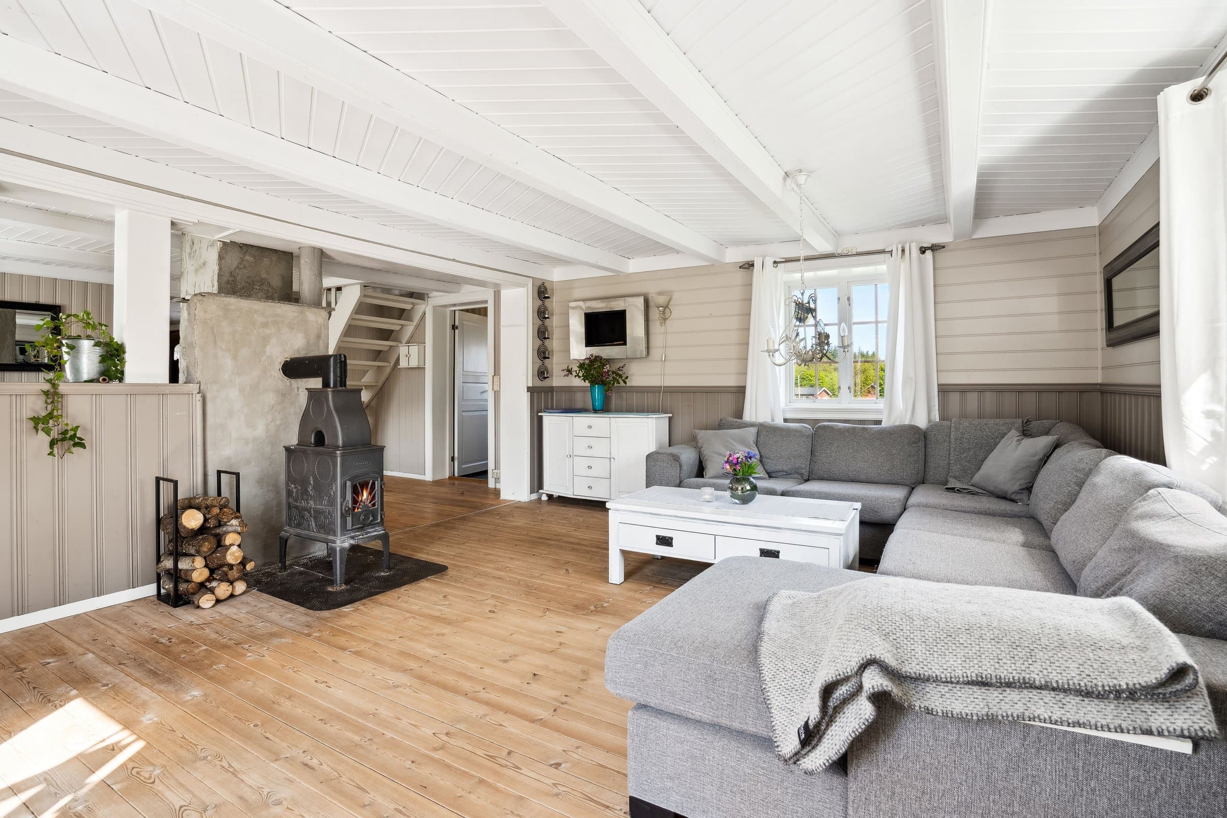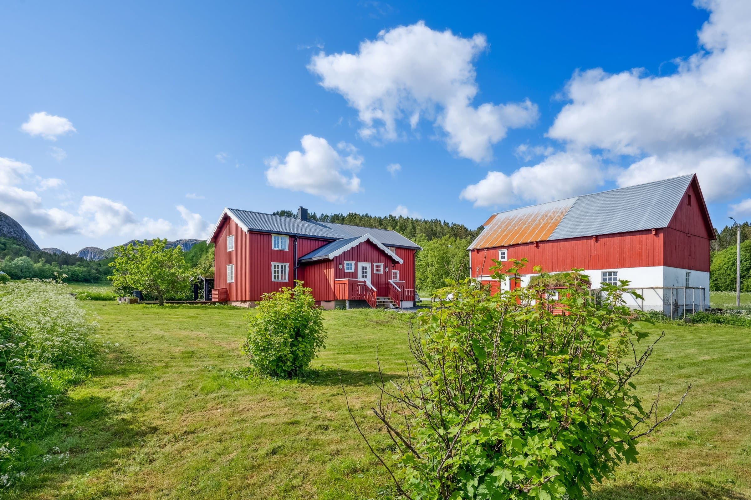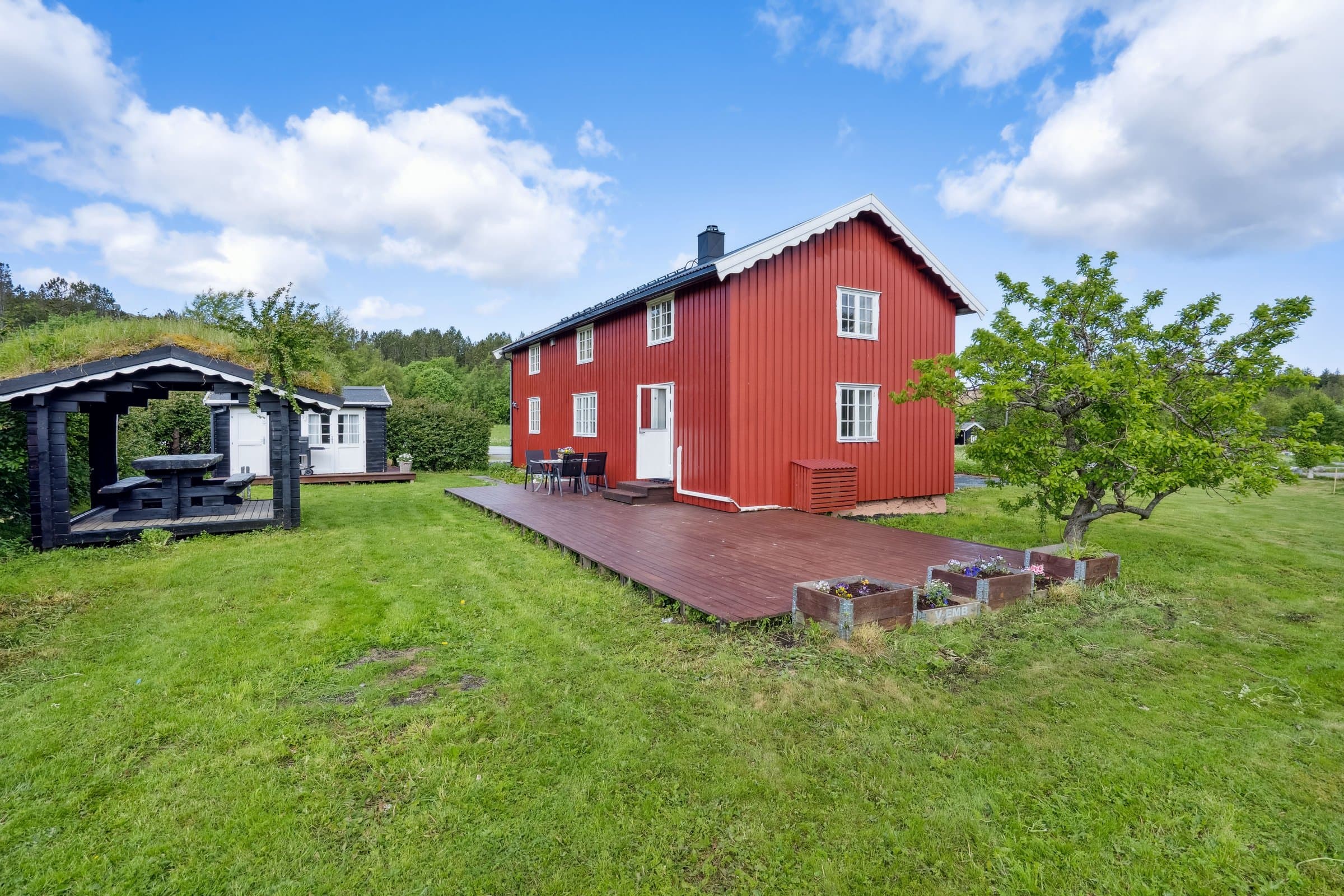 Velkommen til Sommervold, et koselig tun i landlige omgivelser på Oksvoll. Stor og flat tomt på 2779 kvm, beplantet med bærbusker og frukttrær. Eiendommen byr på enebolig, tradisjonelt fjøs, funksjonelt anneks/ bod og en dukkestue. Stor, solrik platting med direkte adkomst fra stuen. I tillegg finnes en overbygd platt med torvtak, som gir ly for vær og forlenger utesesongen. Sjarmerende enebolig som inneholder følgende: 1. etasje: gang med garderobeplass, vaskerom, separat toalett og et bad (benyttes som bod). Videre finner du en romslig stue med utgang til platting, spisestue, samt et stort kjøkken med eget spiskammers – ideelt for praktisk oppbevaring. 2. etasje: 3 soverom, bad og loftstue (fungerer godt som ekstra oppholdsrom, TV-stue eller lekerom)
