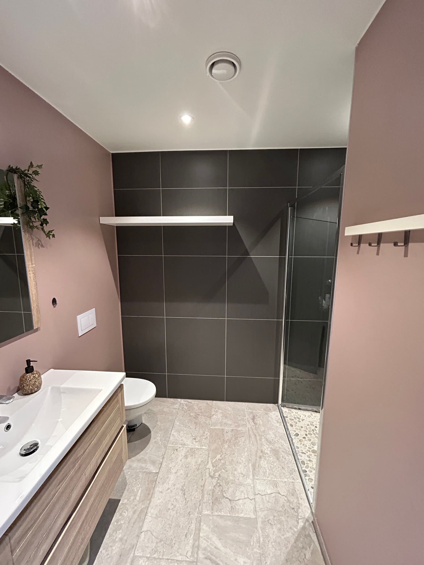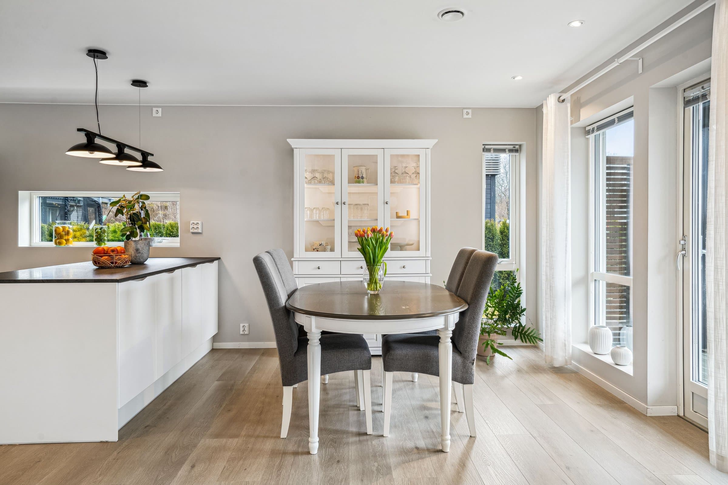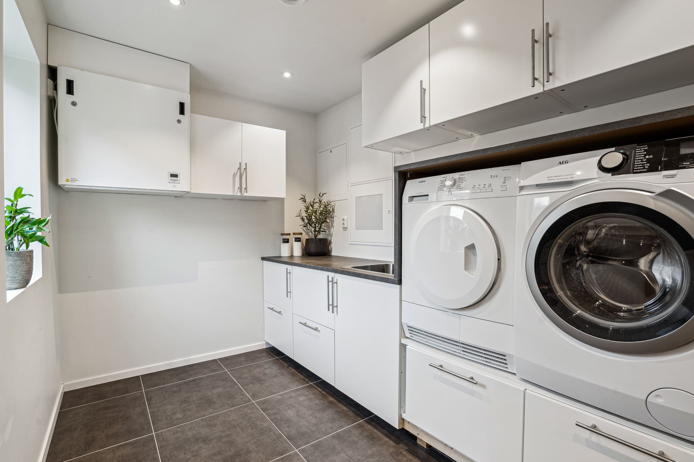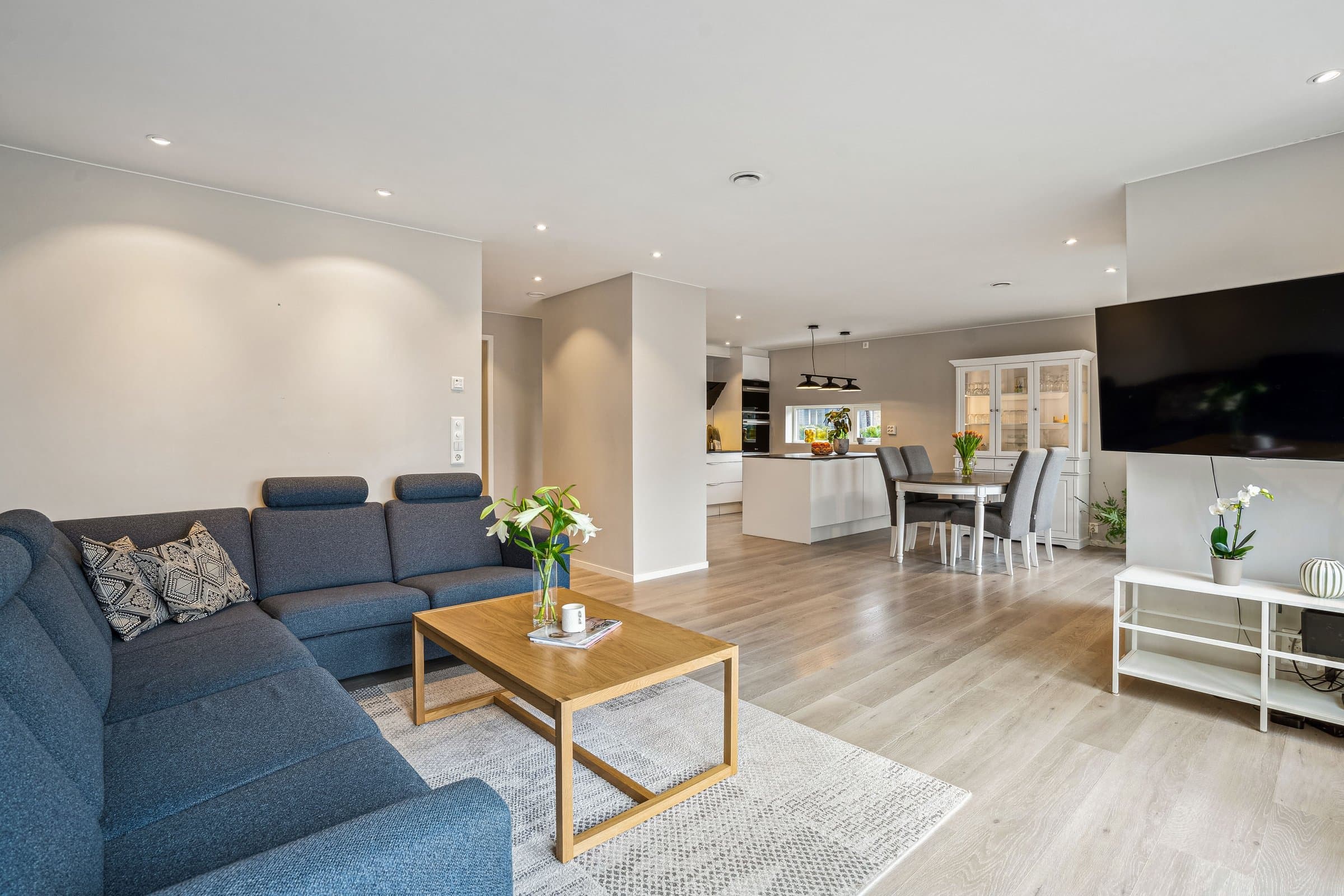 Boligen er oppført i 2018 og har en meget god standard. Boligen framstår moderne i både materialvalg, teknisk standard og planløsning. Boligen har balansert ventilasjon med varmegjenvinning, varme i gulv i hele underetasje samt bad i 2. etg. stor takhøyde, store vindusflater og lyse fine rom. Videre har boligen 2 romslige svært pene bad og et stort vaskerom med vaskeroms innredning og benkeplass. Badet i 1. etg. har fliser på gulv, stor dusjnisje, baderomsinnredning og vegghengt wc. Badet i 2. etg. er det fliser på gulv, dusjhjørne med glassvegger, vegghengt wc og baderomsinnredning. I 1. etg finner vi stue og åpen kjøkkenløsning. Fra stuen er det utgang til terrasse. Meget flott JKE- kjøkken med øy, mye skap- og benkeplass. Et riktig så praktisk kjøkken. Det er videre integrerte hvitevarer som kjøl og frys, mikro, komfyr og koketopp samt oppvaskmaskin. Det gis ikke garanti på hvitevarer. I stuen finner vi naturlig plass til spisestue og dagligstue. Det er lyse fine arealer og naturlig godt med dagslys. I 2 etg er det 3 soverom hvorav et med walk-in-closet og utgang til veranda. Det er en stue med svært god takhøyde og store vindusflater. Stuen i 2. etg. bidrar til fleksibilitet i boligen ift en families behov. Boligen etterlater seg et svært godt inntrykk, fremstår tidsmessig og moderne og ikke minst er beliggenheten meget god og familievennlig. Utvendig er det en romslig bod i tilknytning til huset. Det er det oppstillingsplass for inntil 4 biler. Det er installert ladestasjon for el.bil. Det er er singellagt gangvei rundt huset med kantsteiner av granitt.