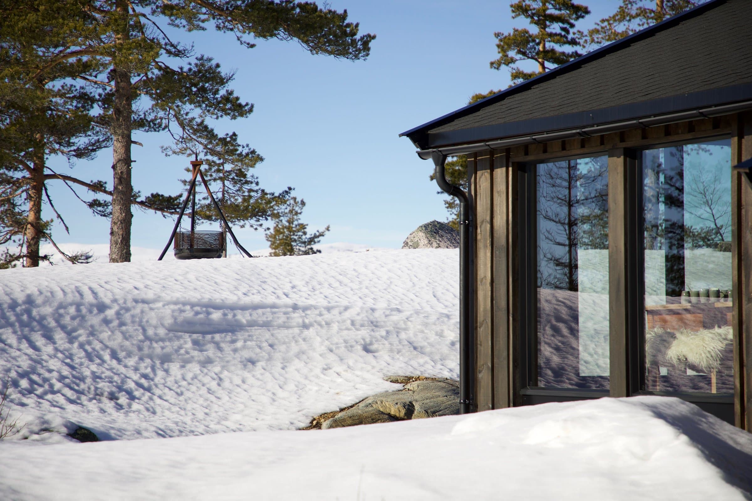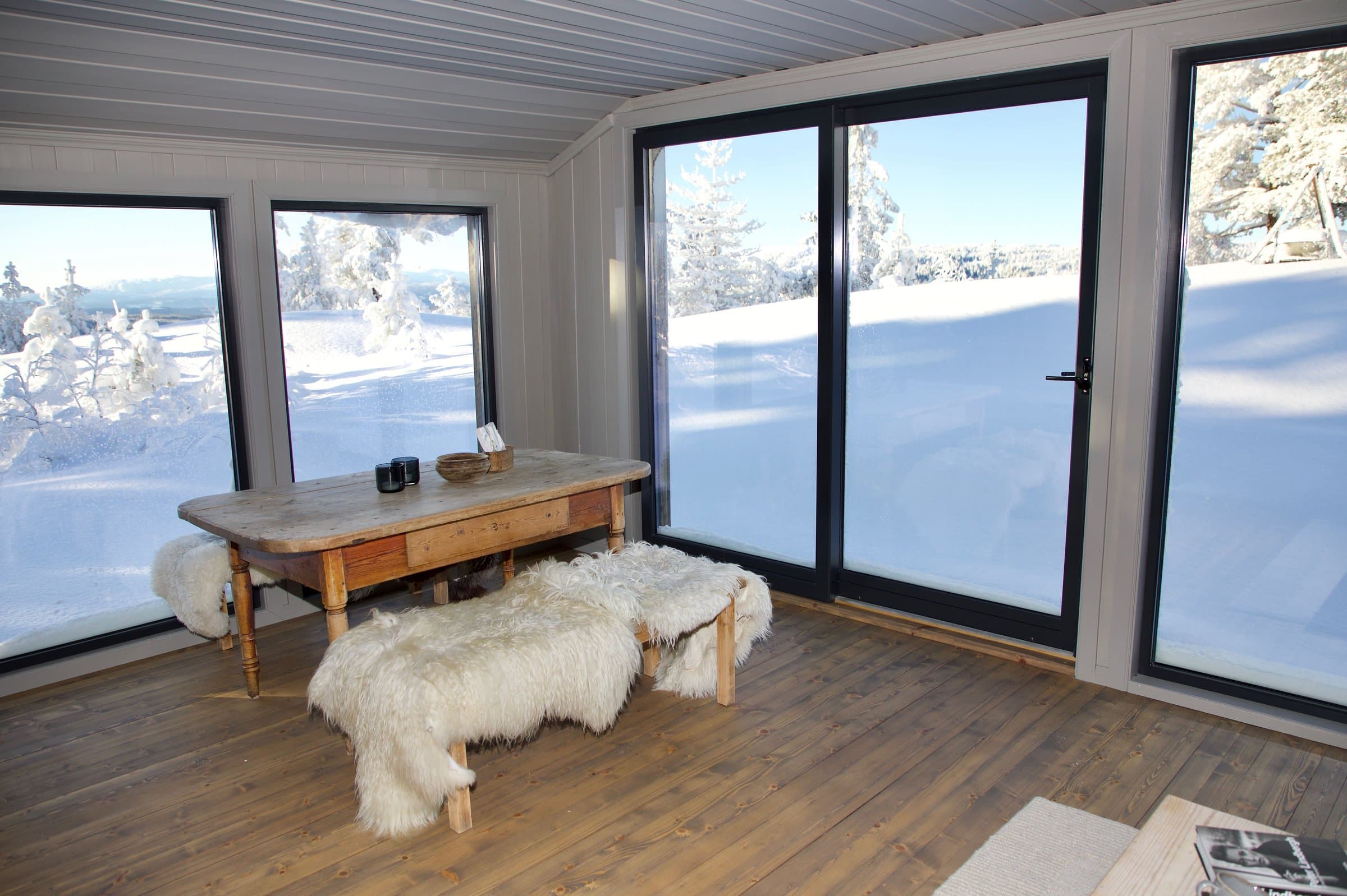 Helårshytten er restaurert og har et moderne lodge-aktig uttrykk. Her er skillet mellom ute og inne visket ut med store vinduer og skyvedør fra gulv til tak. Planløsning inkluderer yttergang, åpen kjøkken og stue med store glassflater for å ta inn panoramautsikten til Lifjell og Store Ble, 3 soverom med sengeplass til 5 personer, bad med dusj og vannklosett. Renoveringen innebærer blant annet nye vinduer og gulv-til-tak skyvedør, ny kledning på store deler av hytta, ny pipe og peisovn i kleberstein, nytt kjøkken med integrerte hvitevarer (kjøl/frys, kombi-dampovn, oppvaskmaskin og stor koketopp med integrert ventilator). På badet er ny vask og dusj. Jets Pearl vannklosett ble installert få år tilbake. Hytta har eget renseanlegg. Hytta ligger helt for seg selv og har et nydelig uteområde hvor du kan nyte lang solgang og den storslåtte panorama-utsikten. I helling fra uteområdet lages akebakke og hoppbakke for barna om vinteren. Uteområdet har en terrasse mot sør med fantastisk utsikt mot Lifjell og Gaustatoppen. Ved utgang fra stor skyvedør i stuen er fine glatte berg. Her er man helt for seg selv med Store Ble som nærmeste nabo i direkte øyesyn.