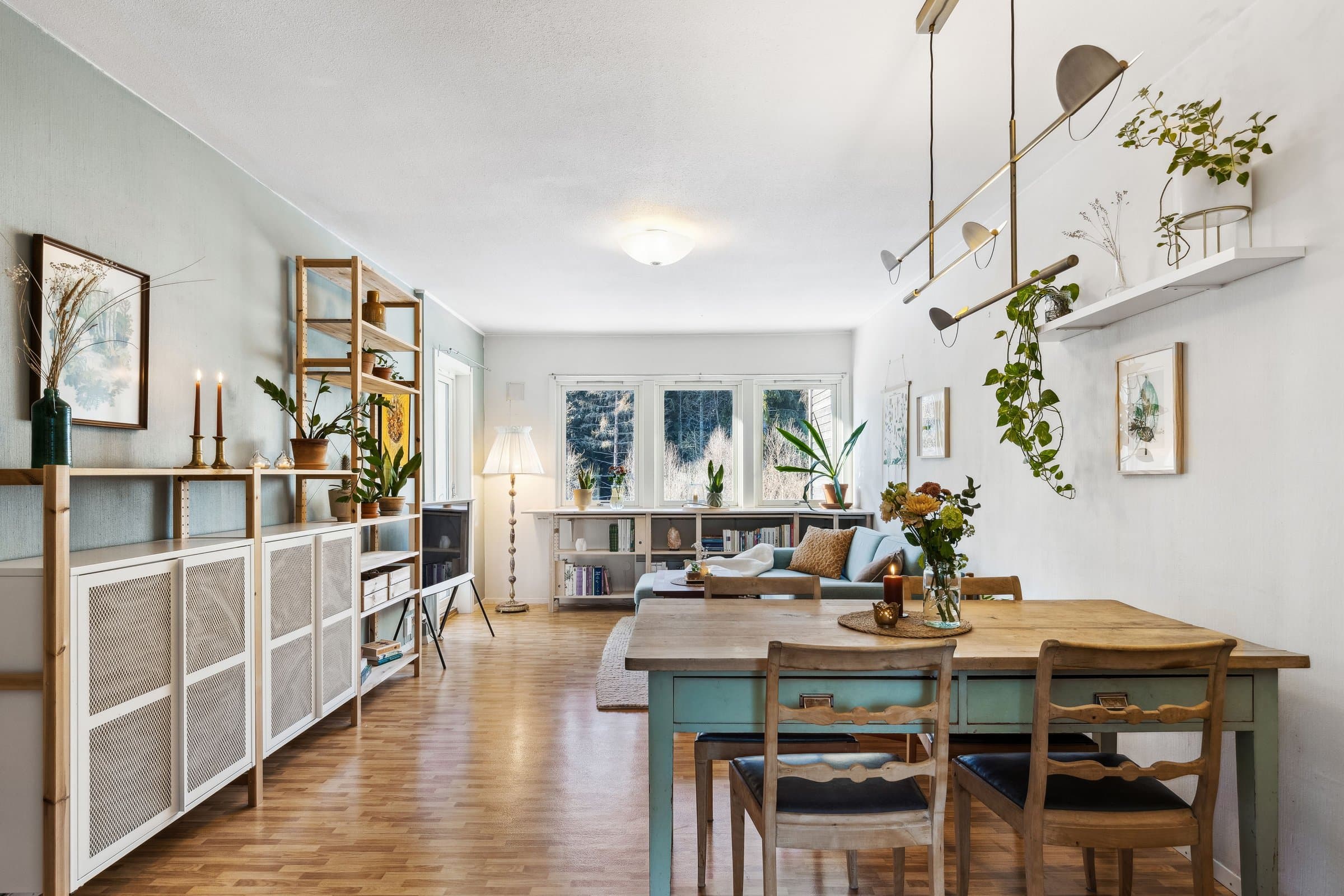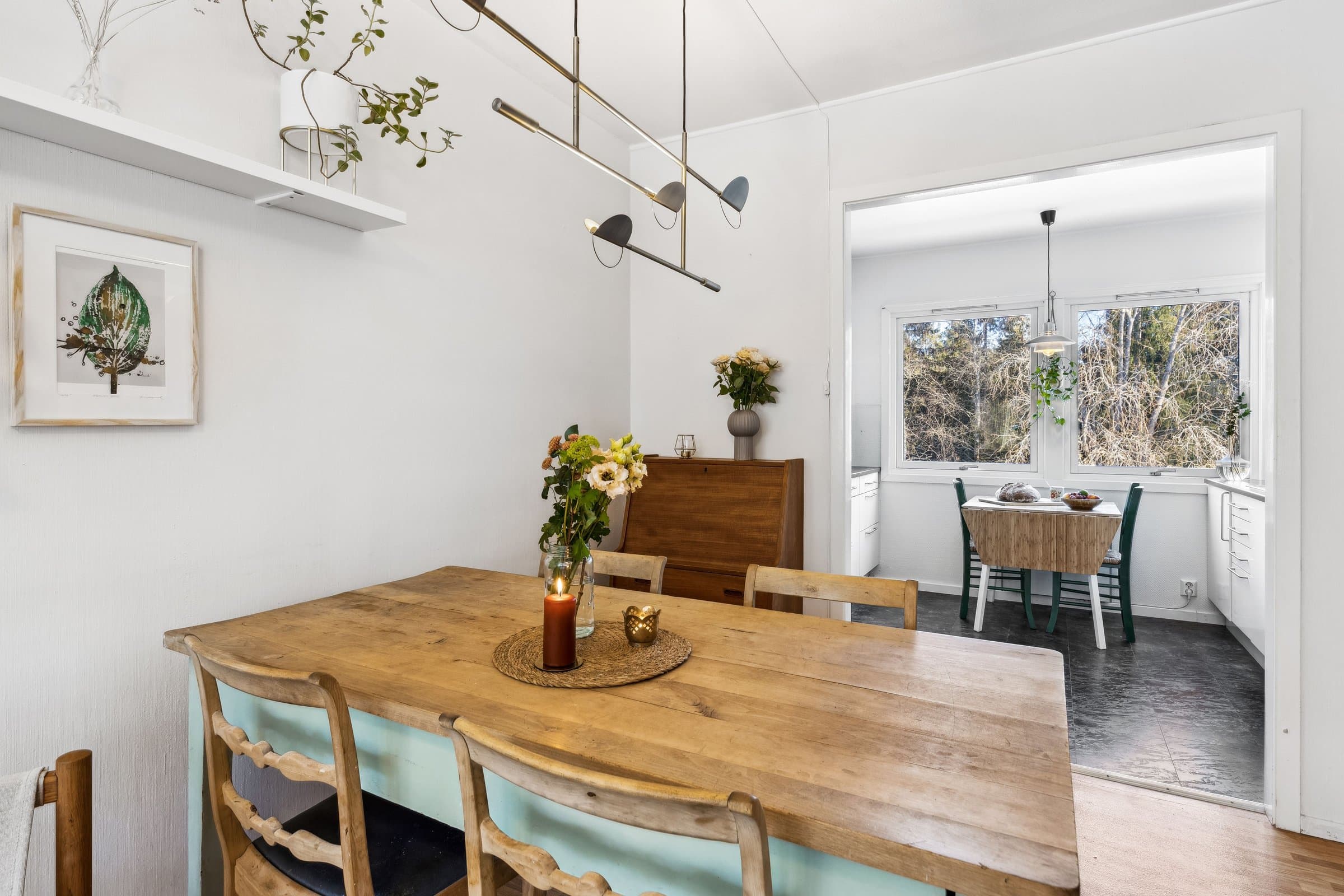 Leiligheten ligger idyllisk til innerst i en privat adkomstvei, med skogen som nærmeste nabo i ett av de mest populære nabolagene i Ås. Her bor du både sentralt og naturskjønt, med kort vei til alt du trenger i hverdagen. Ås stasjon nås på ca. 8 min til fots, med hyppige avganger til Oslo (19 min med Follobanen). Coop Extra ligger bare 5 min unna, mens NMBU og Eika treningssenter nås på 10-15 min til fots. Rett utenfor døra venter et nettverk av idylliske turstier som snor seg gjennom både Syverudskogen og ned mot vakre Årungen. På vinterstid forvandles området til et eldorado for skiløpere, med preparerte løyper like i nærheten. Sommeren byr på både blåbær- og soppterreng, og fra den hyggelige balkongen kan du observere rådyr, ekorn og et mangfoldig fugleliv.