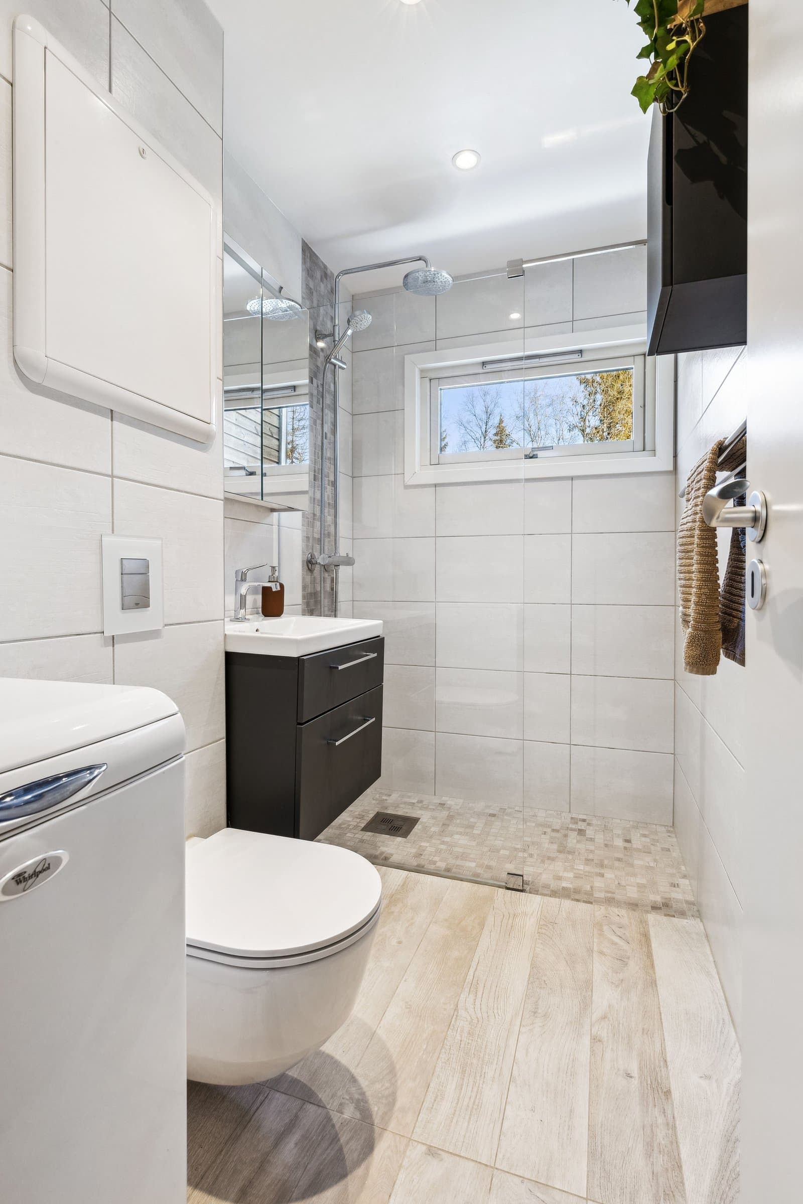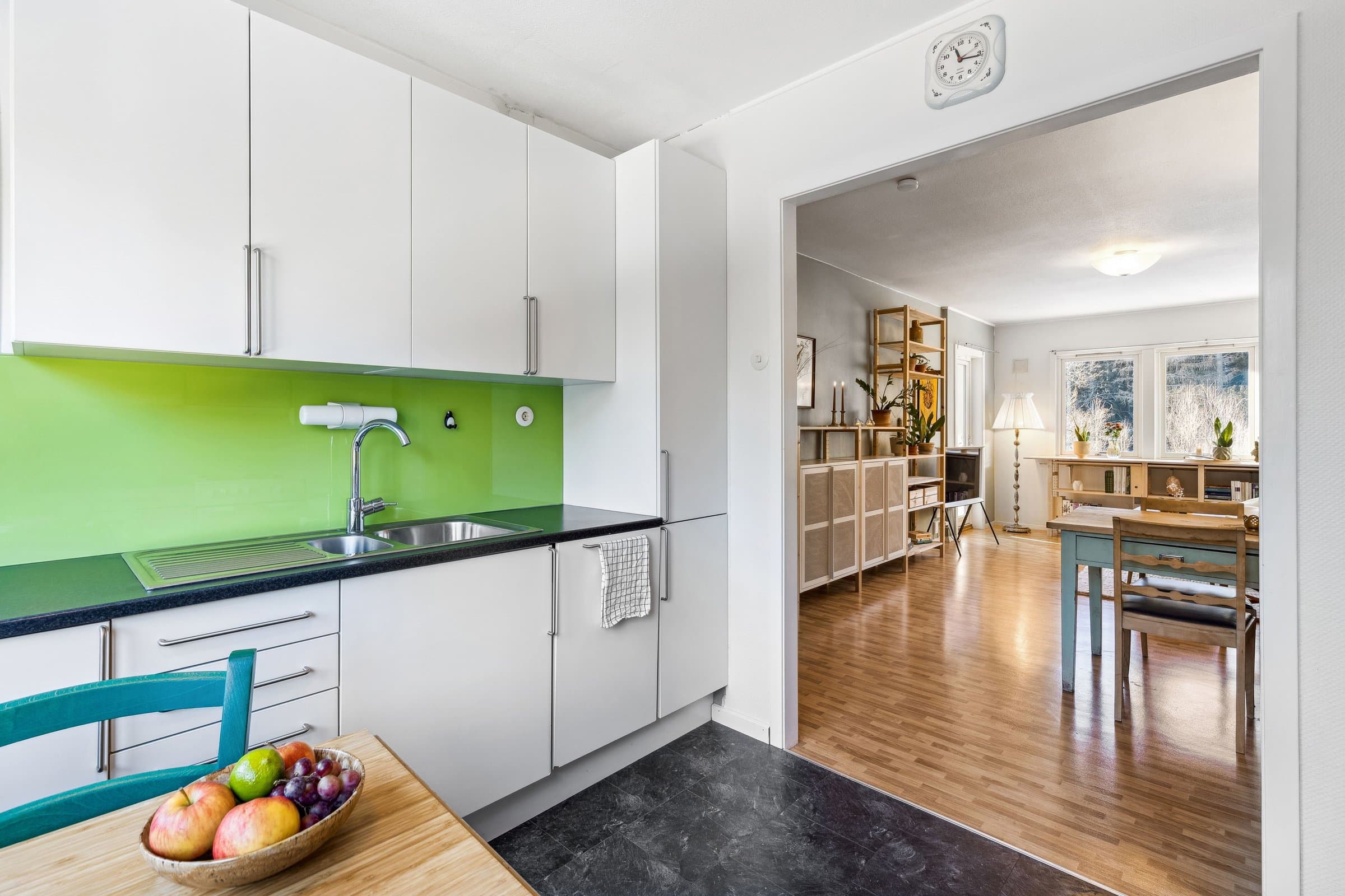Leiligheten ligger i øverste etasje og fremstår ekstra lys og luftig med sin gjennomgående planløsning og gode takhøyde (252 cm). De store vinduene slipper inn rikelig med naturlig lys året rundt, og med solinnfall fra både øst og vest får du glede av sola både om morgenen, ettermiddagen og om kvelden. Grunnet plasseringen i toppetasjen er det ingen innsyn. Badet er totalrenovert i 2016 og har varmekabler med termostat, praktisk opplegg for vaskemaskin og en gjennomtenkt løsning med nedsenka dusjsone som gjør rommet både funksjonelt og lett å holde reint. Kjøkkenet fra Sigdal (2014) har en halvåpen løsning mot stua. Det er mulighet for å gjøre leiligheten om til en 3-roms ved å flytte kjøkkenet ut i stua. Det er god oppbevaringsplass i leiligheten. På soverommet er det plass til store garderobeskap, og i gangen finner du et praktisk kott. Det er to boder i kjelleren samt noe fellesareal for oppbevaring av større gjenstander. Den vestvendte balkongen er perfekt for lange sommerkvelder, med både markise og tak som gjør at du kan være ute uansett vær.